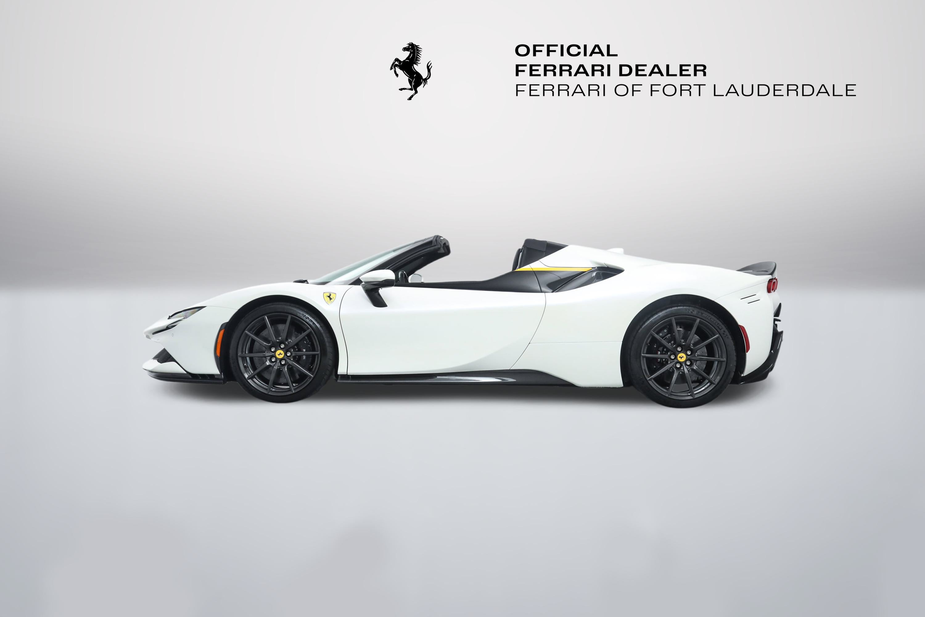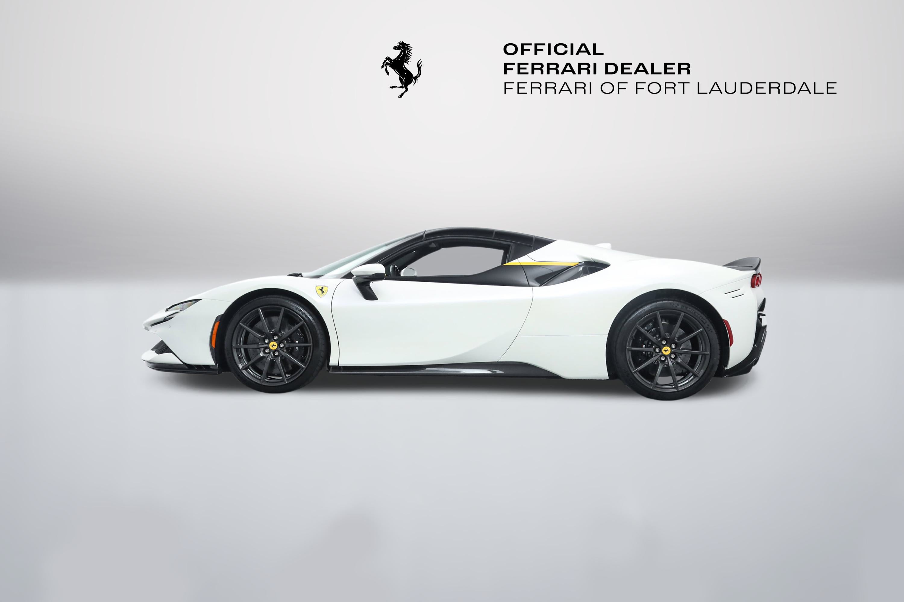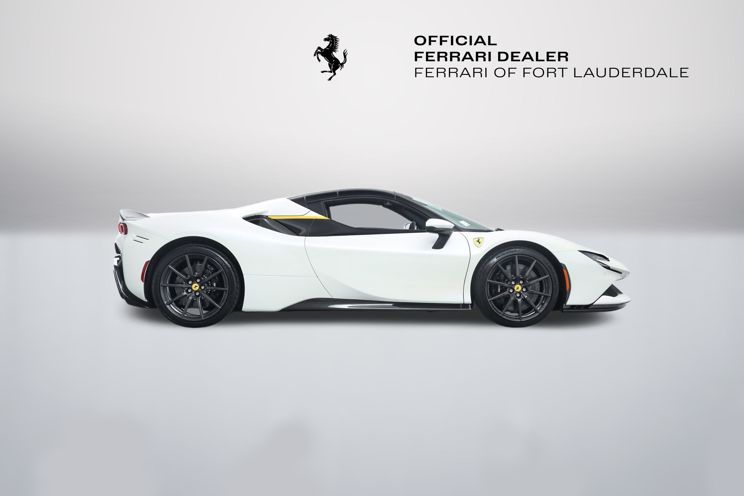 Ferrari SF90 Spider Assetto Fiorano - FERRARI CERTIFIED PRE-OWNED - AVAILABLE EXTENDED FERRARI WARRANTY - - Bianco Birdcage over Nero - ONE OWNER - Very Low Miles - Pristine Condition - Many Fine Options - Sold as New by Our Dealership - Expertly Maintained by Our Factory Trained Technicians - Ferrari Factory Warranty to 3/26/27 - Complimentary Ferrari Genuine Maintenance Service to 3/26/31 - Factory Options: - Ferrari Atelier Specification - Special 4-Layer Paint Color - Two-Tone Bodywork - Livery in Nero and Giallo Modena - Fiorano Package - Carbon Fiber Wheels - Carbon Fiber Front Spoiler - Carbon Fiber Side Air Splitters - Carbon Fiber Rear Boot Trim - Carbon Fiber Rear Diffuser - Carbon Fiber Underdoor Covers - Carbon Fiber Driver Zone with LED Steering Wheel - Carbon Fiber Dashboard Inserts - Carbon Fiber Dashboard Air Vents - Carbon Fiber Instrument Cover - Carbon Fiber Rear Shelf - Carbon Fiber Upper Center Console - Black Brake Calipers - Wheel Bolts in Titanium - Scuderia Ferrari Shields - Daytona Racing Seats - Racing Seat Lifter - Cavallino Stitched to Headrests in Giallo - Special Stitching in Giallo - Dreamline on F1 Paddles in Giallo Modena - Perforated Alcantara Inserts in Nero - Premium HiFi Sound System - Apple CarPlay - Advanced Front Driving Camera - Rear Radar - Leather and Alcantara Floor Mats - Dedication Plaque in Silver - Black Tailpipe Tips - Electrochromic Rearview Mirror - Front and Rear Parking Sensors This Ferrari has passed a multi-point inspection performed by our factory trained technicians, and has been enrolled in the Ferrari Approved Certified Pre-Owned Program. The Certified program makes available up to two years of additional Ferrari Power Approved Warranty coverage. Please see dealer for more details.