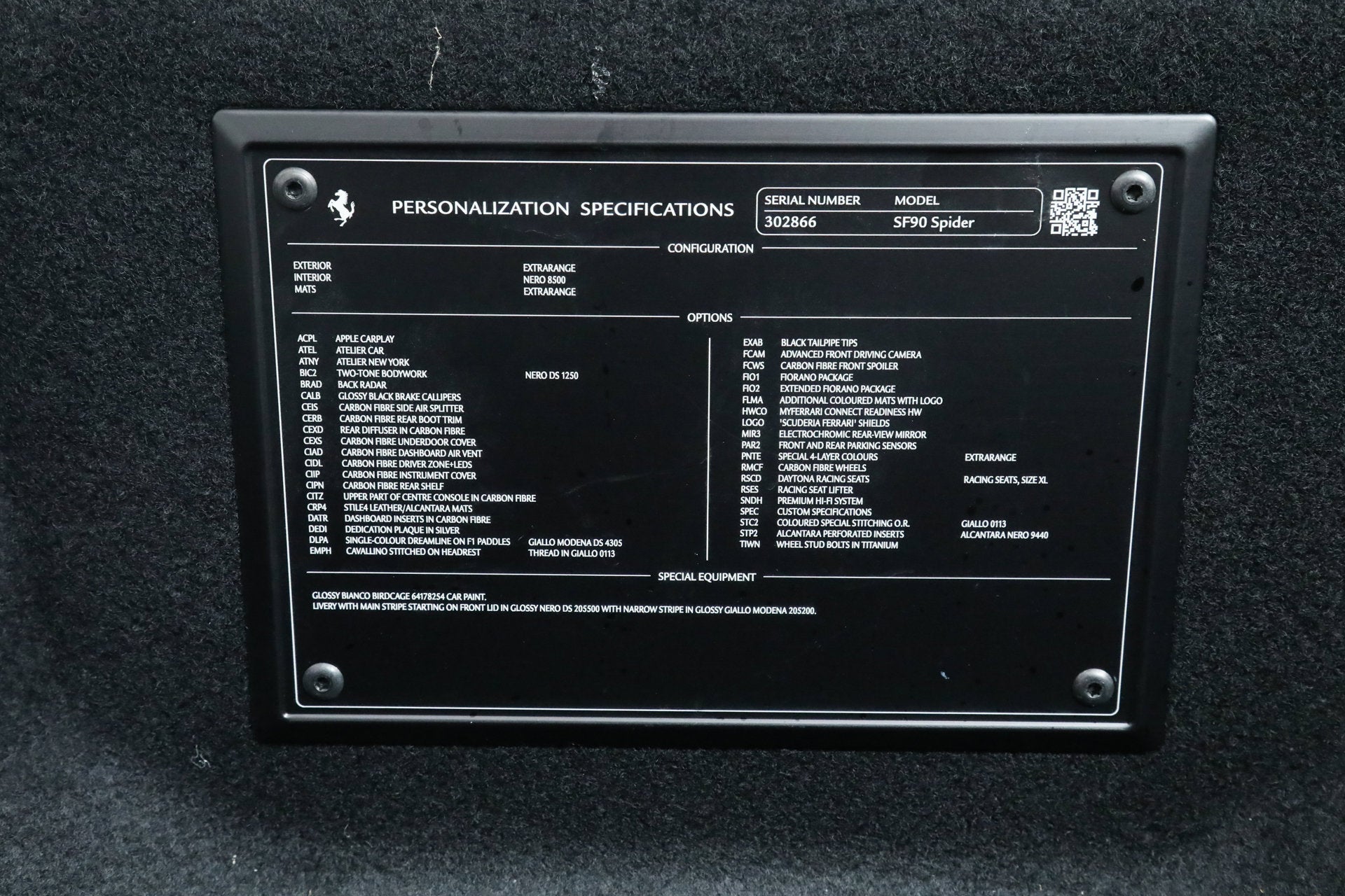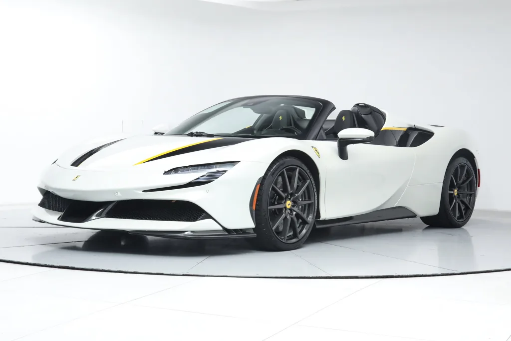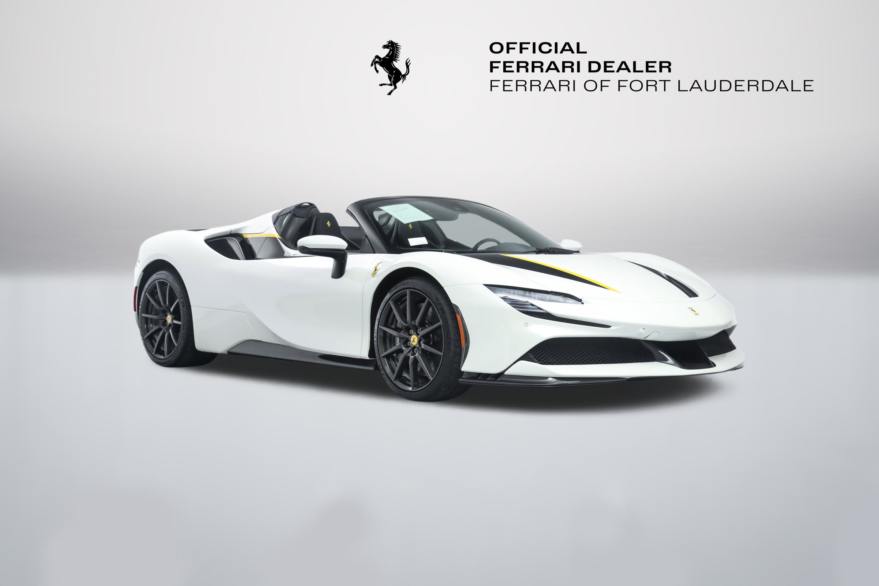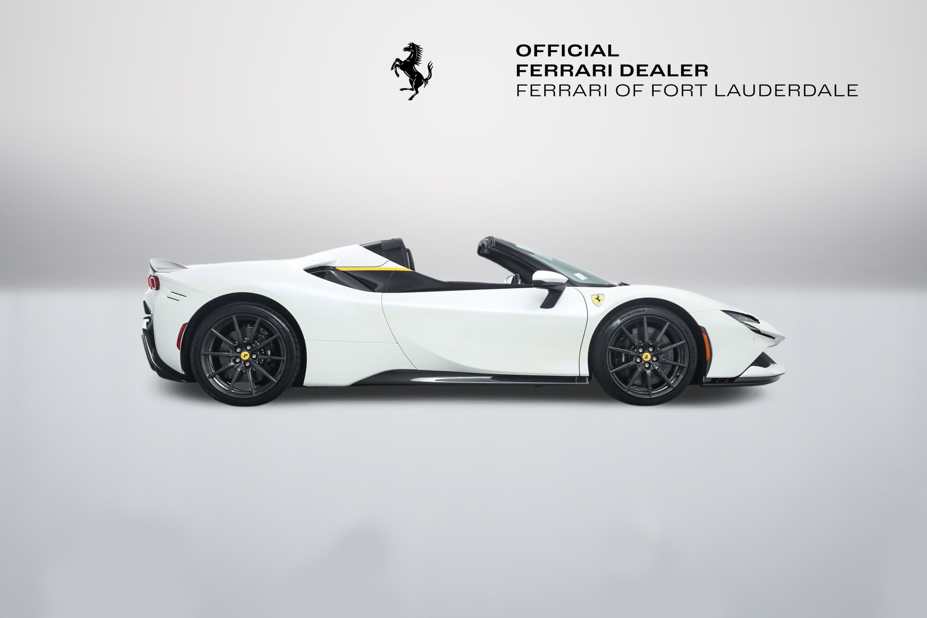 Ferrari SF90 Spider Assetto Fiorano - FERRARI CERTIFIED PRE-OWNED - AVAILABLE EXTENDED FERRARI WARRANTY - - Bianco Birdcage over Nero - ONE OWNER - Very Low Miles - Pristine Condition - Many Fine Options - Sold as New by Our Dealership - Expertly Maintained by Our Factory Trained Technicians - Ferrari Factory Warranty to 3/26/27 - Complimentary Ferrari Genuine Maintenance Service to 3/26/31 - Factory Options: - Ferrari Atelier Specification - Special 4-Layer Paint Color - Two-Tone Bodywork - Livery in Nero and Giallo Modena - Fiorano Package - Carbon Fiber Wheels - Carbon Fiber Front Spoiler - Carbon Fiber Side Air Splitters - Carbon Fiber Rear Boot Trim - Carbon Fiber Rear Diffuser - Carbon Fiber Underdoor Covers - Carbon Fiber Driver Zone with LED Steering Wheel - Carbon Fiber Dashboard Inserts - Carbon Fiber Dashboard Air Vents - Carbon Fiber Instrument Cover - Carbon Fiber Rear Shelf - Carbon Fiber Upper Center Console - Black Brake Calipers - Wheel Bolts in Titanium - Scuderia Ferrari Shields - Daytona Racing Seats - Racing Seat Lifter - Cavallino Stitched to Headrests in Giallo - Special Stitching in Giallo - Dreamline on F1 Paddles in Giallo Modena - Perforated Alcantara Inserts in Nero - Premium HiFi Sound System - Apple CarPlay - Advanced Front Driving Camera - Rear Radar - Leather and Alcantara Floor Mats - Dedication Plaque in Silver - Black Tailpipe Tips - Electrochromic Rearview Mirror - Front and Rear Parking Sensors This Ferrari has passed a multi-point inspection performed by our factory trained technicians, and has been enrolled in the Ferrari Approved Certified Pre-Owned Program. The Certified program makes available up to two years of additional Ferrari Power Approved Warranty coverage. Please see dealer for more details.