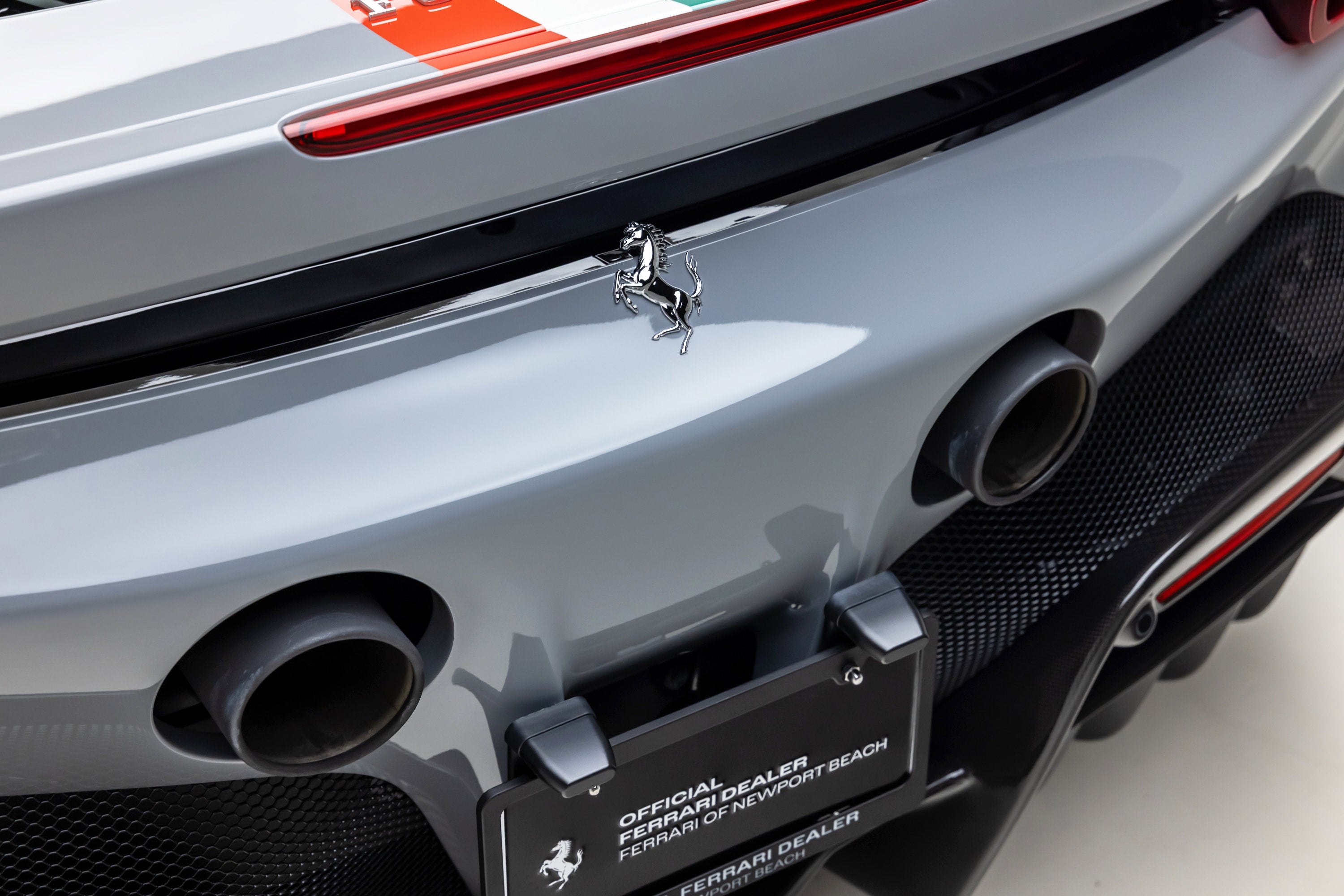 • FNB Highlights: 378 Miles -- Official Atelier New York Commission -- Grigio Chiaro Hiroki PFM +0023 Special Paint -- Italian Tricolour Racing Livery -- Blu Sterling 130429 Extracampionario Interior -- Nero 152 Mats -- Carbon Fibre Racing Seats (Size XL) -- 20" Dark Forged Wheels -- Glossy Black Brake Calipers -- Two-Tone Bodywork (Nero DS 1250) -- Carbon Fibre Steering Wheel with LEDs -- Steering Wheel with Tricolour Stitching -- Titanium Wheel Stud Bolts -- Carbon Fibre Front Side Air Splitter -- Rear Diffuser in Carbon Fibre -- Carbon Fibre Underdoor Cover -- Carbon Fibre Side Air Splitter -- Upper Part of Centre Console in Carbon Fibre -- Dashboard Inserts in Carbon Fibre -- Carbon Fibre Front Spoiler -- Black Tailpipe Tips -- Front Lift -- Scuderia Ferrari Shields -- Advanced Front Driving Camera -- Front and Rear Parking Sensors -- Back Radar -- AFS System (USA) -- Apple CarPlay -- Electrochromic Rear-View Mirror -- Dedication Plate in Silver -- Coloured Inner Details (Extracampionario) -- Coloured Passenger Compartment Details (Extracampionario) -- Passenger Compartment Inserts in Alcantara (Extracampionario) -- Cavallino Stitched on Headrest (Grigio Chiaro 0326) -- Lower Dashboard in Black Leather -- Special 2 Layer Colours (Extracampionario) -- Ferrari Approved CPO -- Financing and leasing options available through Ferrari Financial Services.