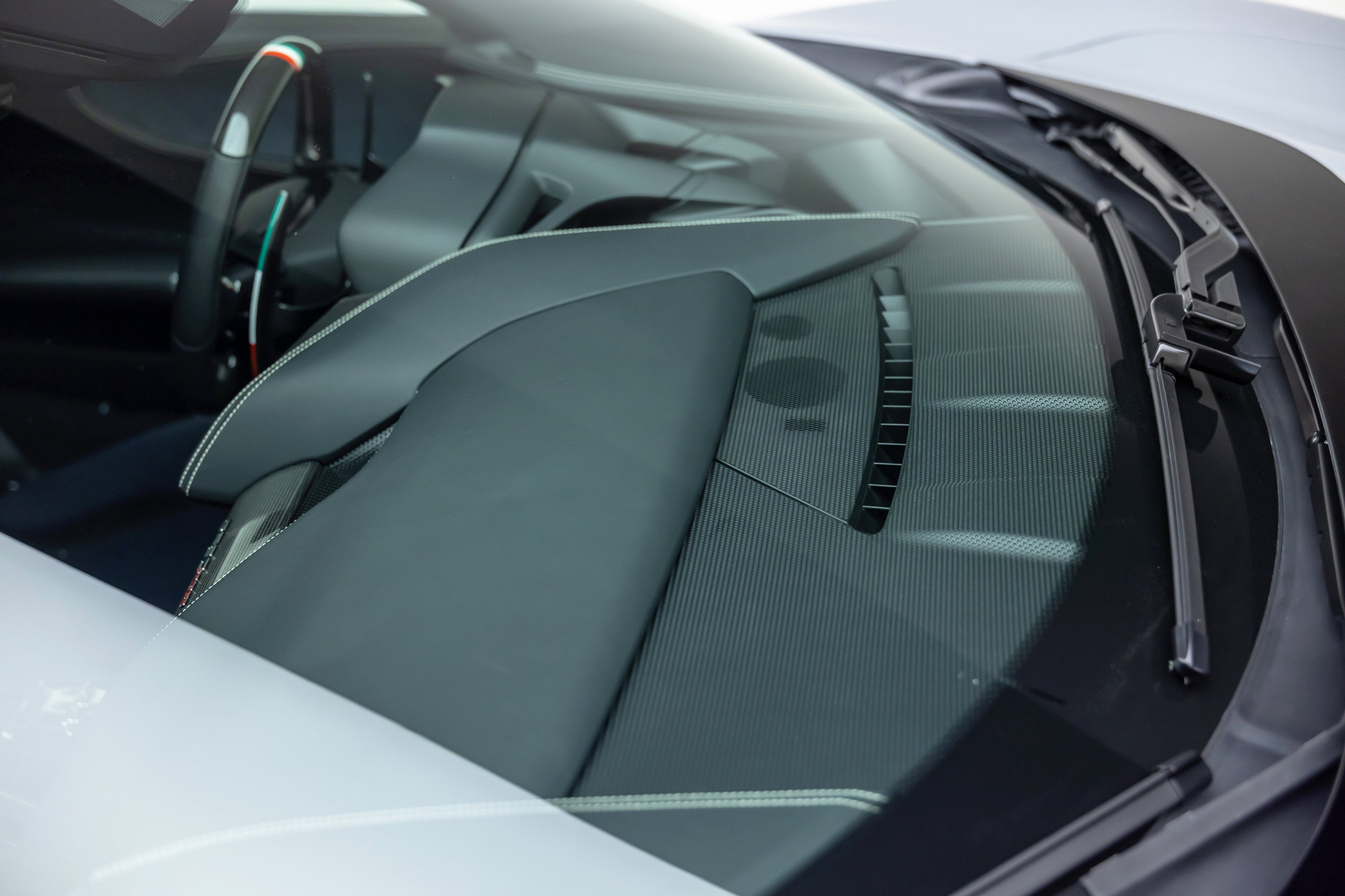 • Special Equipment: Grigio Chiaro Hiroki PFM +0023 Car Paint. Tricolour Livery 7 cm total width - 7 cm in Glossy Verde Bandiera 40051806, 7 cm in Glossy Bianco Avus Lucido 31086907, 7 cm in Glossy Rosso Bandiera 40051730 - starting on front lid, continuing onto tonneau cover and ending at third stop light. Lower area of dashboard in black leather.