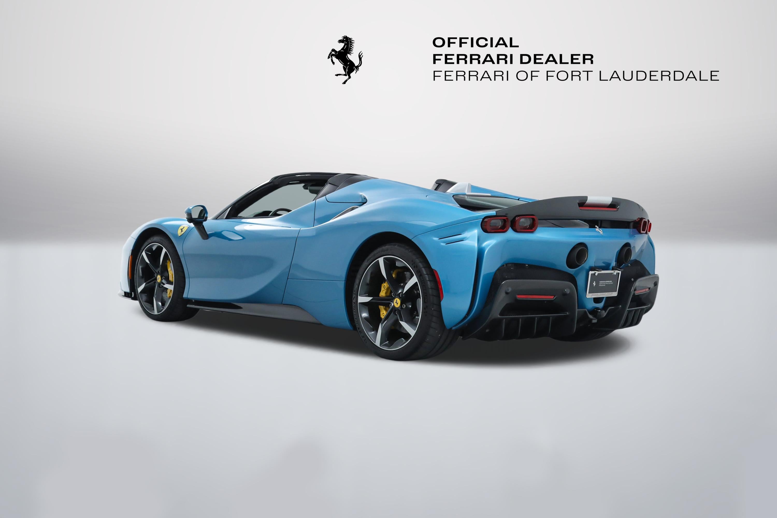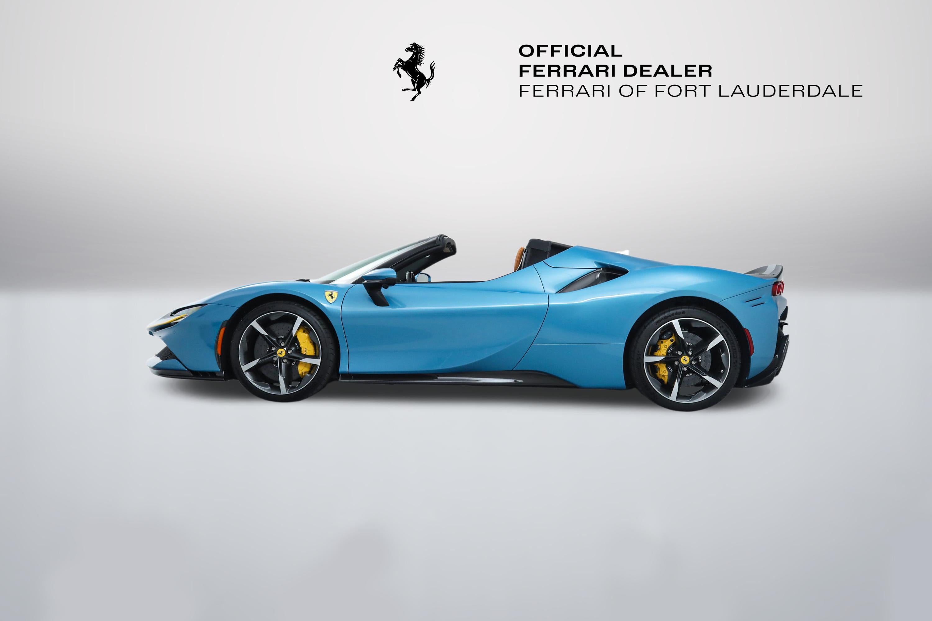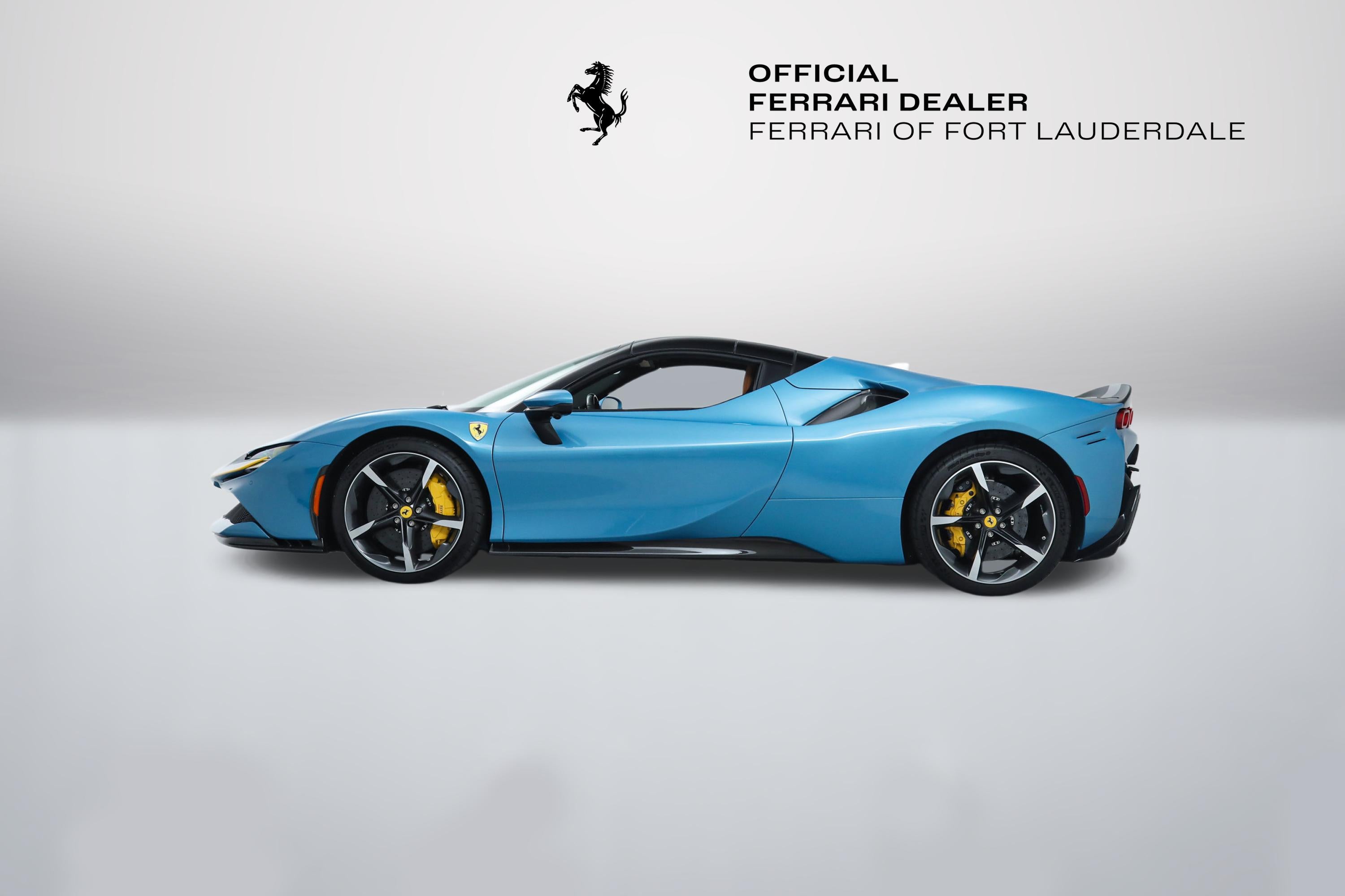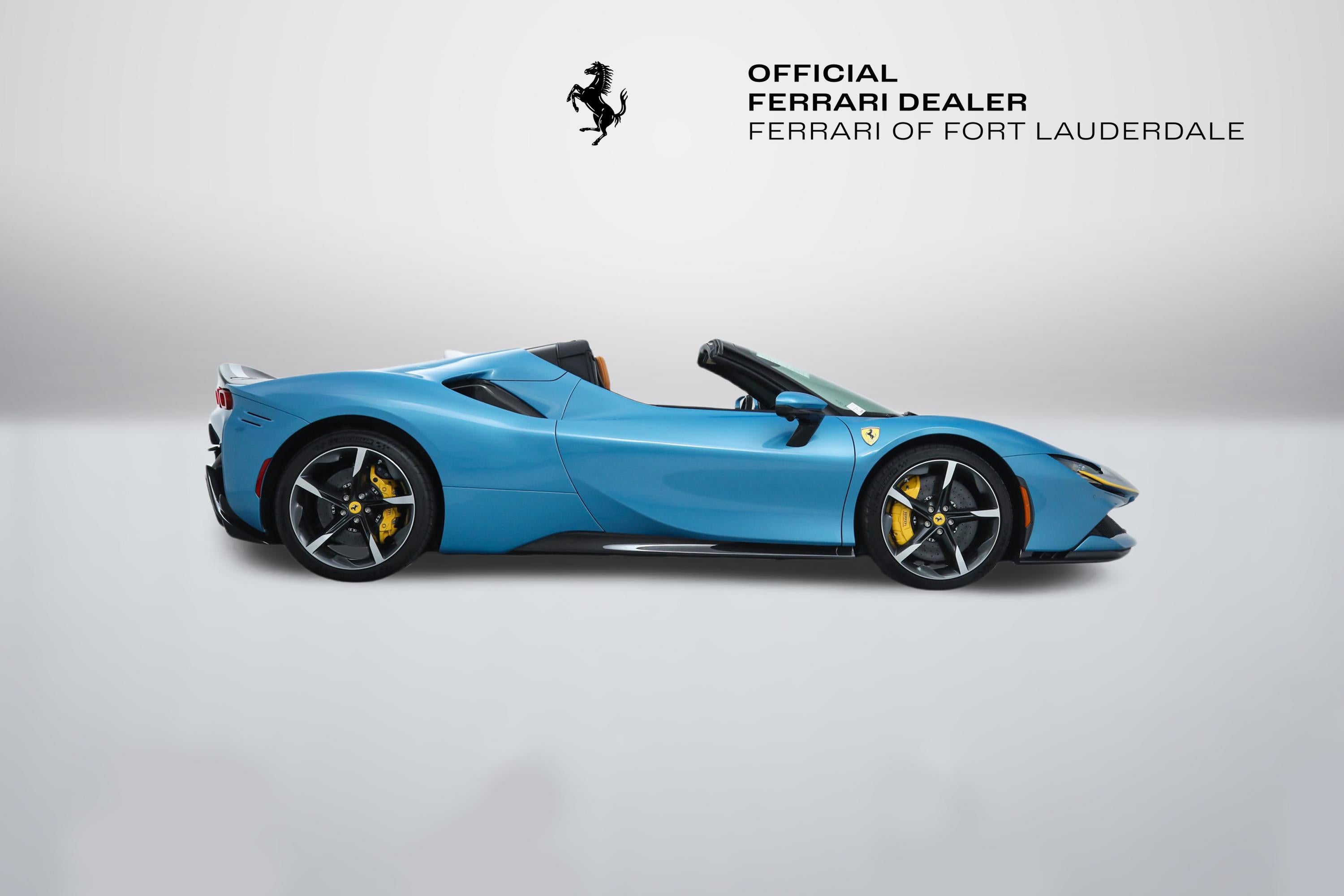 Ferrari SF90 Spider Assetto Fiorano - $843,273 MSRP - NEARLY $267,000 IN OPTIONAL EQUIPMENT - - FERRARI CERTIFIED PRE-OWNED - AVAILABLE EXTENDED FERRARI WARRANTY - - Blu Brezze over Beige - ONE OWNER - Very Low Miles - Pristine Condition - Many Fine Options - Sold as New by Our Dealership - Expertly Maintained by Our Factory Trained Technicians - Ferrari Factory Warranty to 3/7/27 - Complimentary Ferrari Genuine Maintenance Service to 3/7/31 - Factory Options: - Fiorano Package - Special 2-Layer Paint Color - Two-Tone Bodywork - Two-Tone Racing Stripe in Giallo Modena and Argento Nurburgring - Carbon Fiber Front Spoiler - Carbon Fiber Side Air Splitters - Carbon Fiber Engine Manifold - Carbon Fiber Engine Covers - Carbon Fiber Rear Boot Trim - Carbon Fiber Rear Diffuser - Carbon Fiber Underdoor Covers - Carbon Fiber Driver Zone with LED Steering Wheel - Carbon Fiber Dashboard Inserts - Carbon Fiber Instrument Cover - Carbon Fiber Upper Center Console - Carbon Fiber Daytona Racing Seats - Diamond-Polished Forged Wheels - Titanium Wheel Bolts - Yellow Brake Calipers - Scuderia Ferrari Shields - Racing Seat Lifter - Daytona Seat Perforated Inserts in Nero - Cavallino Stitched to Headrests in Nero - Special Stitching in Nero - Leather and Alcantara Floor Mats in Nero - Premium HiFi Sound System - Apple CarPlay - Surround View - Advanced Frontlight System (AFS) - Advanced Front Driving Camera - Electrochromic Rearview Mirror - Front and Rear Parking Sensors - Black Tailpipe Tips This Ferrari has passed a multi-point inspection performed by our factory trained technicians, and has been enrolled in the Ferrari Approved Certified Pre-Owned Program. The Certified program makes available up to two years of additional Ferrari Power Approved Warranty coverage. Please see dealer for more details.
