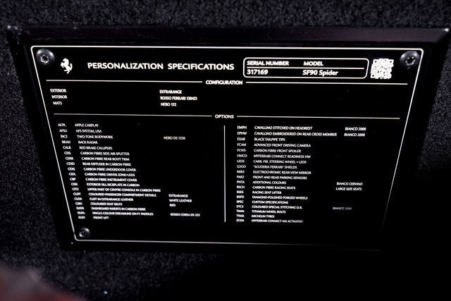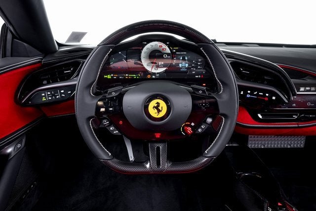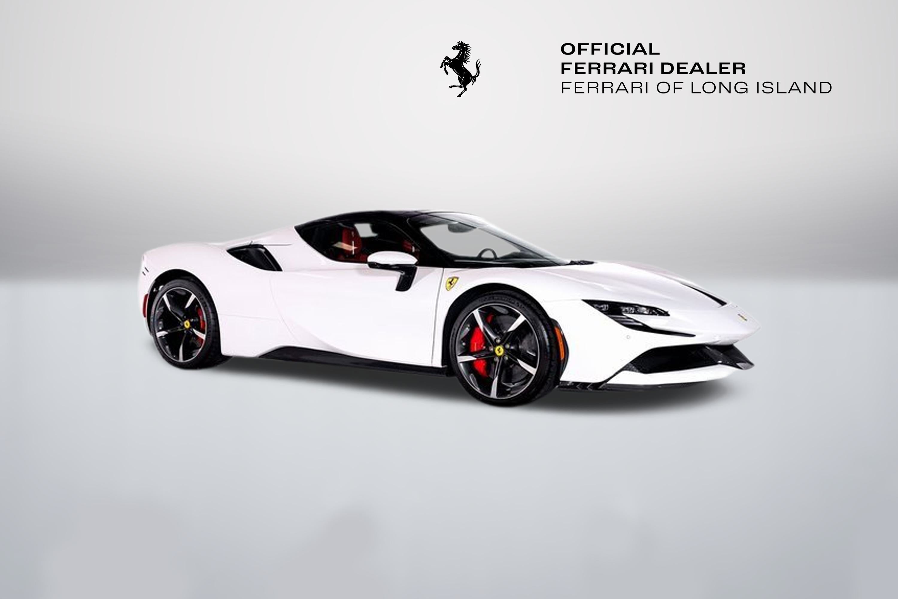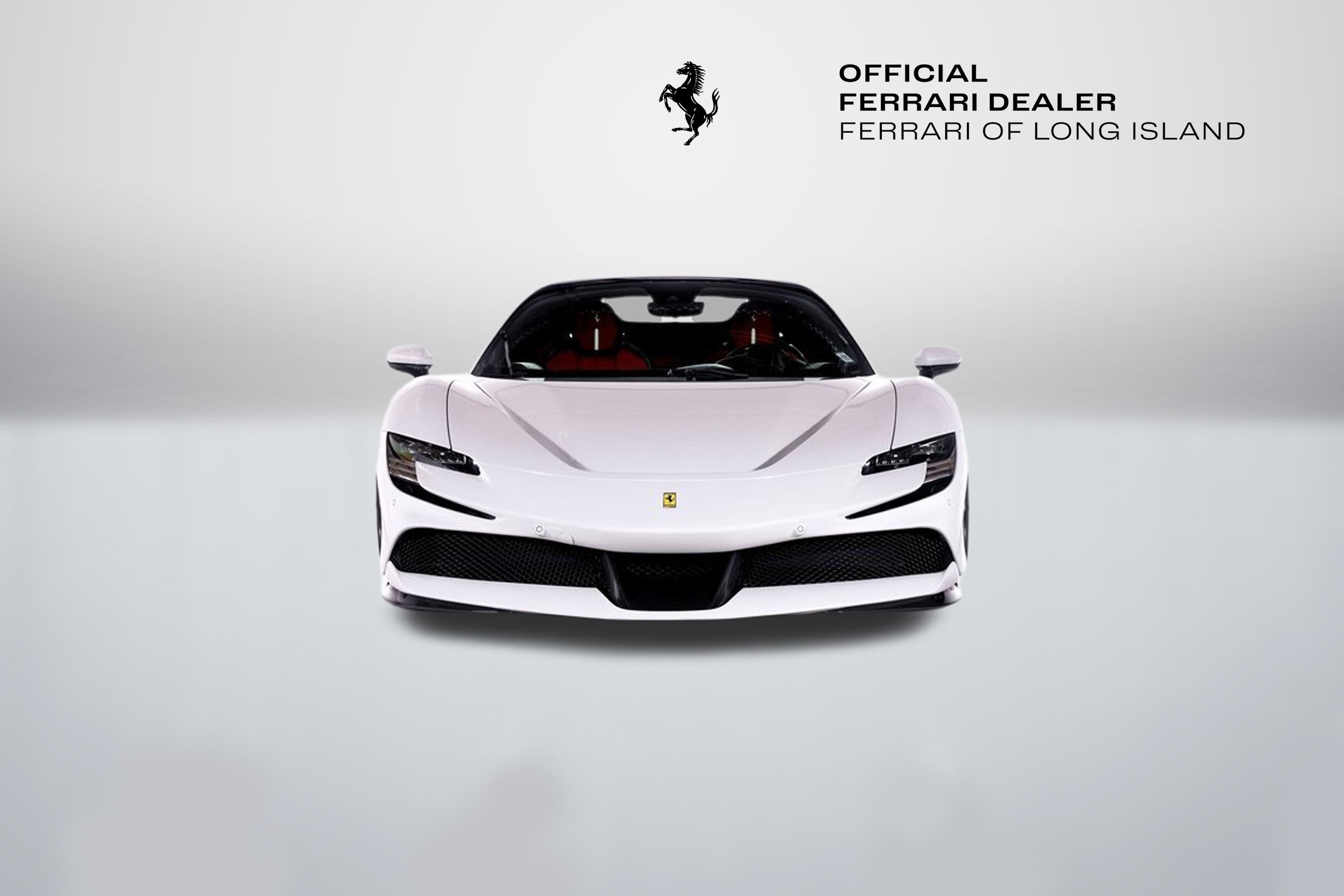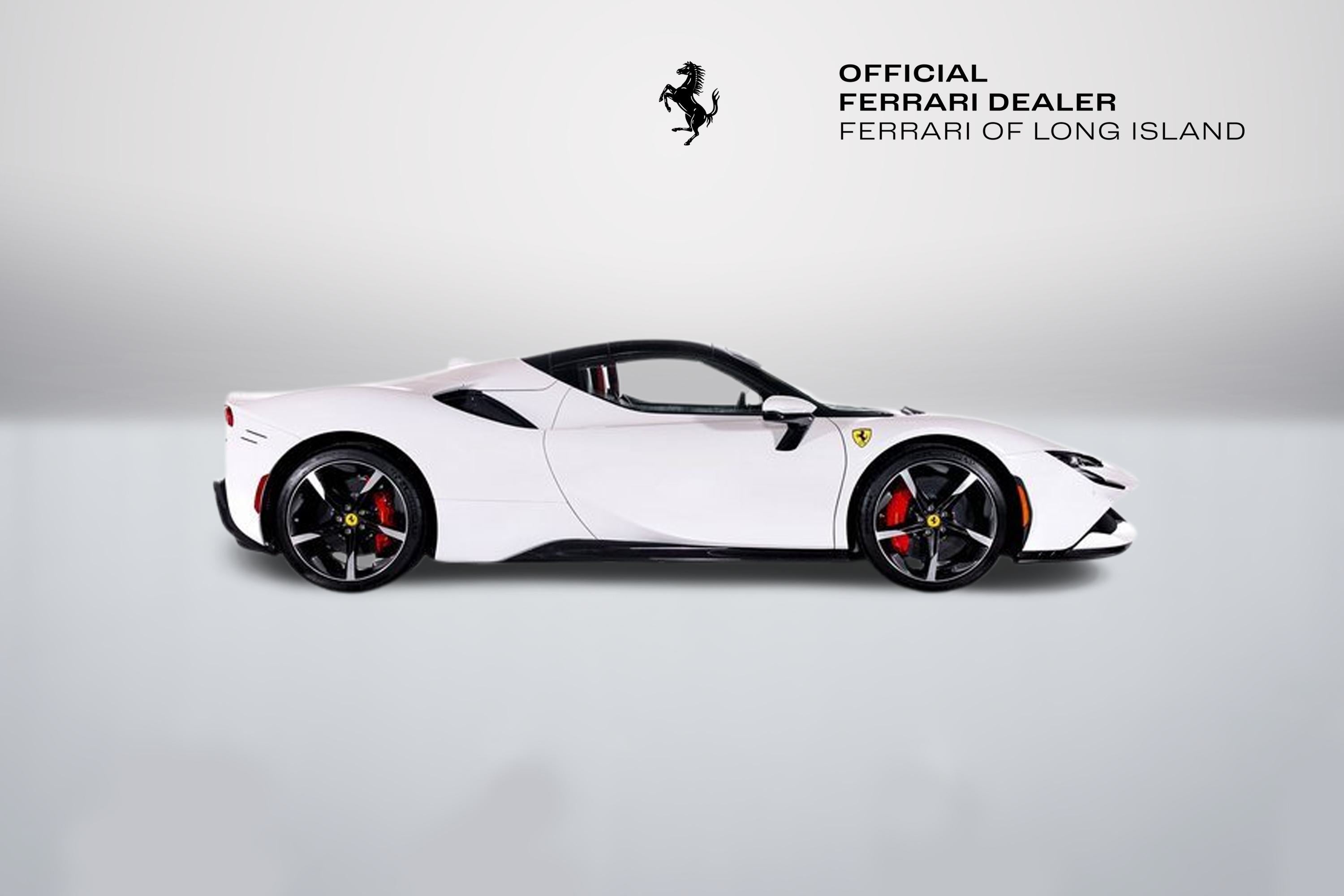 Ferrari of Long Island is proud to present this extraordinary Ferrari SF90 Spider, finished in stunning Bianco Cervino over a Rosso Ferrari interior with Bianco contrasting stitching. This breathtaking specification perfectly highlights the SF90 Spiders futuristic design and open-top exhilaration. As Ferraris revolutionary plug-in hybrid supercar, the SF90 Spider combines a twin-turbocharged V8 with three electric motors to deliver instantaneous torque, electrified precision, and blistering acceleration. The retractable hardtop allows drivers to experience its performance with the added thrill of open-air driving. This example is equipped with Rosso Corsa brake calipers and striking 20-inch forged/diamond-polished wheels with Gloss Technical Grey accents, creating a bold and aggressive stance. Signature Scuderia Ferrari fender shields proudly display the brands racing heritage. Inside, the cockpit is a showcase of motorsport-inspired craftsmanship. Carbon fiber racing seats, a carbon fiber steering wheel with integrated LEDs, and F1 paddles finished in Rosso Corsa place race-derived technology directly in the drivers hands. An embroidered Cavallino on the headrests in Bianco and a horse embroidered on the rear wall in Bianco add bespoke detailing that complements the exterior finish. Advanced features include Apple CarPlay, blind spot detection with rear radar, front and rear suspension lift for added practicality, an advanced front driving camera, front parking sensors, and electrochromic exterior rear view mirrors for enhanced visibility and convenience. This Ferrari has passed a comprehensive multi-point inspection performed by our factory-trained technicians and has been enrolled in the Ferrari Approved Certified Pre-Owned Program. The Certified program makes available up to two years of additional Ferrari Power Approved Warranty coverage. Please contact us for more details or to schedule a private viewing of this remarkable SF90 Spider.