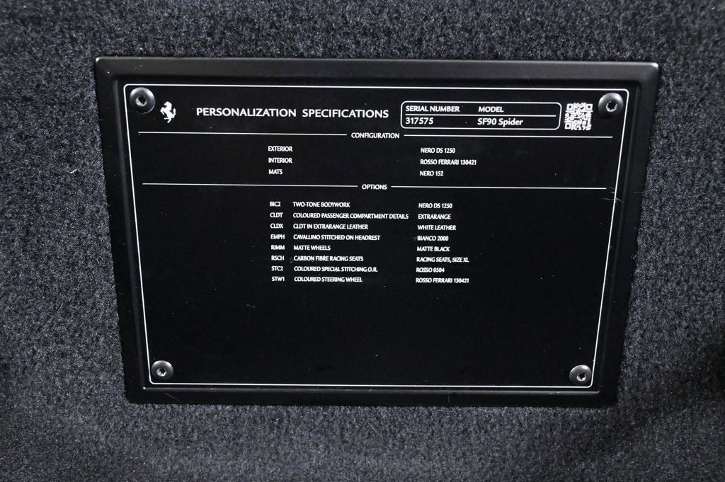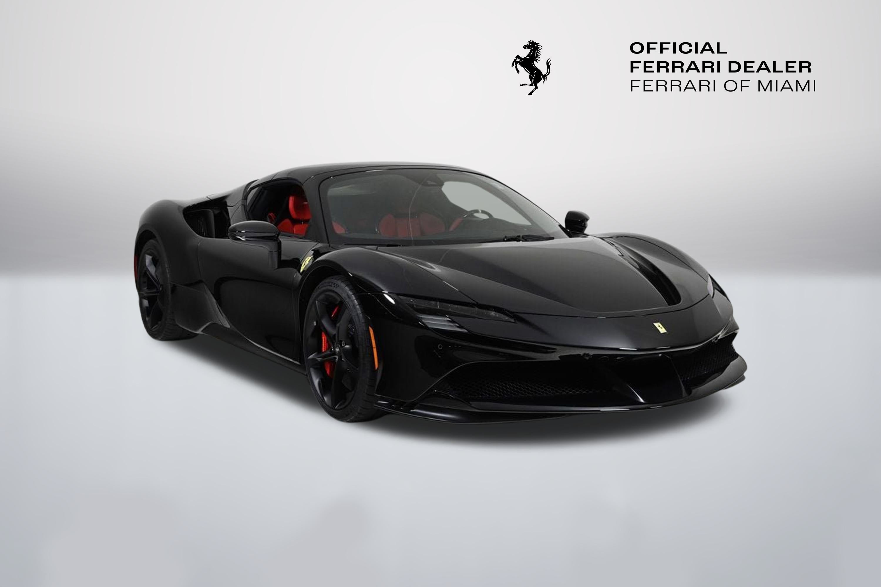Located on the corner of Biscayne and 16th Street. - This 2025 Ferrari SF90 Spider is located at Ferrari of Miami 1550 Biscayne Blvd, Miami, FL 33132. Please contact our sales team at 786-483-1930, for more information. The Collection Is Not Responsible for Typographical Errors. - This 2025 Ferrari SF90 Spider 2dr Convertible features a V8 8cyl Hybrid engine. It is equipped with a 8 Speed Manual transmission. The vehicle is Nero with a Rosso Ferrari Leather interior. It is offered As-Is, extended warranty is available. - Air Conditioning, Climate Control, Cruise Control, Power Steering, Power Windows, Power Mirrors, Leather Steering Wheel, Leather Shifter, Power Passenger Seat, Memory Seat Position, Clock, Tachometer, Digital Info Center, Tilt Steering Wheel, Telescoping Steering Wheel, Steering Wheel Radio Controls, Driver Airbag, Passenger Airbag, Side Airbags, Keyless Entry, Security System, ABS Brakes, Traction Control, Dynamic Stability, Rear Defogger, Fog Lights, Intermittent Wipers, AM/FM, Alloy Wheels, Leather Interior Surface, , Convertible HardTop, 6 Speakers, Radio data system, Automatic temperature control, Heads-Up Display, Power driver seat, Adaptive suspension, Four wheel independent suspension, 4-Wheel Disc Brakes, Ceramic disc brakes: front and rear, Dual front impact airbags, Dual front side impact airbags, Front anti-roll bar, Integrated roll-over protection, Low tire pressure warning, Passenger cancellable airbag, Rear anti-roll bar, Brake assist, Exterior Parking Camera Rear, Rear Parking Sensors, Delay-off headlights, Fully automatic headlights, Bumpers: body-color, Convertible roof wind blocker, Heated door mirrors, Power door mirrors, Spoiler, Apple CarPlay, Compass, Convertible roof lining, Driver door bin, Front reading lights, Illuminated entry, Outside temperature display, Overhead console, Power convertible roof, Sport steering wheel, Standard Seats, Telescoping steering wheel, Voltmeter, Front Center Armrest, Leather Seat Trim, Sport Plus Seats, Passenger door bin, Wheels: 20 Standard, Glass rear window, Rain sensing wipers Adaptive headlights, Aux.