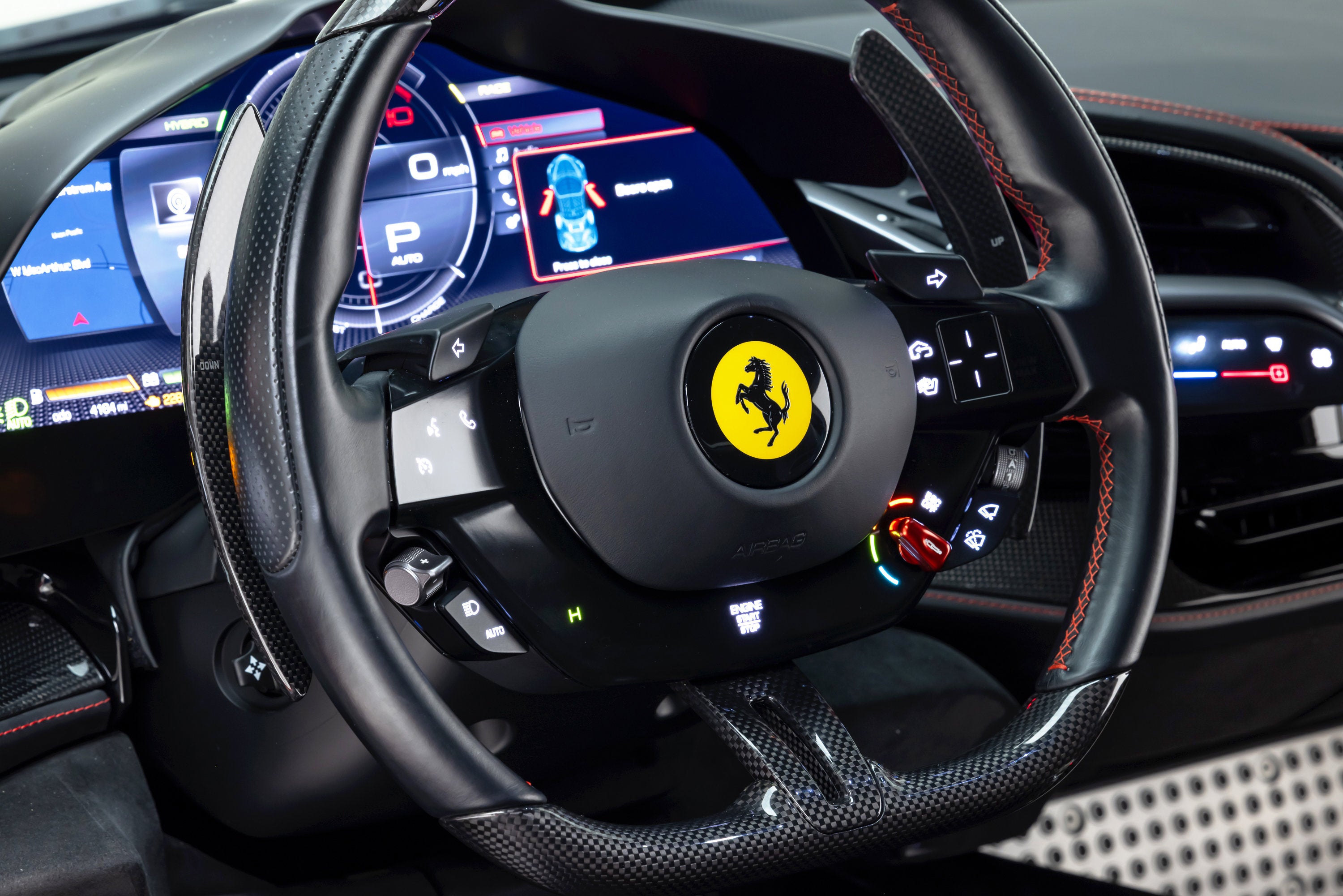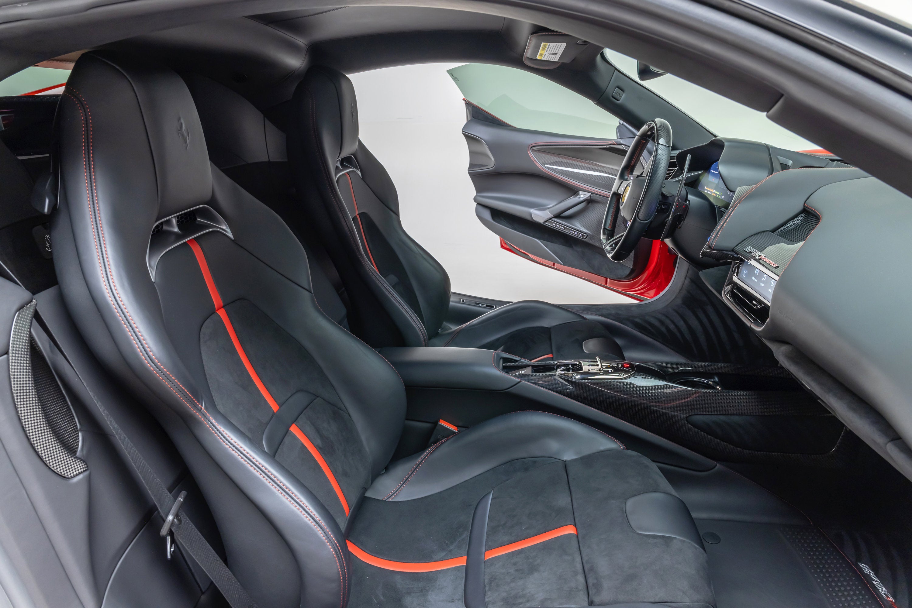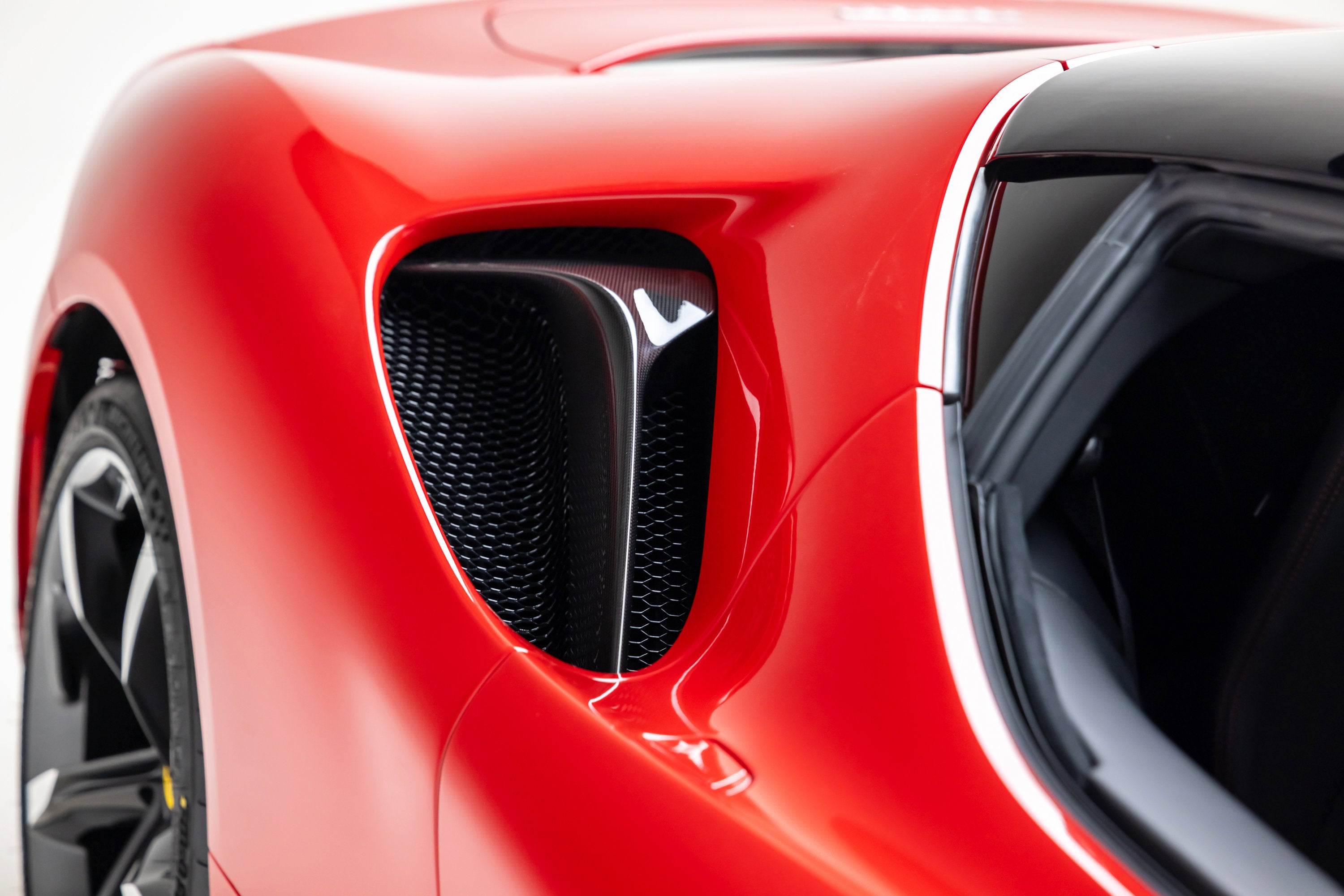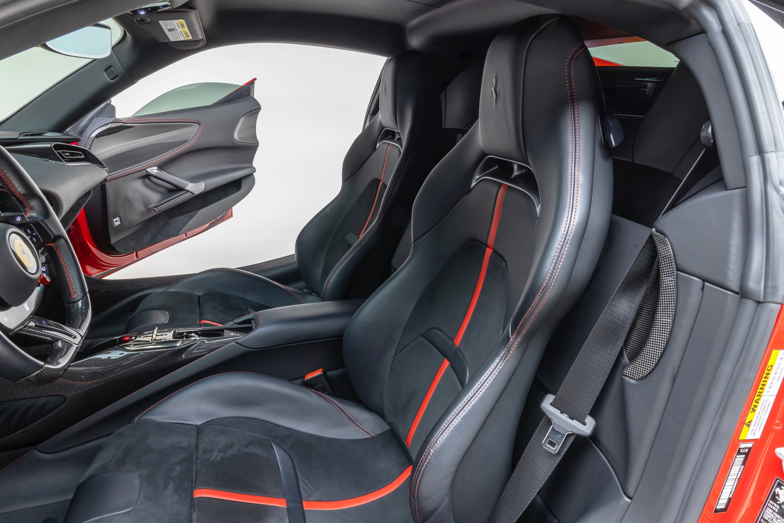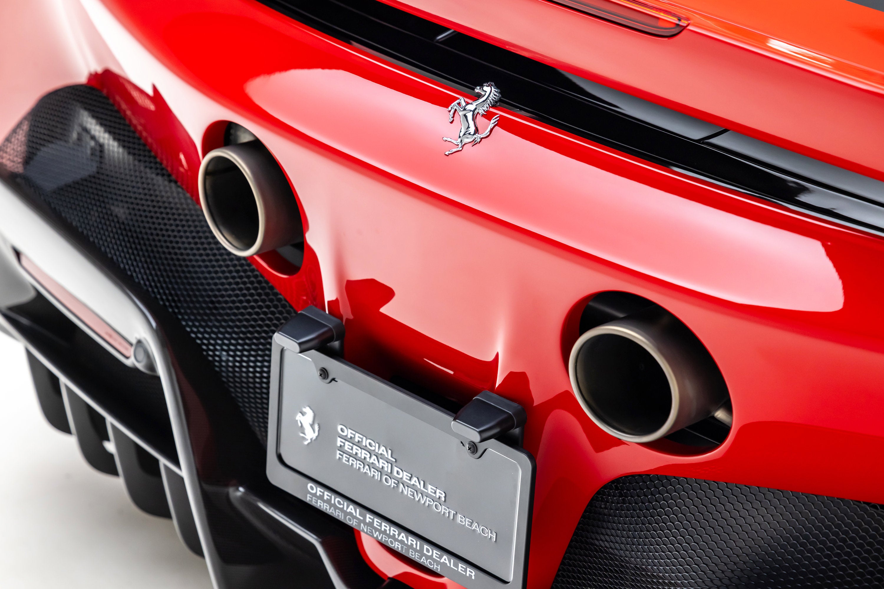 • ---------------------------------------- ===== FNB HIGHLIGHTS: ===== 4,162 Miles -- Rosso Corsa DS 322 Exterior -- Nero 8500 Interior -- Extra-Range Mats -- 20" Forged Diamond Wheels -- Glossy Black Brake Calipers -- Two-Tone Bodywork Nero DS 1250 -- Carbon Fibre Front Spoiler -- Carbon Fibre Side Air Splitter -- Carbon Fibre Underdoor Cover -- Rear Diffuser in Carbon Fibre -- Carbon Fibre Door Panels -- Carbon Fibre Upper Centre Console Trim -- Dash Inserts in Carbon Fibre -- Exterior Sill Kick in Carbon -- Carbon Fibre Steering Wheel with LEDs -- Titanium Exhaust Pipes -- Titanium Wheel Stud Bolts -- Anti Stone Chipping Film -- Suspension Lifter -- Full Electric Seats -- Seats with Special Design -- Central Part of Seats in Alcantara -- Leather Headliner Nero 8500 -- Coloured Inner Details Rosso Ferrari 134021 -- Coloured Standard Stitching Rosso 0504 -- 'Scuderia Ferrari' Shields -- AFS System USA -- Front and Rear Parking Sensors -- Electrochromic Rear-View Mirror -- Premium HIFI System -- Apple CarPlay -- Additional Coloured Mats with Logo -- Ferrari Approved CPO -- Ferrari Financial Services Available ---------------------------------------- ===== FACTORY OPTIONS: ===== Apple CarPlay, AFS System USA, Central Part of Seats in Alcantara, Two-Tone Bodywork Nero DS 1250, Glossy Black Brake Calipers,