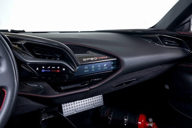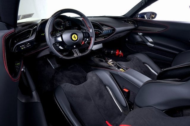 Ferrari of Long Island is proud to present this extraordinary Ferrari SF90 Stradale, finished in Blu Tour de France over a Nero interior with Rosso contrast stitching. This striking specification highlights the SF90 Stradales futuristic design while honoring Ferraris racing heritage through bold, performance-driven detailing. As Ferraris revolutionary plug-in hybrid supercar, the SF90 Stradale pairs a twin-turbocharged V8 with three electric motors to deliver instantaneous response and breathtaking acceleration. This example is equipped with forged diamond-polished wheels finished in Gloss Technical Grey, perfectly complemented by Rosso Corsa brake calipers that provide exceptional stopping power. Black ceramic-coated tailpipes and Scuderia Ferrari fender shields reinforce the cars aggressive presence and motorsport pedigree. Extensive carbon fiber appointments emphasize both weight savings and track-focused intent. A carbon fiber diffuser enhances aerodynamic efficiency, while carbon fiber racing seats secure the driver during high-performance driving. The carbon fiber driver zone with integrated LED shift indicators brings Formula 1-inspired technology directly to the steering wheel, complemented by a matte carbon fiber instrument binnacle brow and gloss carbon fiber accents throughout the rear bench, passenger compartment, and dashboard. An embroidered Cavallino in Rosso on the headrests and a hand-held fire extinguisher further underscore the cars purposeful configuration. Advanced technology and usability features ensure confidence behind the wheel. Apple CarPlay provides seamless connectivity, while the Advanced Front Driving Camera and front parking sensors enhance visibility during maneuvering. Electrochromic exterior rear-view mirrors adjust automatically to reduce glare, and a premium Hi-Fi system delivers refined audio quality within this high-performance environment. This vehicle has successfully passed a comprehensive multi-point inspection conducted by our factory-trained technicians and is enrolled in the Ferrari Approved Certified Pre-Owned Program, offering up to two years of additional Ferrari Power Approved Warranty coverage for added peace of mind. Please contact us for complete details.