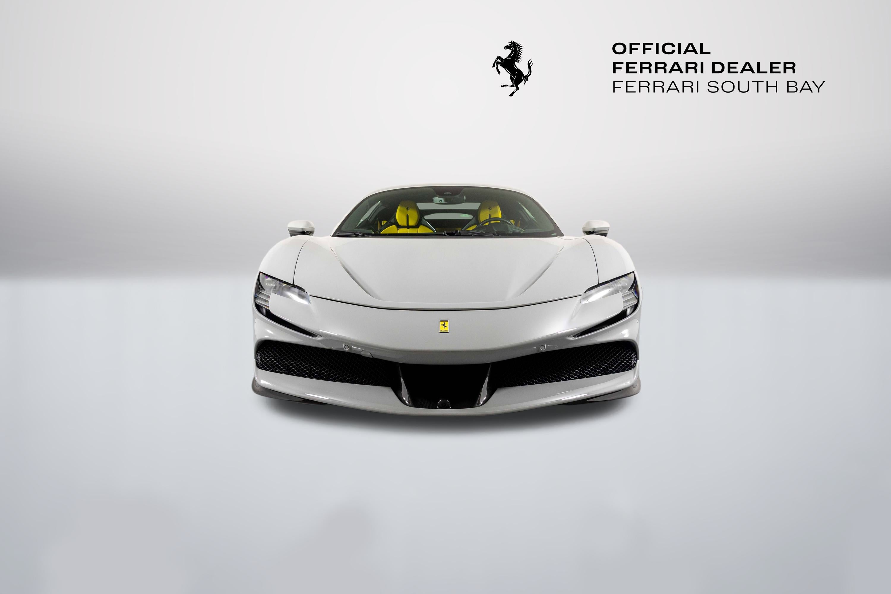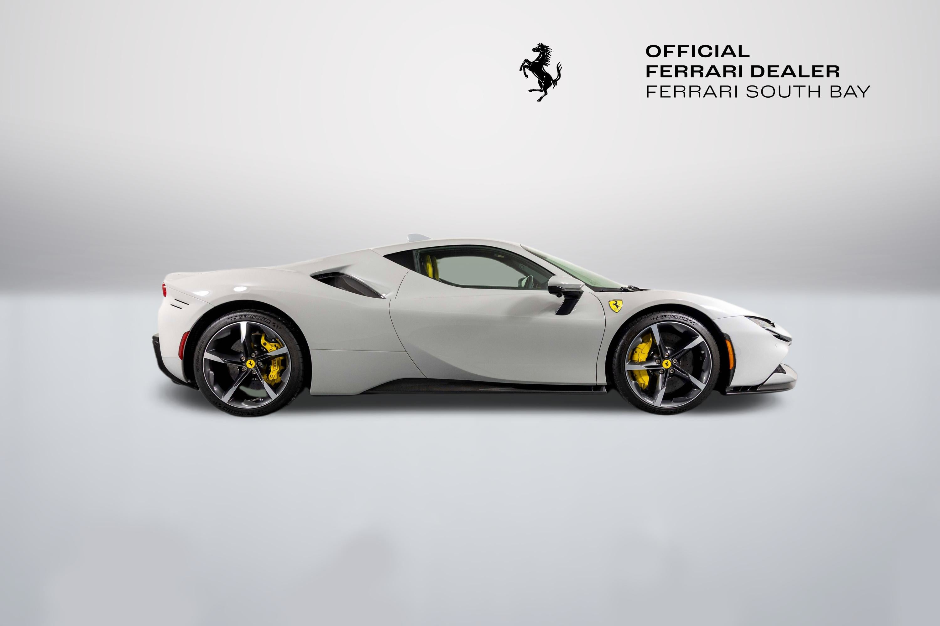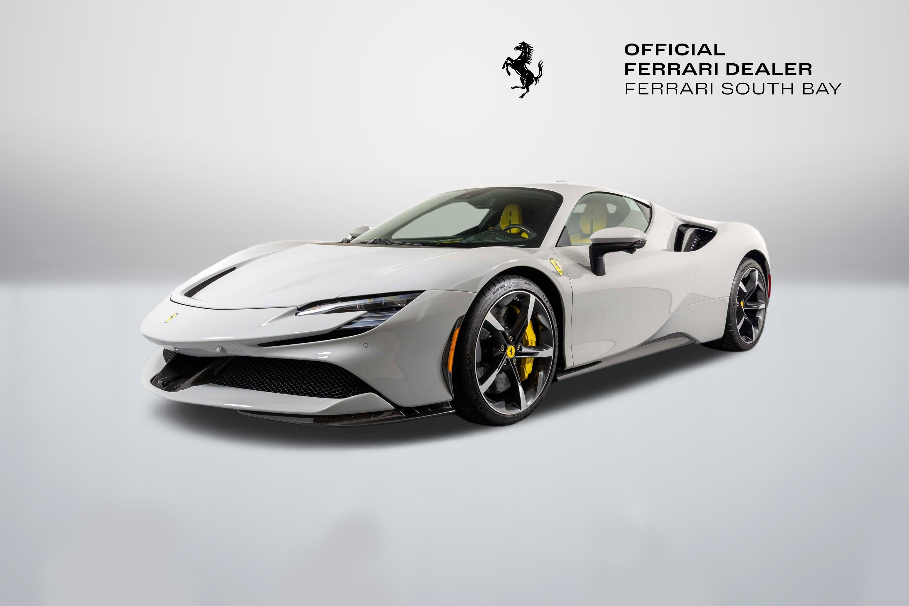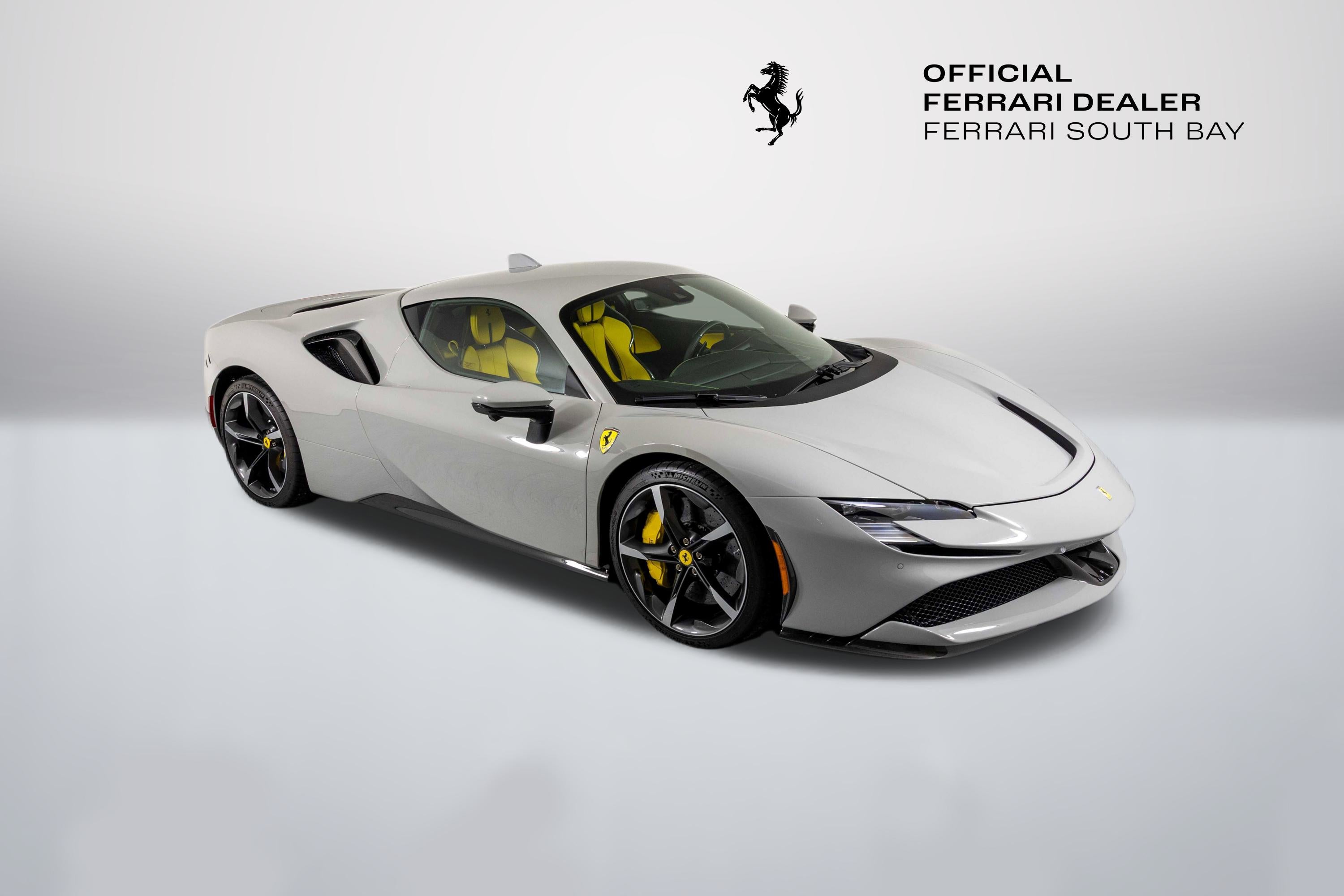 Ferrari South Bay is thrilled to offer this stunning delivery mile SF90 Stradale finished in beautiful (and rare) Grigio Squalo, with Yellow Leather Interior. This is a very unique, striking example of the SF90, and is sure to be a hit wherever it happens to show up! The exterior of this SF90 is finished in stunning Grigio Squalo, a very technical light gray. 20 Diamond-Polished Forged Wheels surround Ceramic Brakes with Yellow Calipers. Glossy Carbon Fiber covers the Under Door Sills, Side Engine Air Splitters, Front Spoiler and Rear Diffuser. Scuderia Ferrari Shields adorn the front fenders. Paint Protection Film covers the nose of the car, ensuring your investment will look terrific for years to come. Inside, you'll find eye-popping Yellow Leather with contrasting Nero Stitching throughout, including the Cavallinos embroidered on the headrests of the Carbon Fiber Racing Seats (which are fitted with the Racing Seat Lifter). Yellow Seatbelts tie the interior together, and Carbon Fiber finishes the Upper Part of the Center Console, Dashboard Inserts and the Steering Wheel (which is fitted with Ferrari's now-signature LED Shift Lights). Front and Rear Parking Sensors, Back Radar, and Surround View Camera assist with tight maneuvers, and the Suspension Lifter simplifies steep driveways and other road irregularities. The High Power JBL Premium Audio System and Apple CarPlay provide alternative entertainment when traffic conspires against you. This Certified Pre-Owned SF90 is offered with both original keys, books, tools, hybrid battery tender and car cover. The car is covered by the Original Ferrari Factory Warranty through May 22, 2027 (and the warranty can easily be extended by up to two years at time of purchase). Ferrari Genuine Maintenance covers annual services through May 22, 2031. If you'd like to know more about this SF90 or set up a viewing, please reach out to one of our knowledgeable sales staff. Ferrari South Bay is proudly part of Holand Automotive Group, one of North America’s leading luxury automotive retailers. We offer nationwide shipping, trade-in opportunities, financing, client consignments, and world-class delivery service. Contact us today to explore ownership of this remarkable. Please visit us at 23305 Hawthorne Blvd, Torrance, CA 90505, or call us at (888) 578-8767.