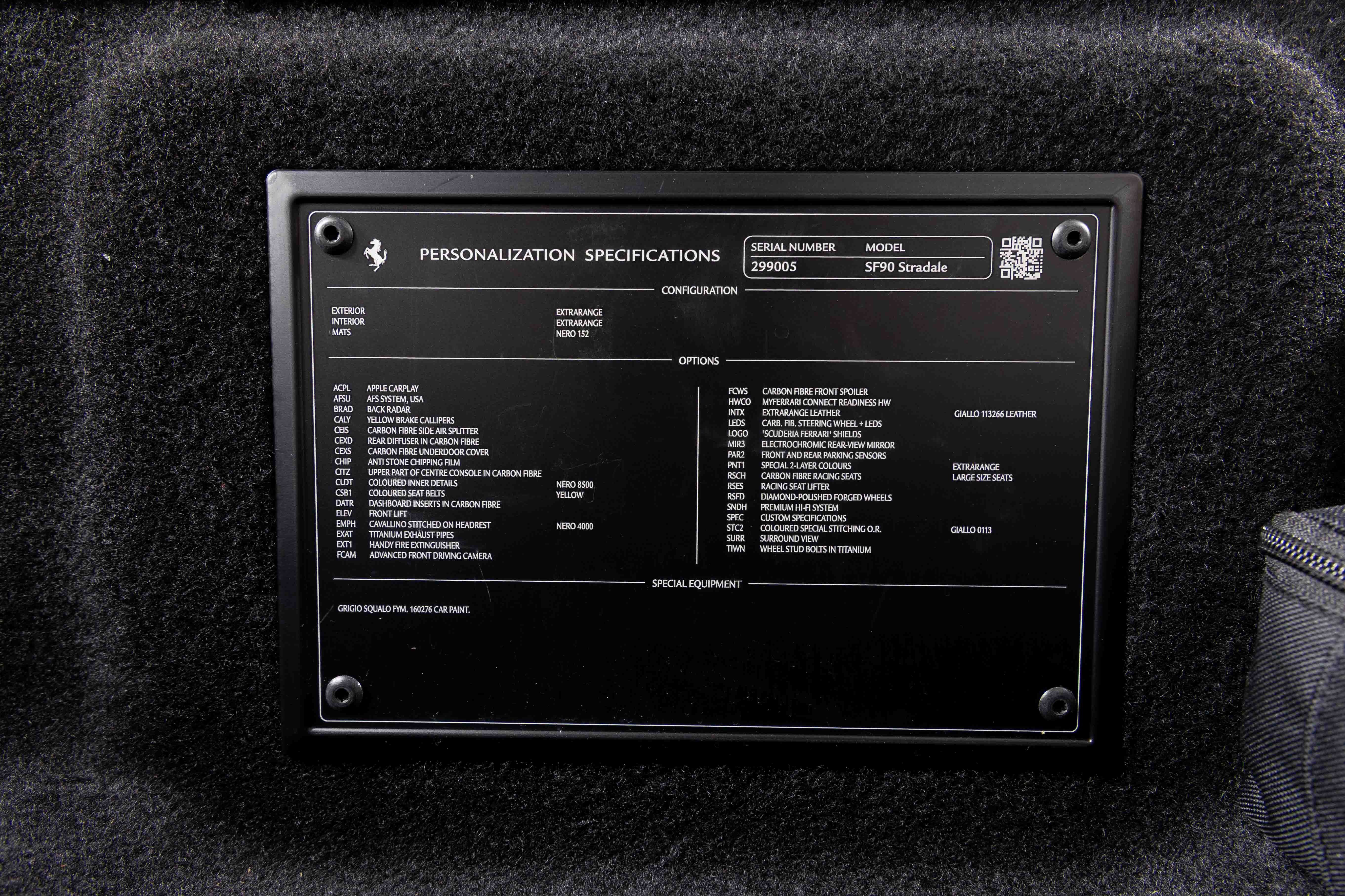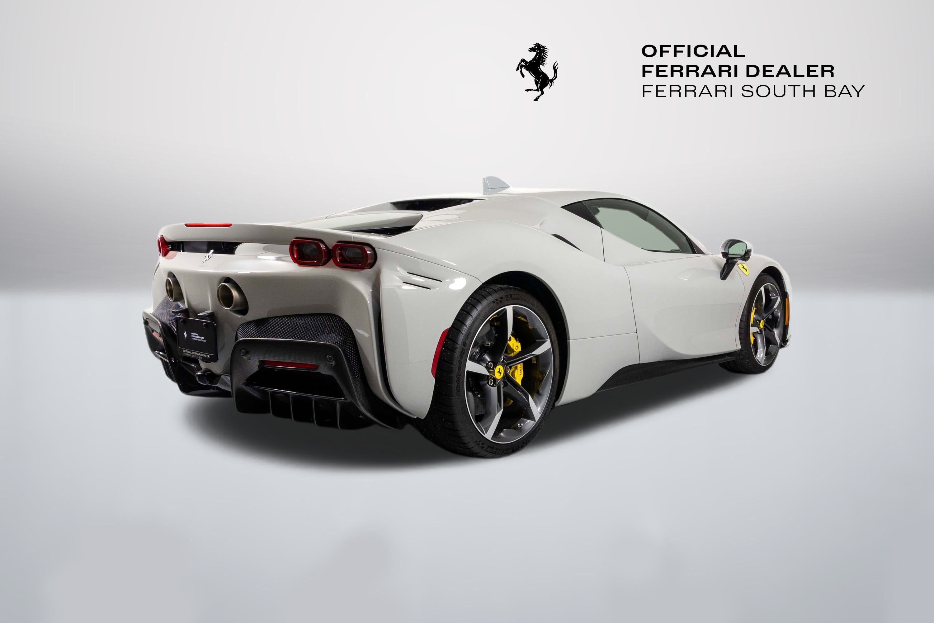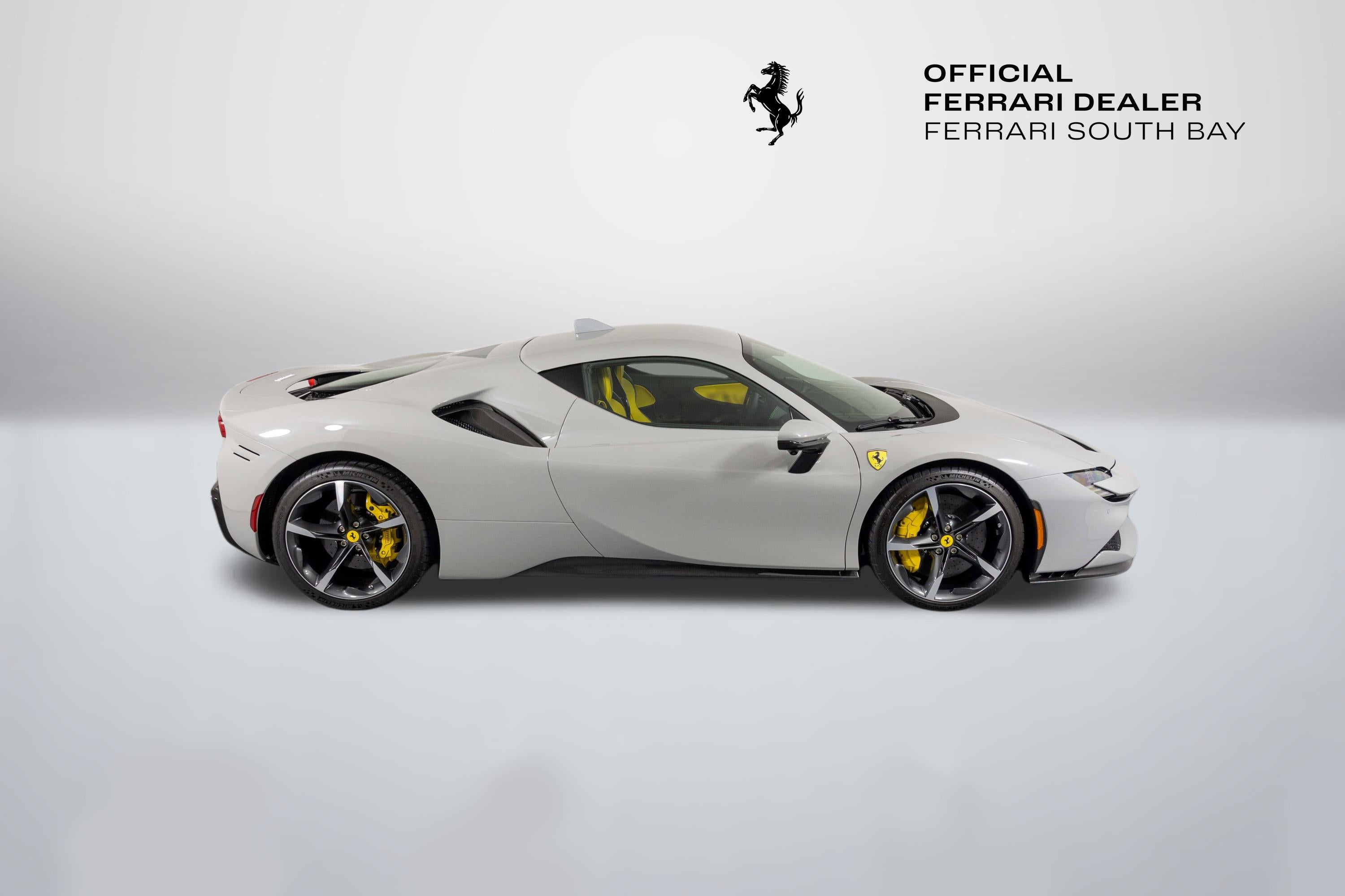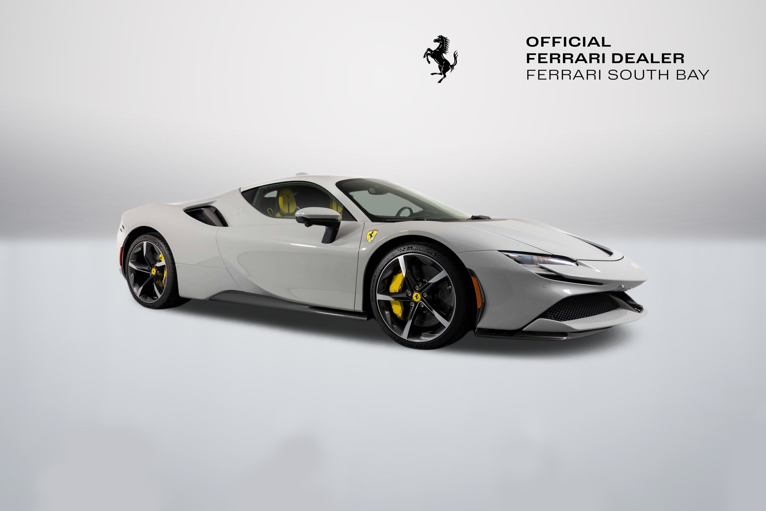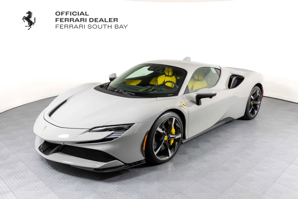 Ferrari South Bay is thrilled to offer this stunning delivery mile SF90 Stradale finished in beautiful (and rare) Grigio Squalo, with Yellow Leather Interior. This is a very unique, striking example of the SF90, and is sure to be a hit wherever it happens to show up! The exterior of this SF90 is finished in stunning Grigio Squalo, a very technical light gray. 20 Diamond-Polished Forged Wheels surround Ceramic Brakes with Yellow Calipers. Glossy Carbon Fiber covers the Under Door Sills, Side Engine Air Splitters, Front Spoiler and Rear Diffuser. Scuderia Ferrari Shields adorn the front fenders. Paint Protection Film covers the nose of the car, ensuring your investment will look terrific for years to come. Inside, you'll find eye-popping Yellow Leather with contrasting Nero Stitching throughout, including the Cavallinos embroidered on the headrests of the Carbon Fiber Racing Seats (which are fitted with the Racing Seat Lifter). Yellow Seatbelts tie the interior together, and Carbon Fiber finishes the Upper Part of the Center Console, Dashboard Inserts and the Steering Wheel (which is fitted with Ferrari's now-signature LED Shift Lights). Front and Rear Parking Sensors, Back Radar, and Surround View Camera assist with tight maneuvers, and the Suspension Lifter simplifies steep driveways and other road irregularities. The High Power JBL Premium Audio System and Apple CarPlay provide alternative entertainment when traffic conspires against you. This Certified Pre-Owned SF90 is offered with both original keys, books, tools, hybrid battery tender and car cover. The car is covered by the Original Ferrari Factory Warranty through May 22, 2027 (and the warranty can easily be extended by up to two years at time of purchase). Ferrari Genuine Maintenance covers annual services through May 22, 2031. If you'd like to know more about this SF90 or set up a viewing, please reach out to one of our knowledgeable sales staff. Ferrari South Bay is proudly part of Holand Automotive Group, one of North America’s leading luxury automotive retailers. We offer nationwide shipping, trade-in opportunities, financing, client consignments, and world-class delivery service. Contact us today to explore ownership of this remarkable. Please visit us at 23305 Hawthorne Blvd, Torrance, CA 90505, or call us at (888) 578-8767.