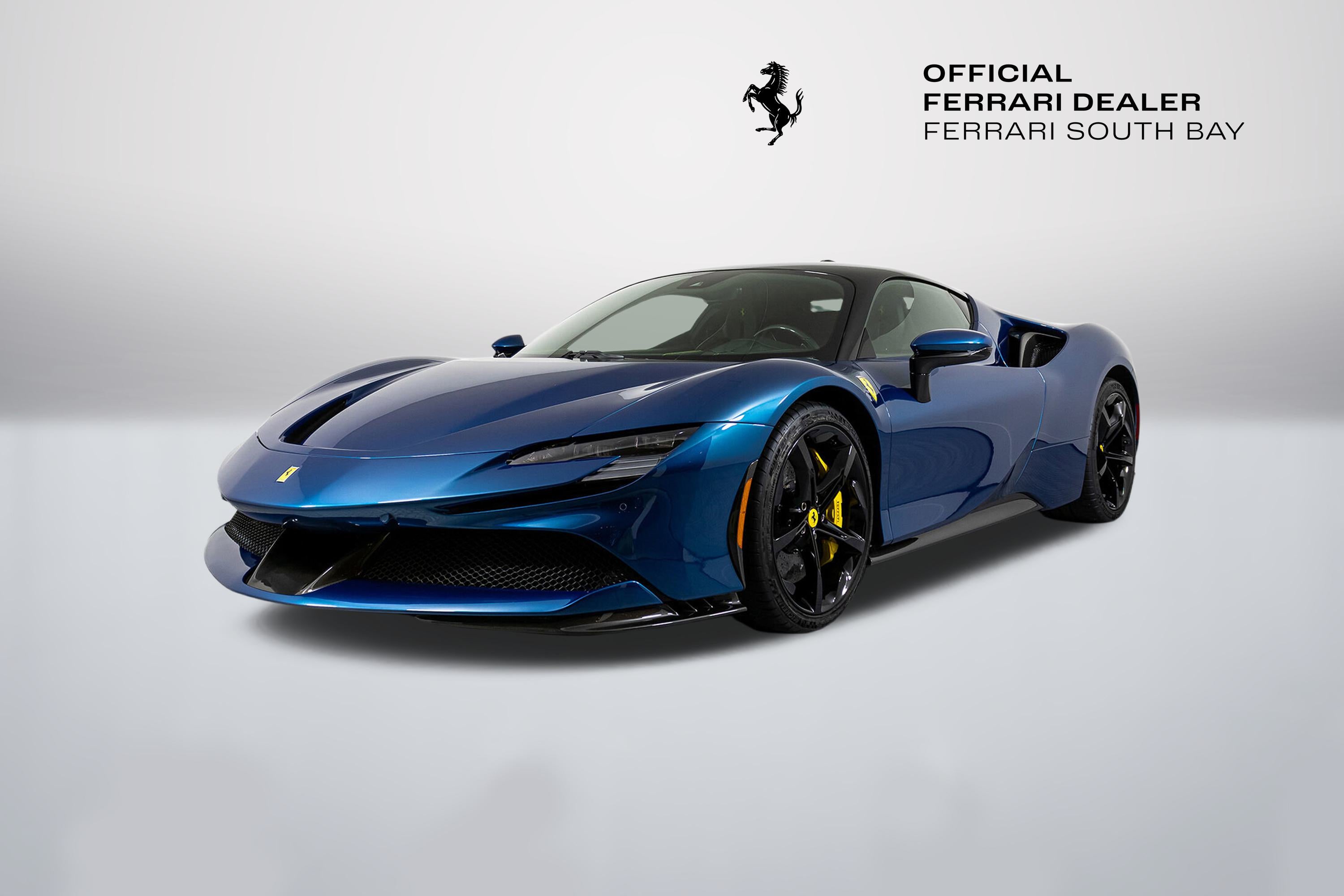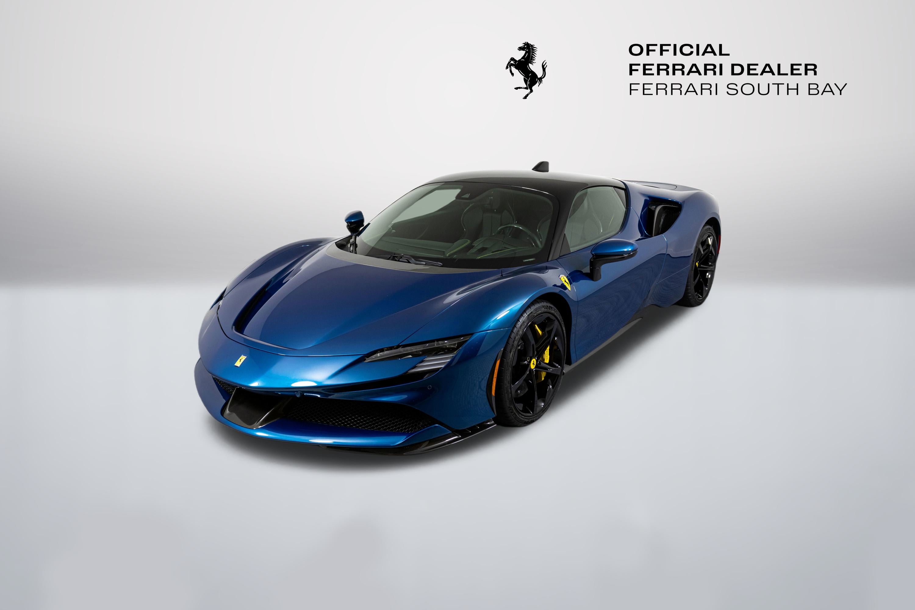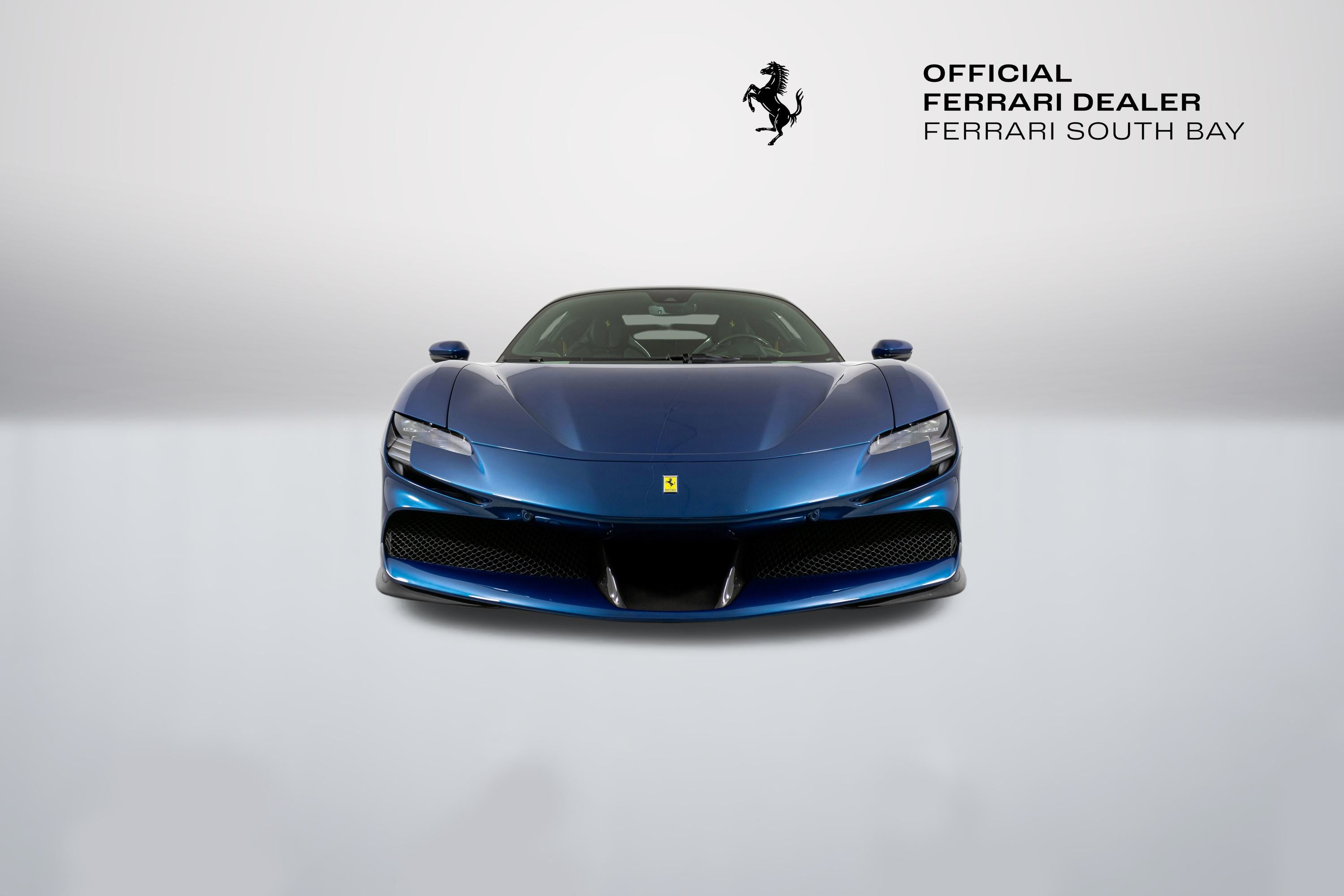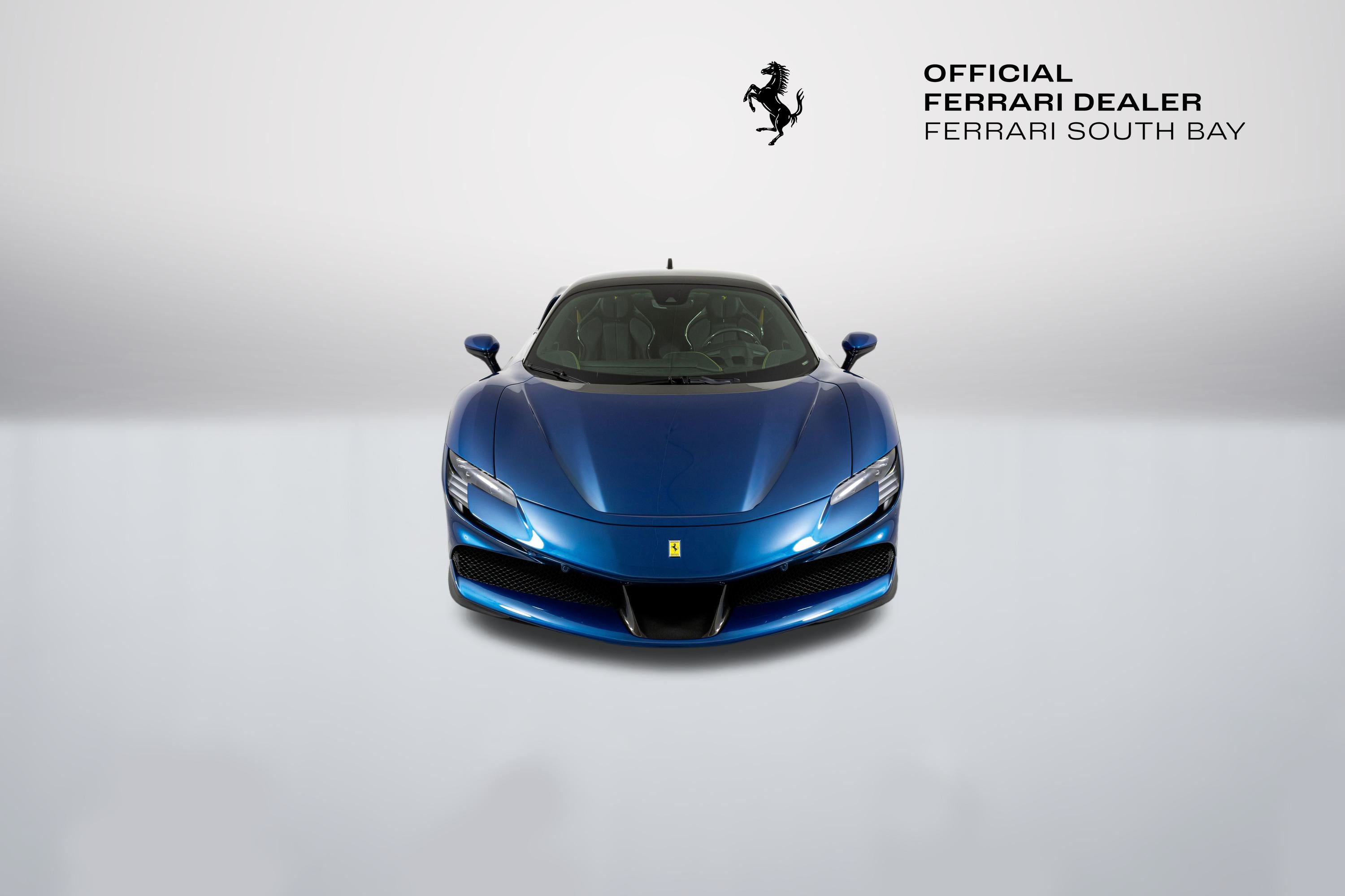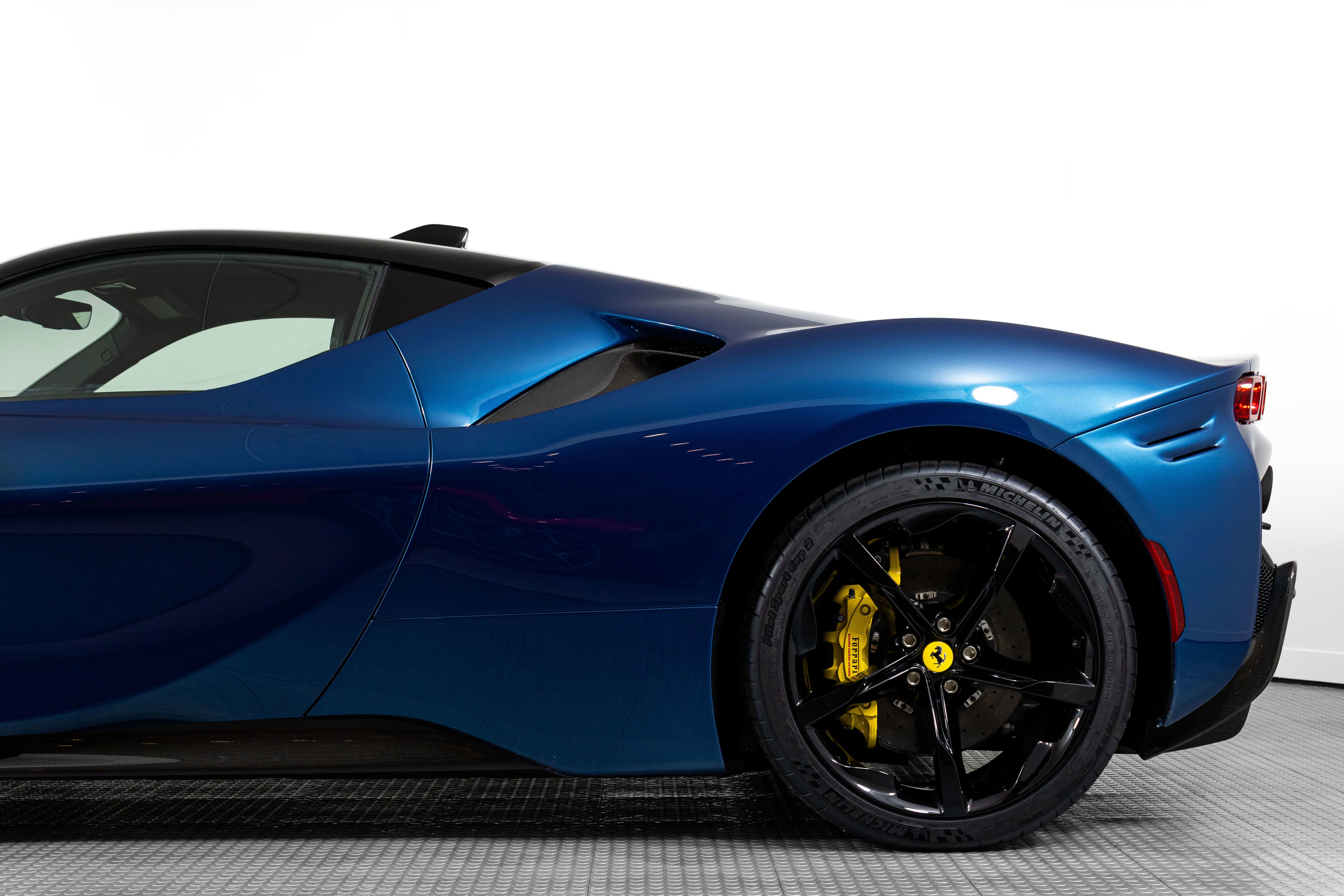 Ferrari South Bay is thrilled to offer this stunning SF90 Stradale finished in gorgeous Two-Tone Blu Abu Dhabi with Nero Roof, and Nero Leather Interior. Immerse yourself in the allure of 986 horsepower, seamlessly merging a potent V8 engine with electric prowess. This hybrid marvel seamlessly fuses a potent V8 engine with three electric motors, delivering an astonishing 0-60 sprint in just 2.5 seconds. From its aerodynamic curves to the electrifying performance, the SF90 Stradale represents the pinnacle of Ferrari's commitment to innovation and unparalleled driving thrill. The exterior of this SF90 is finished in stunning Blu Abu Dhabi, a color that truly must be seen to be appreciated! it is also two-tone with a Nero roof to accentuate the feeling of a jet fighter cockpit, a design detail that harkens back to the legendary LaFerrari. 20 Forged Wheels are painted Glossy Black surround Ceramic Brakes with Yellow Calipers. Glossy Carbon Fiber covers the Under Door Sills, Side Engine Air Intakes, Central and Side Front Spoilers and Rear Diffuser. Scuderia Ferrari Shields adorn the front fenders. Paint Protection Film covers the nose of the car, ensuring your investment will look terrific for years to come. Inside, you'll find Nero Leather and Alcantara, with contrasting Yellow Stitching throughout, including the Cavallinos embroidered on the headrests of the Carbon Fiber Racing Seats. Yellow Seatbelts tie the interior together, and Carbon Fiber finishes the Upper Part of the Center Console and the Steering Wheel (which is fitted with Ferrari's now-signature LED Shift Lights). Front and Rear Parking Sensors, Back Radar, Advanced Front Driving Camera assist with tight maneuvers, and the Suspension Lifter simplifies steep driveways and other road irregularities. The Passenger Display keeps your passenger involved, while the High Power JBL Premium Audio System, Apple CarPlay, provide entertainment when traffic won't permit you to stretch the car's legs. This Certified Pre-Owned SF90 is offered with both original keys, books, tools, battery tender and car cover. The car covered by the Original Ferrari Factory Warranty through August 5, 2025 (and can easily be extended by up to two years at time of purchase). Ferrari Genuine Maintenance covers annual services through August 5, 2030. If you'd like to know more about this SF90 or set up a viewing, please reach out to one of our knowledgeable sales staff.