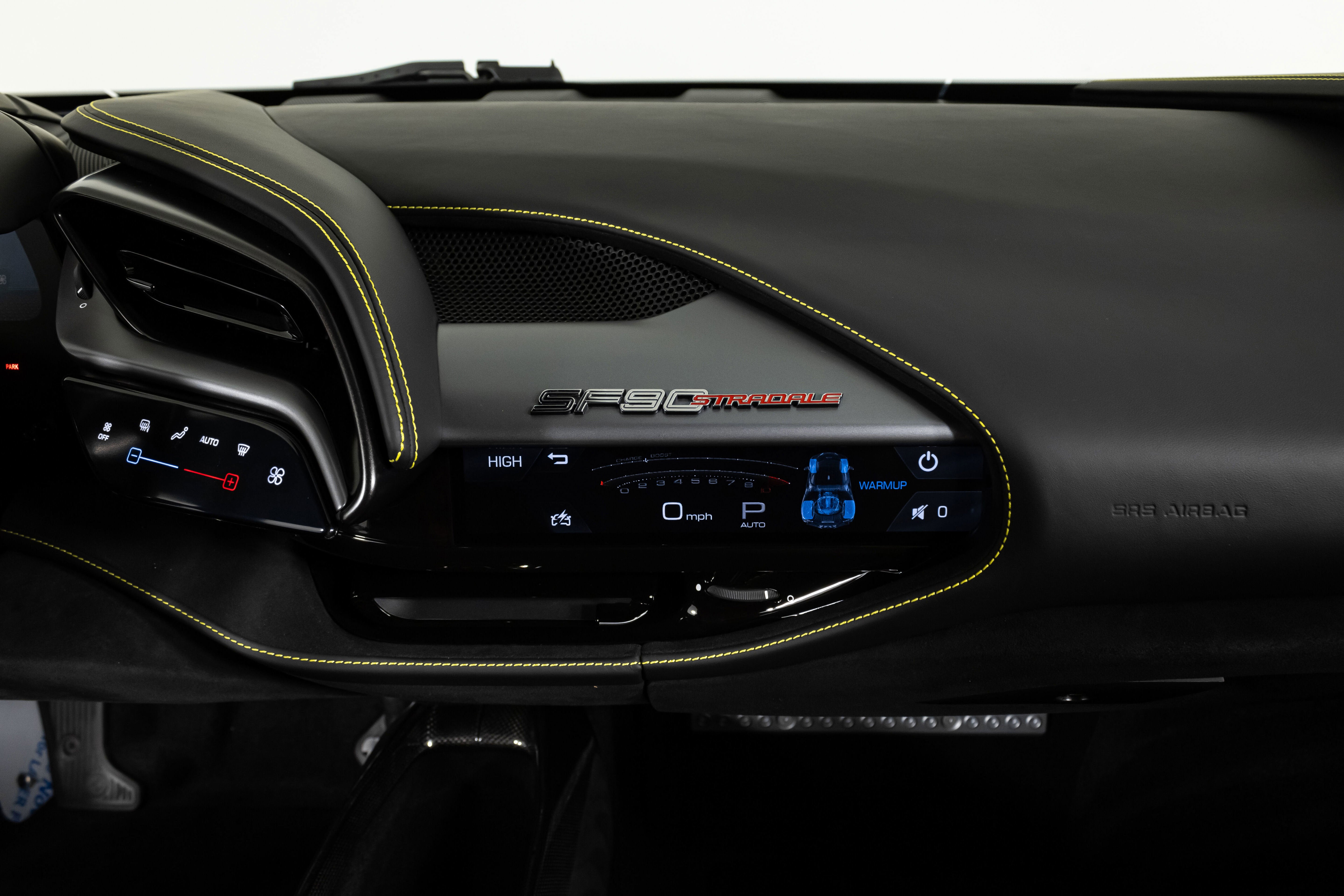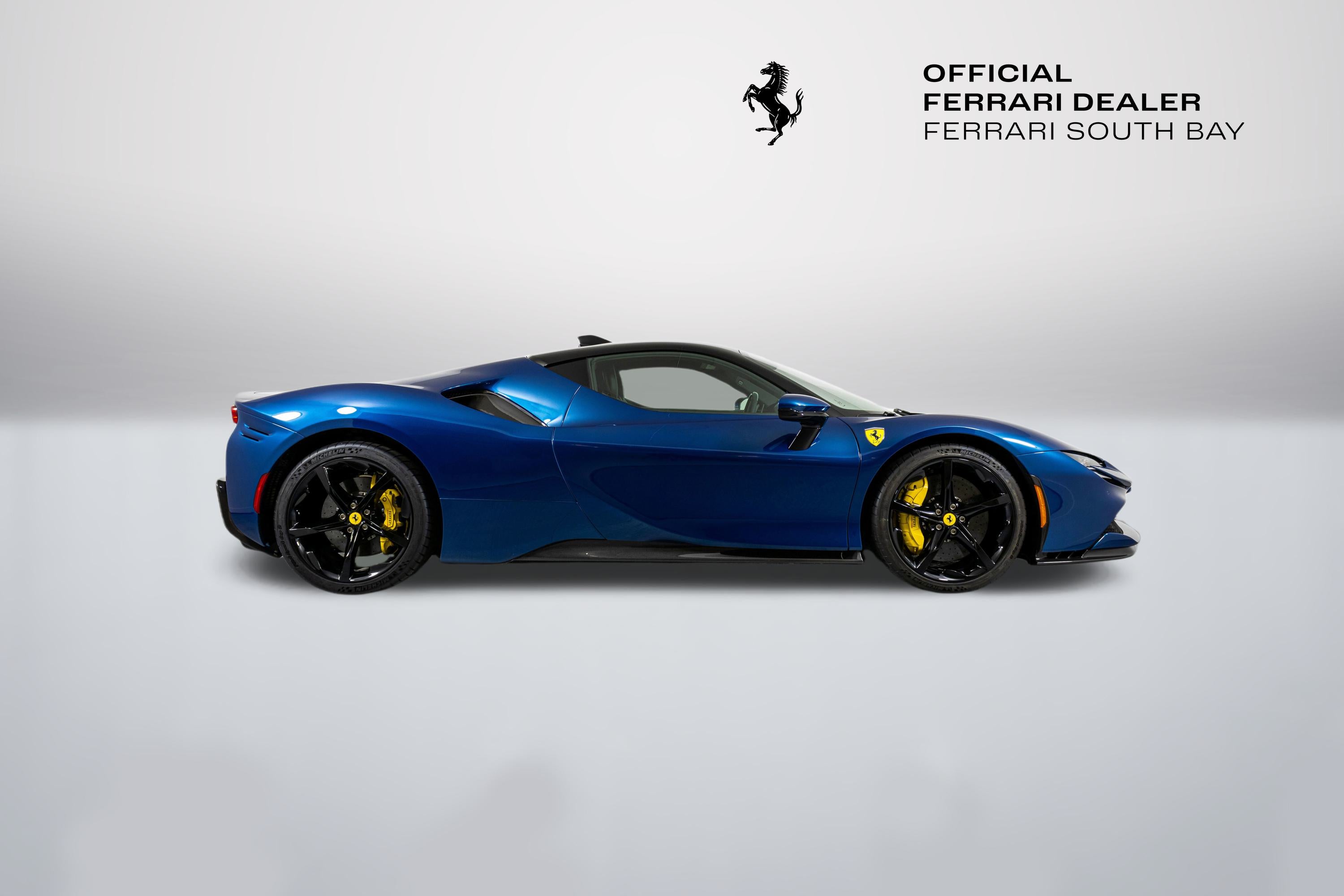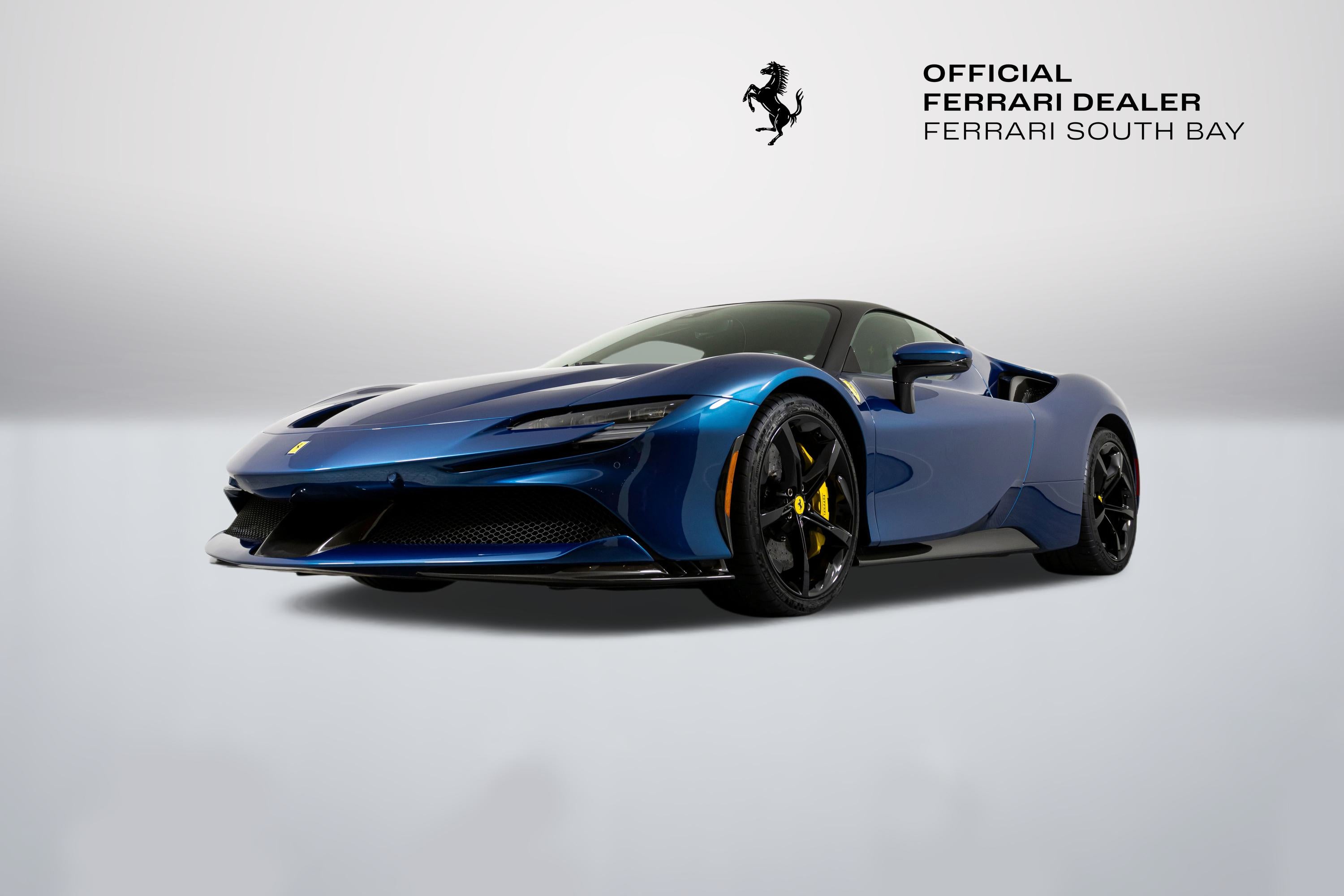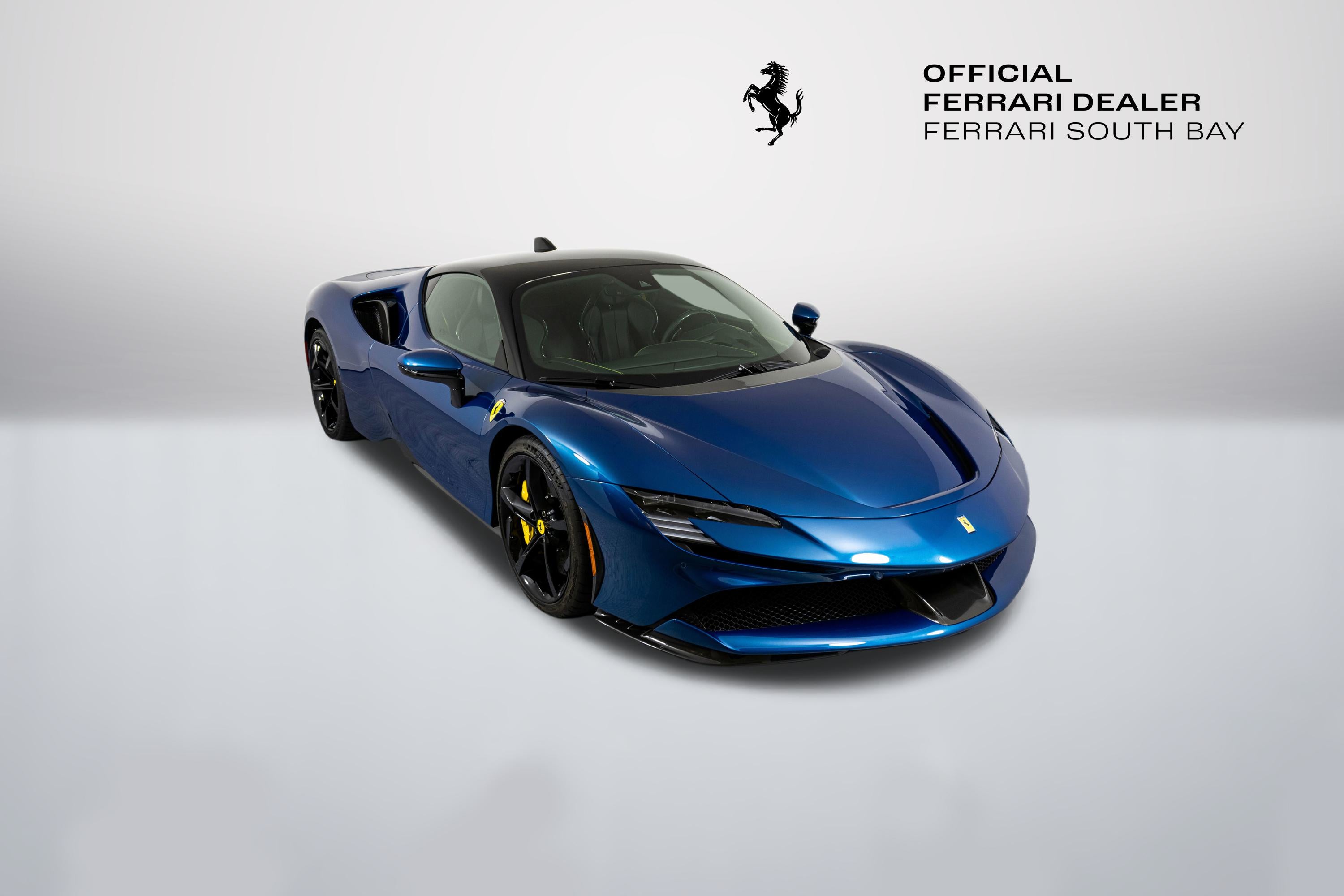 Ferrari South Bay is thrilled to offer this stunning SF90 Stradale finished in gorgeous Two-Tone Blu Abu Dhabi with Nero Roof, and Nero Leather Interior. Immerse yourself in the allure of 986 horsepower, seamlessly merging a potent V8 engine with electric prowess. This hybrid marvel seamlessly fuses a potent V8 engine with three electric motors, delivering an astonishing 0-60 sprint in just 2.5 seconds. From its aerodynamic curves to the electrifying performance, the SF90 Stradale represents the pinnacle of Ferrari's commitment to innovation and unparalleled driving thrill. The exterior of this SF90 is finished in stunning Blu Abu Dhabi, a color that truly must be seen to be appreciated! it is also two-tone with a Nero roof to accentuate the feeling of a jet fighter cockpit, a design detail that harkens back to the legendary LaFerrari. 20 Forged Wheels are painted Glossy Black surround Ceramic Brakes with Yellow Calipers. Glossy Carbon Fiber covers the Under Door Sills, Side Engine Air Intakes, Central and Side Front Spoilers and Rear Diffuser. Scuderia Ferrari Shields adorn the front fenders. Paint Protection Film covers the nose of the car, ensuring your investment will look terrific for years to come. Inside, you'll find Nero Leather and Alcantara, with contrasting Yellow Stitching throughout, including the Cavallinos embroidered on the headrests of the Carbon Fiber Racing Seats. Yellow Seatbelts tie the interior together, and Carbon Fiber finishes the Upper Part of the Center Console and the Steering Wheel (which is fitted with Ferrari's now-signature LED Shift Lights). Front and Rear Parking Sensors, Back Radar, Advanced Front Driving Camera assist with tight maneuvers, and the Suspension Lifter simplifies steep driveways and other road irregularities. The Passenger Display keeps your passenger involved, while the High Power JBL Premium Audio System, Apple CarPlay, provide entertainment when traffic won't permit you to stretch the car's legs. This Certified Pre-Owned SF90 is offered with both original keys, books, tools, battery tender and car cover. The car covered by the Original Ferrari Factory Warranty through August 5, 2025 (and can easily be extended by up to two years at time of purchase). Ferrari Genuine Maintenance covers annual services through August 5, 2030. If you'd like to know more about this SF90 or set up a viewing, please reach out to one of our knowledgeable sales staff.