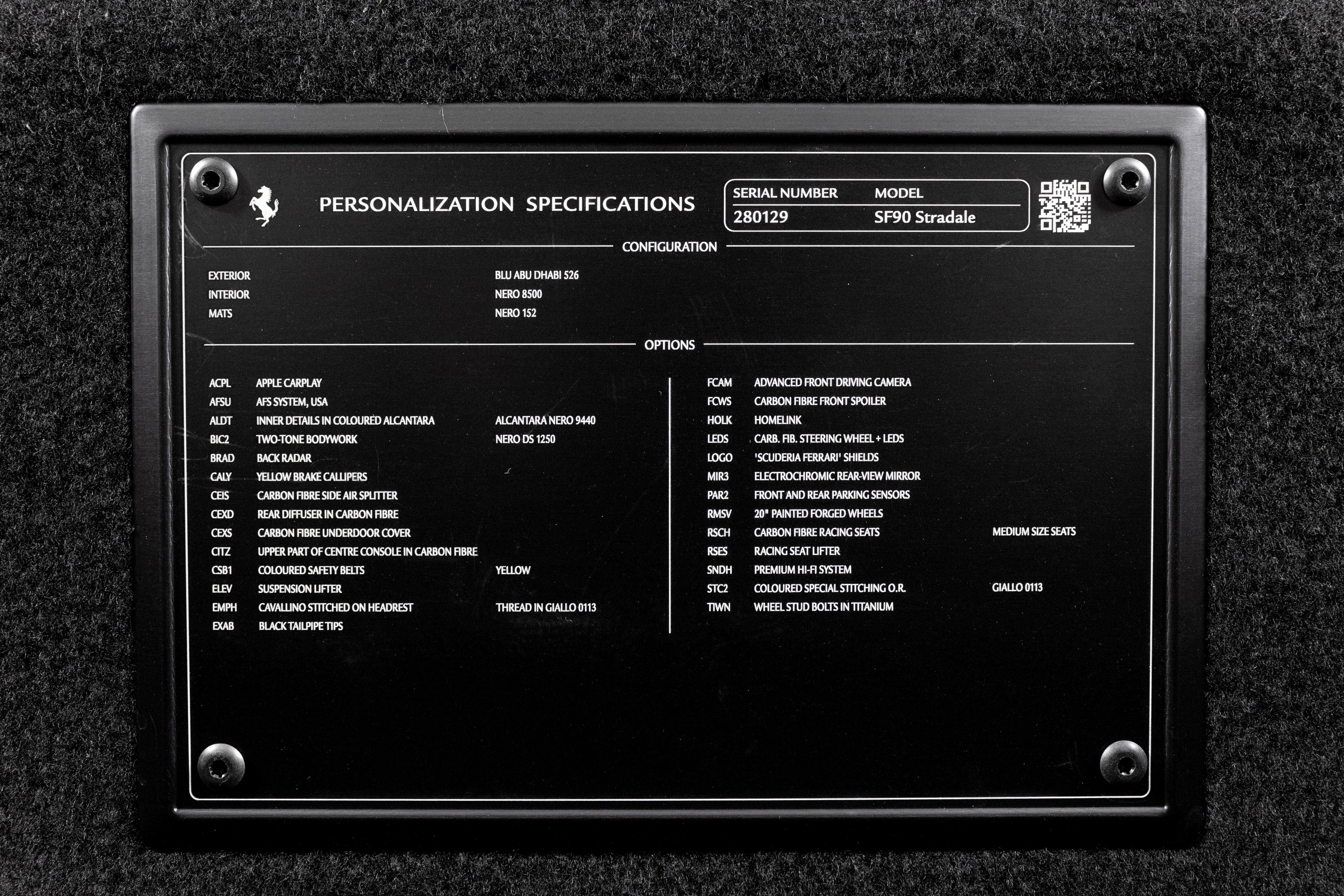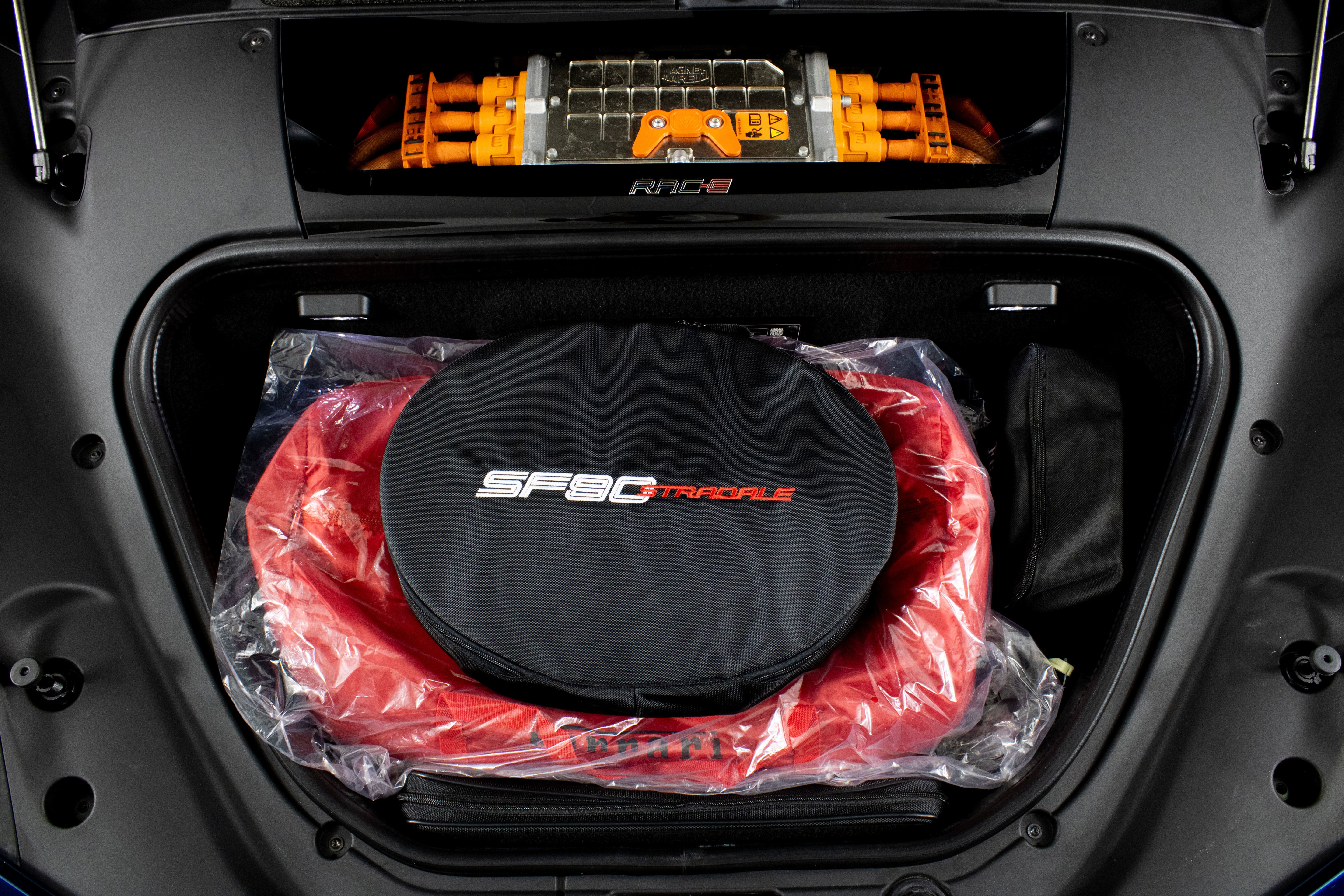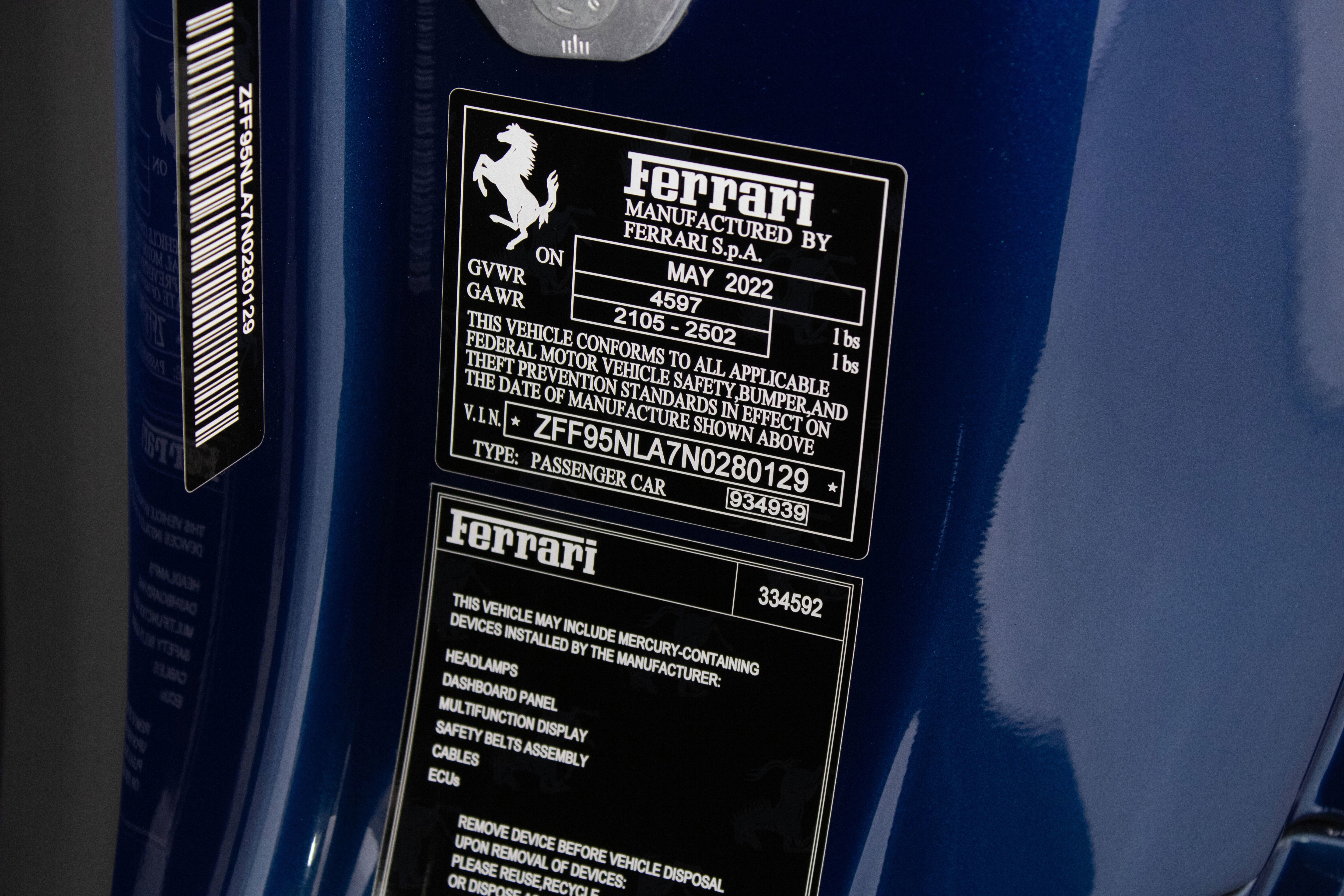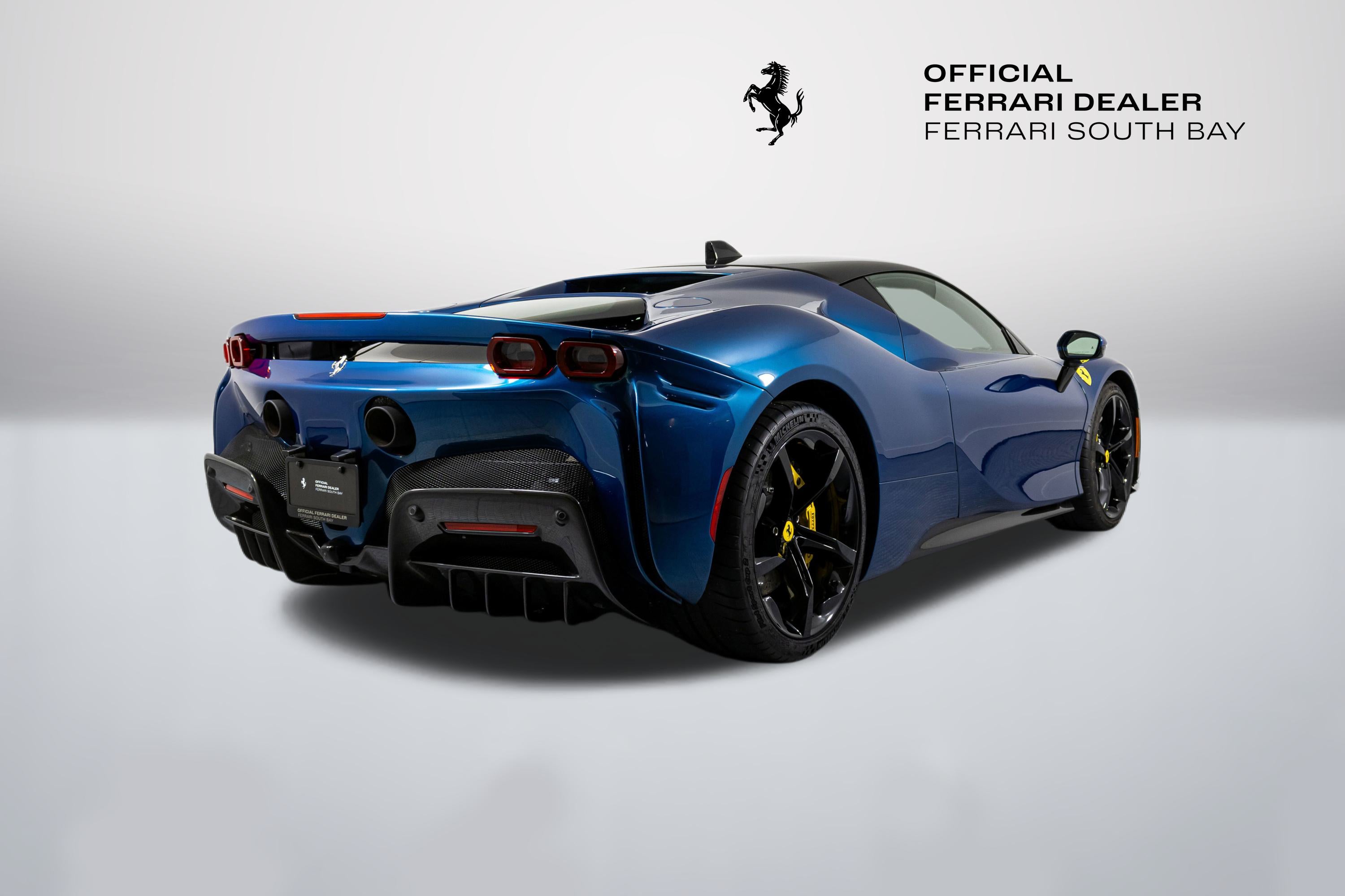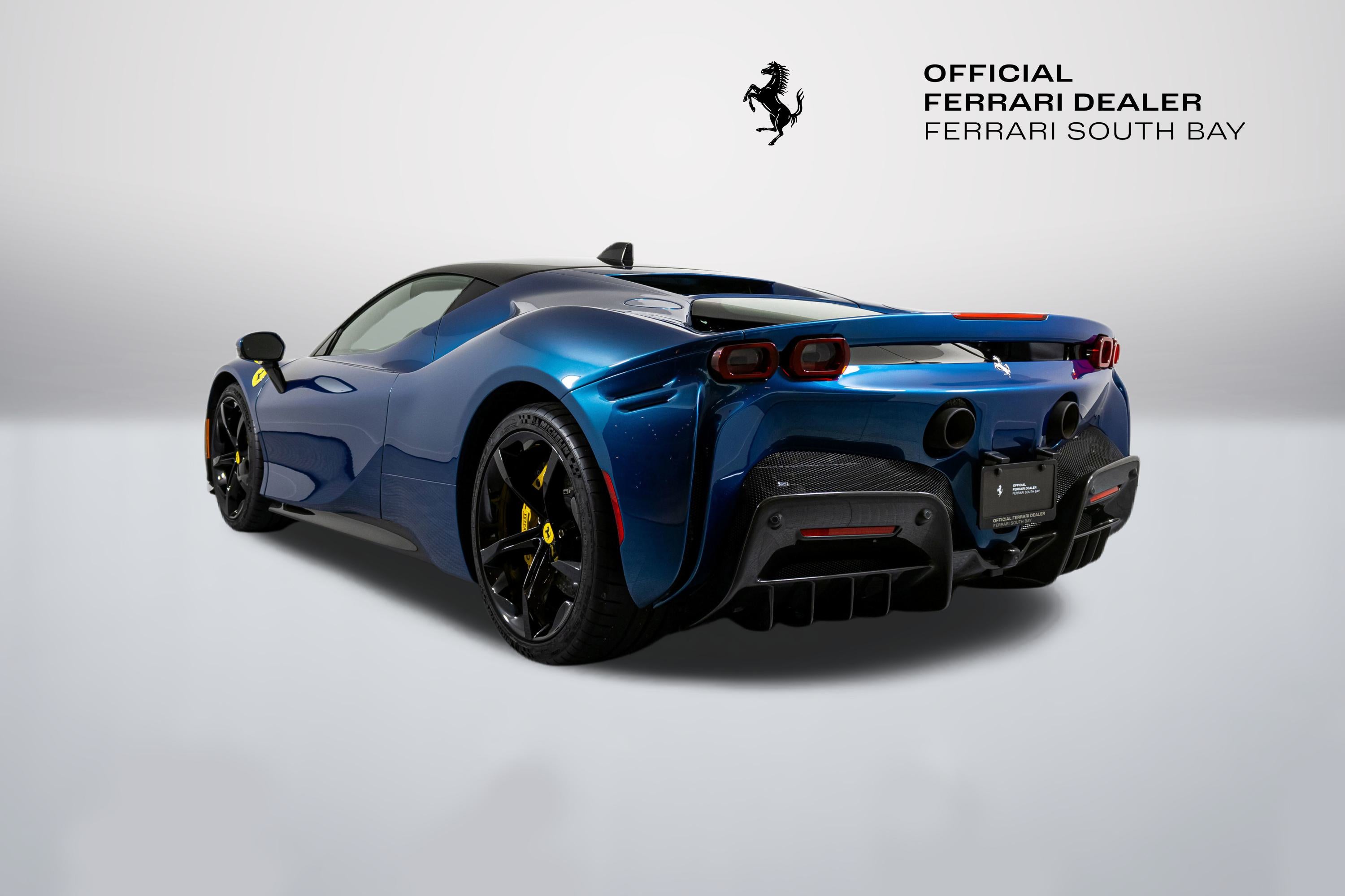 Ferrari South Bay is thrilled to offer this stunning SF90 Stradale finished in gorgeous Two-Tone Blu Abu Dhabi with Nero Roof, and Nero Leather Interior. Immerse yourself in the allure of 986 horsepower, seamlessly merging a potent V8 engine with electric prowess. This hybrid marvel seamlessly fuses a potent V8 engine with three electric motors, delivering an astonishing 0-60 sprint in just 2.5 seconds. From its aerodynamic curves to the electrifying performance, the SF90 Stradale represents the pinnacle of Ferrari's commitment to innovation and unparalleled driving thrill. The exterior of this SF90 is finished in stunning Blu Abu Dhabi, a color that truly must be seen to be appreciated! it is also two-tone with a Nero roof to accentuate the feeling of a jet fighter cockpit, a design detail that harkens back to the legendary LaFerrari. 20 Forged Wheels are painted Glossy Black surround Ceramic Brakes with Yellow Calipers. Glossy Carbon Fiber covers the Under Door Sills, Side Engine Air Intakes, Central and Side Front Spoilers and Rear Diffuser. Scuderia Ferrari Shields adorn the front fenders. Paint Protection Film covers the nose of the car, ensuring your investment will look terrific for years to come. Inside, you'll find Nero Leather and Alcantara, with contrasting Yellow Stitching throughout, including the Cavallinos embroidered on the headrests of the Carbon Fiber Racing Seats. Yellow Seatbelts tie the interior together, and Carbon Fiber finishes the Upper Part of the Center Console and the Steering Wheel (which is fitted with Ferrari's now-signature LED Shift Lights). Front and Rear Parking Sensors, Back Radar, Advanced Front Driving Camera assist with tight maneuvers, and the Suspension Lifter simplifies steep driveways and other road irregularities. The Passenger Display keeps your passenger involved, while the High Power JBL Premium Audio System, Apple CarPlay, provide entertainment when traffic won't permit you to stretch the car's legs. This Certified Pre-Owned SF90 is offered with both original keys, books, tools, battery tender and car cover. The car covered by the Original Ferrari Factory Warranty through August 5, 2025 (and can easily be extended by up to two years at time of purchase). Ferrari Genuine Maintenance covers annual services through August 5, 2030. If you'd like to know more about this SF90 or set up a viewing, please reach out to one of our knowledgeable sales staff.