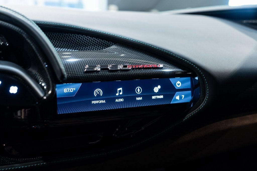 Ferrari of Lake Forest is Proud to Present this Certified Pre Owned 2023 Ferrari SF90 Stradale Finished in Extra Range Verde Scuro over Iroko Leather Interior. This Ferrari SF90 Stradale is Optionally Equipped with: Giallo Brake Calipers Carbon Fiber Side Air Splitter Fiorano Handling Package Scuderia Ferrari Shields Front and Rear Parking Sensors Special 2 Layer Paint Verde Scuro Apple CarPlay Carbon Fiber Driver Zone with LEDs Carbon Fiber Door Panels Upper Part of Center Console in Carbon Fiber Colored Inner Details in Extra Range Verde Door Pocket Webbing in Verde Style Leather and Alcantara Carpets Dashboard Inserts in Carbon Fiber Cavallino Stitched on Headrests in Verde Daytona Racing Seats Racing Seat Lifter Premium HiFi System Colored Special Stitching in Extra Range Speciale Verde Colored Steering Wheel in Iroko The Ferrari SF90 Stradale is what happens when Maranello decides its bored with the laws of physics. You press the starter and the cabin fills with a deep mechanical growl, followed by a surge of electric power that feels like being kicked by an angry thoroughbred. The steering is sharp enough to slice through granite, the grip borders on witchcraft, and the acceleration leaves your brain somewhere several postcodes behind. Its a plug in hybrid, yes, but it behaves less like an eco friendly gadget and more like a rocket disguised as a car. In short, its Ferrari showing off, and doing a spectacular job of it. The Certified Pre Owned Coverage is Included in our asking price. For more information on this Certified Pre Owned Ferrari SF90 Stradale call one of our Ferrari Specialists today at 847.295.6560