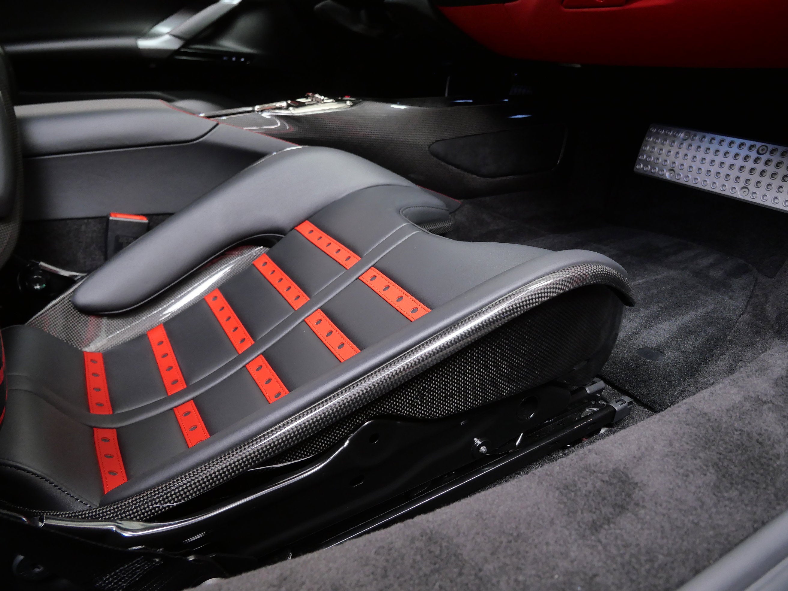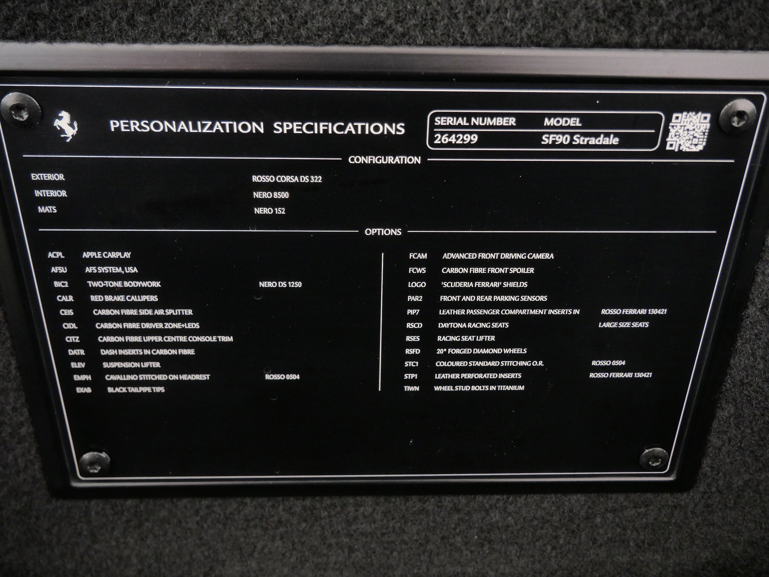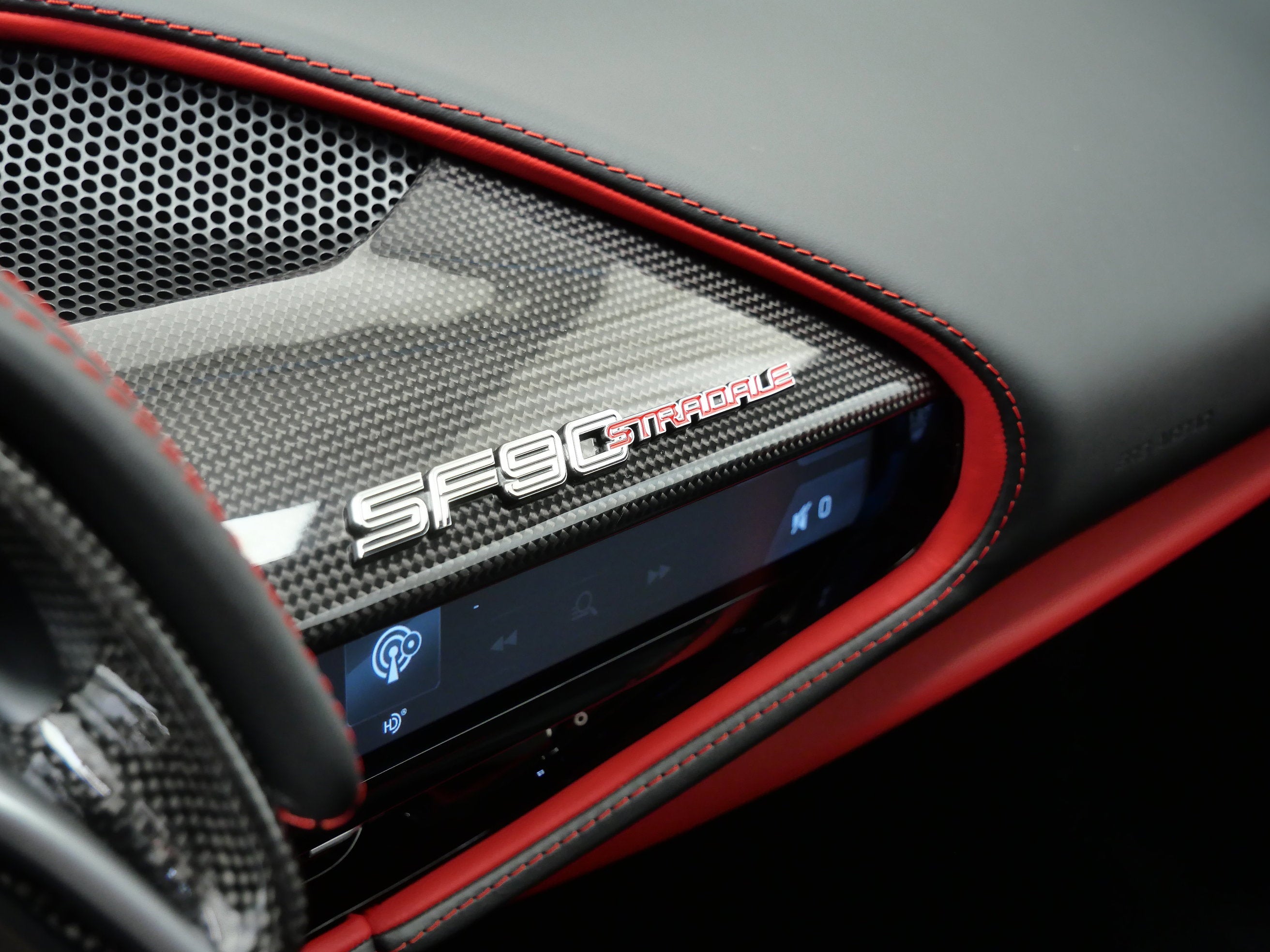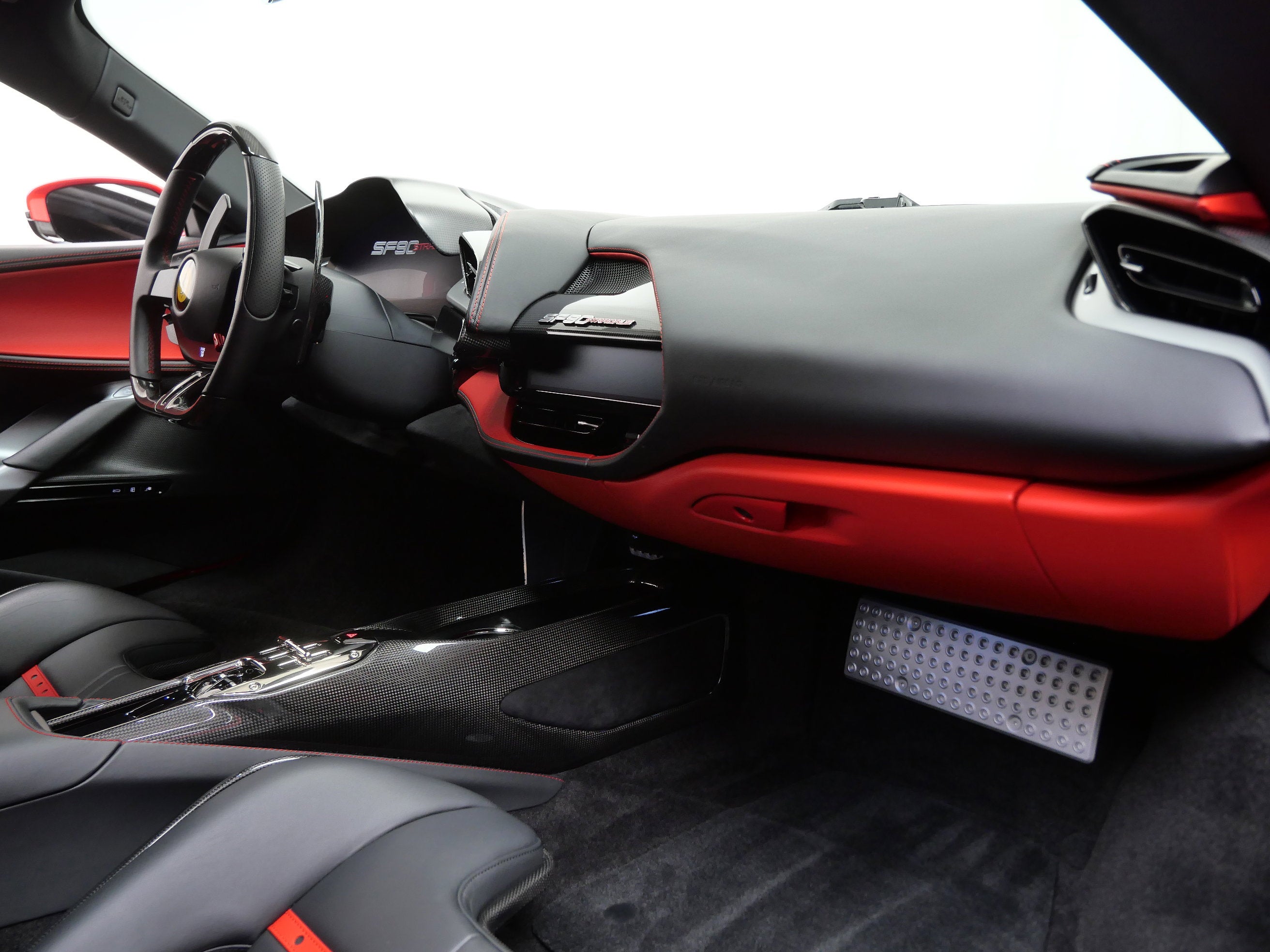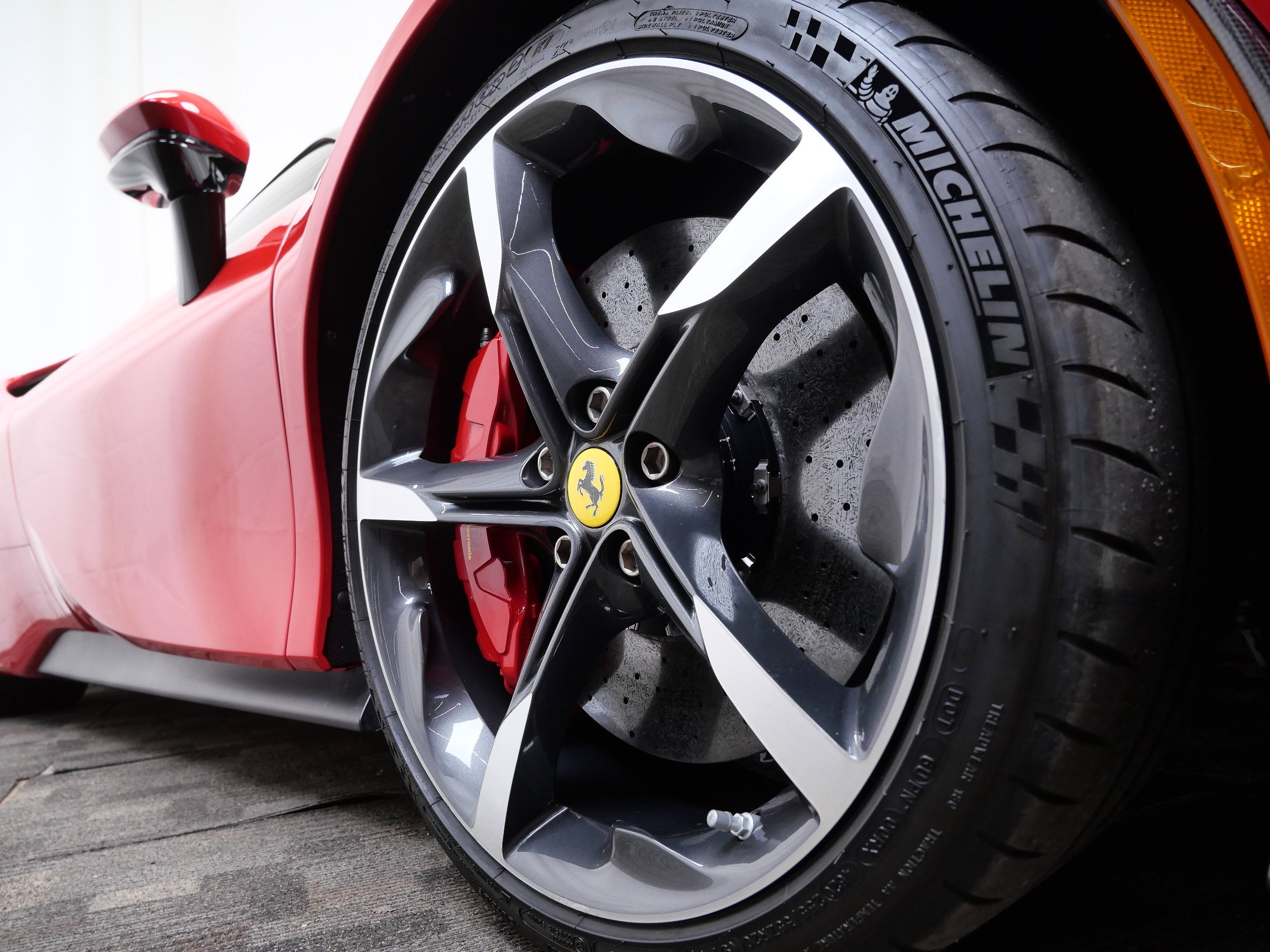 Ferrari Approved Certified Pre-Owned CPO Options: Rosso Corsa over Nero Race Seats, Two-tone Bodywork in Nero, Rosso Corsa Brake Calipers, Carbon Fiber Air Intakes, Carbon Fiber Front Tunnel, Black Ceramic Tailpipes, Carbon Fiber Front Spoiler, Scuderia Ferrari Shields on Fenders, Forged Diamond Finish Wheels, Titanium Wheel Studs, Carbon Fiber LED Steering Wheel with Driver Zone, Dashboard Inserts in Carbon Fiber, Horse Embroidered on Headrest in Rosso, Rosso Lower Cockpit, Daytona Racing Seats, Racing Seat Lifter, Rosso Contrast Stitching, Rosso Daytona Inserts, Apple CarPlay, Adaptive Headlight System, Front Suspension Lifter, Advanced Front Driving Camera, Front Parking Sensors. Rosso Corsa 2021 Ferrari SF90 Stradale AWD 8-Speed Manual 4.0L V8 Odometer is 2992 miles below market average! Ferrari Approved Details: