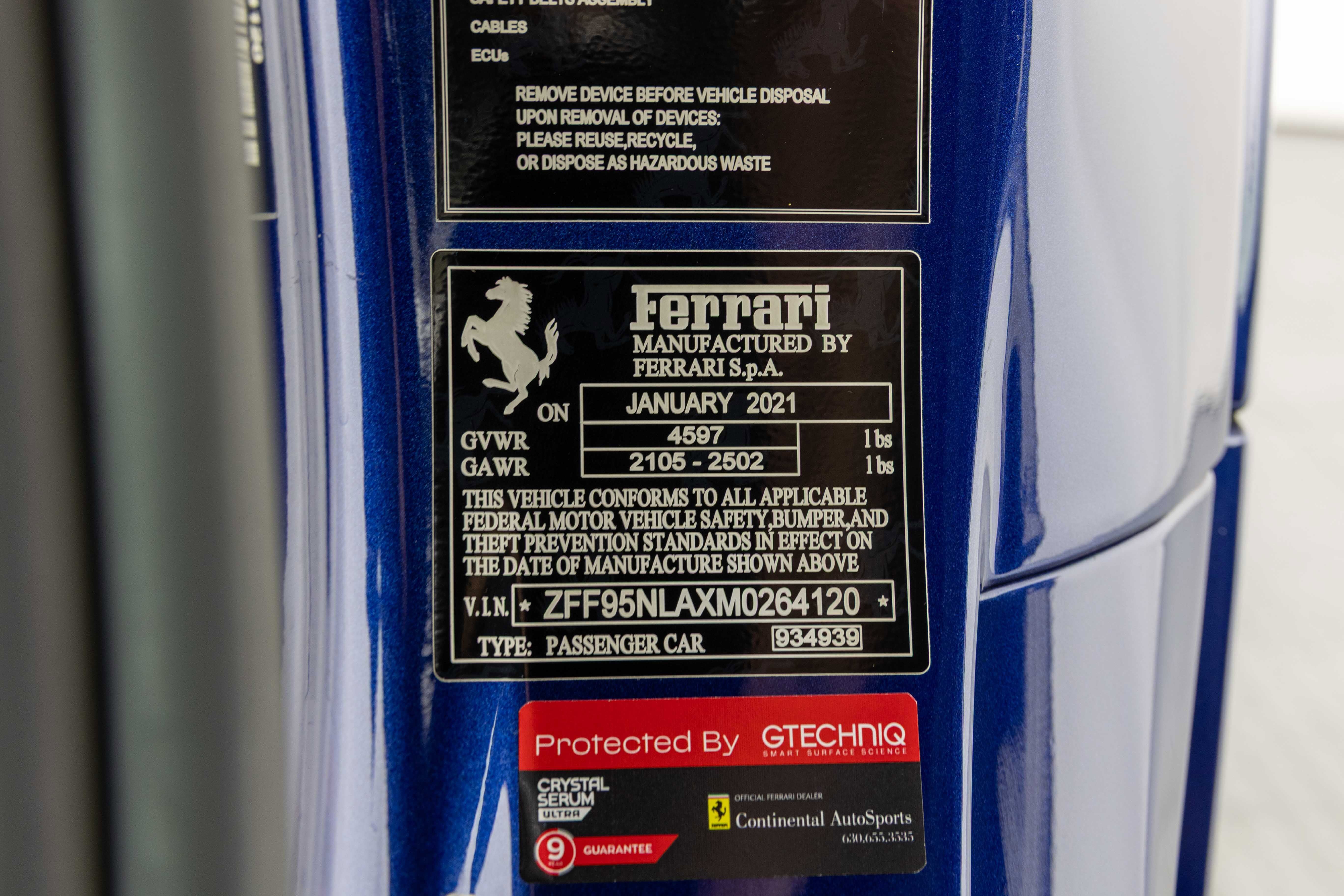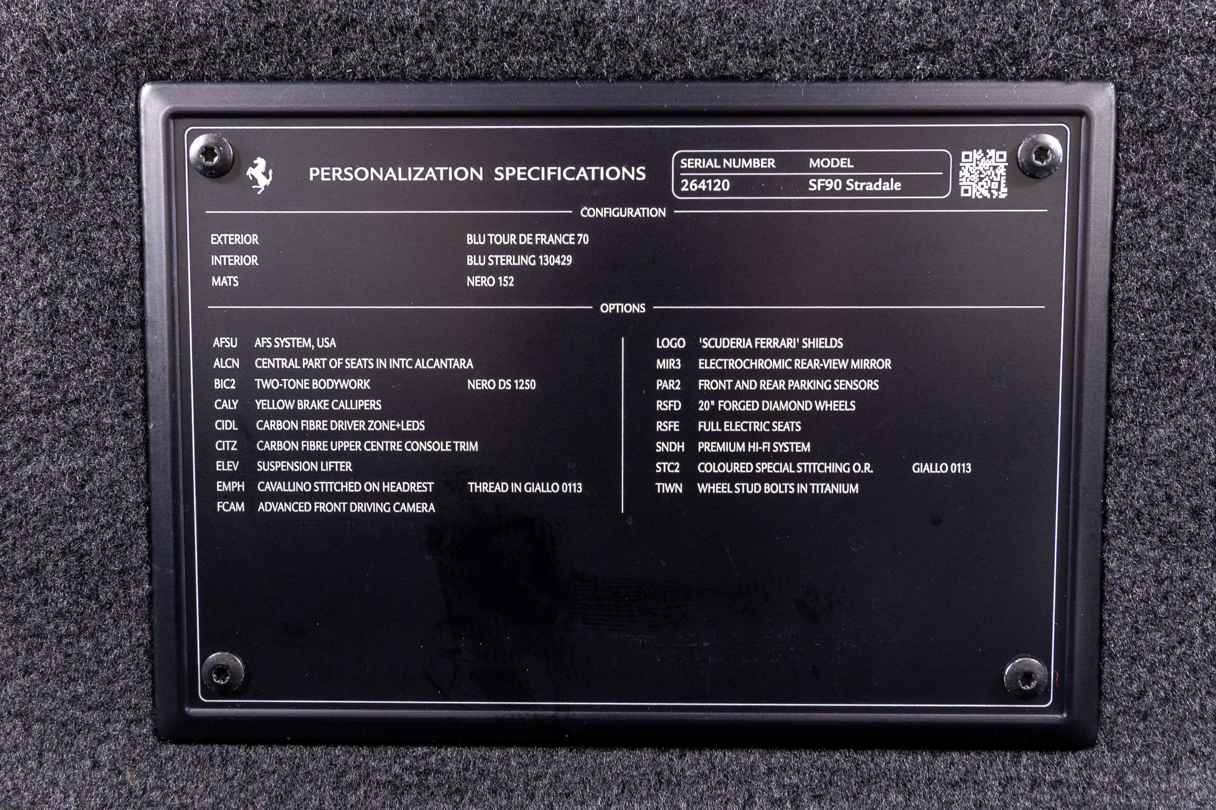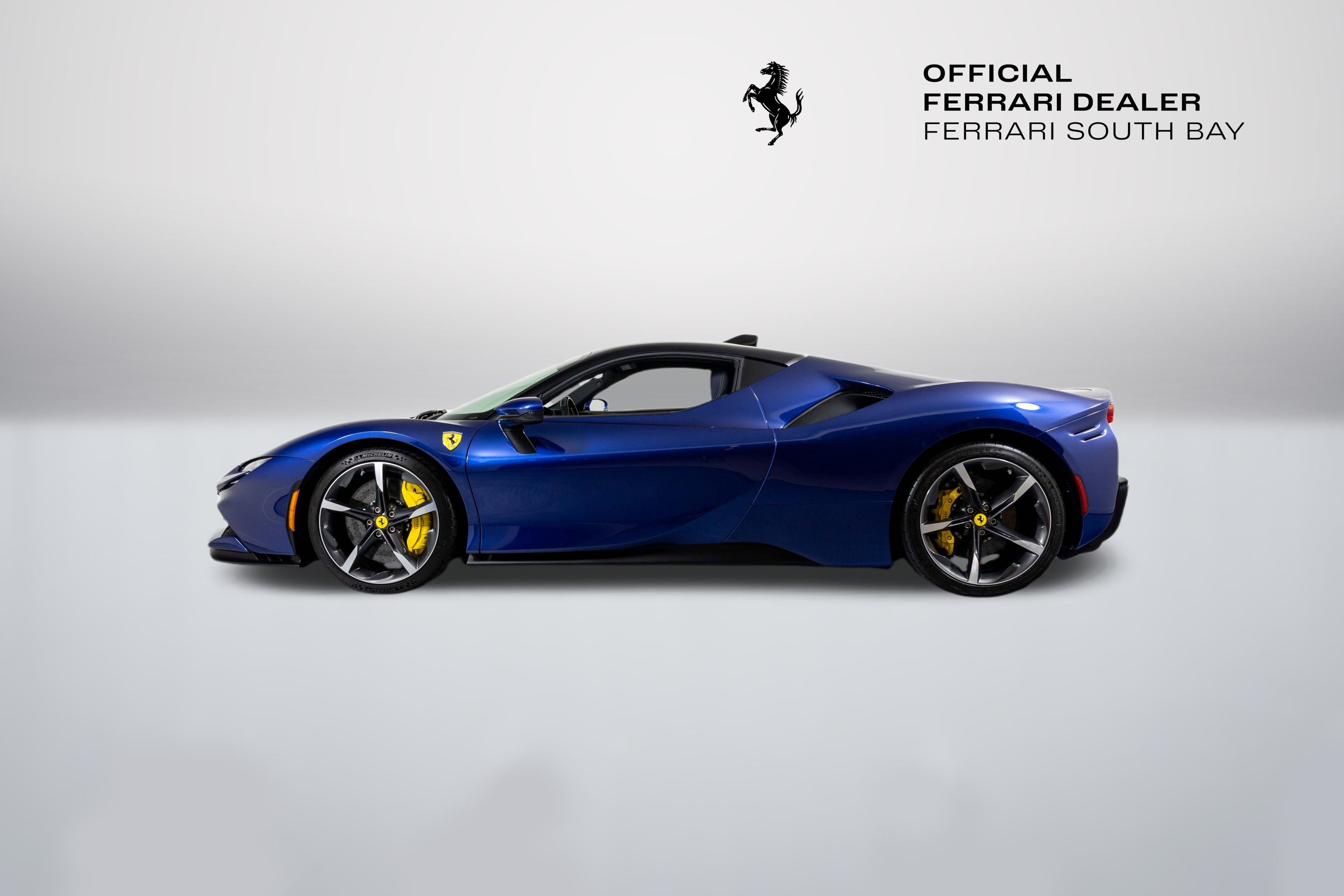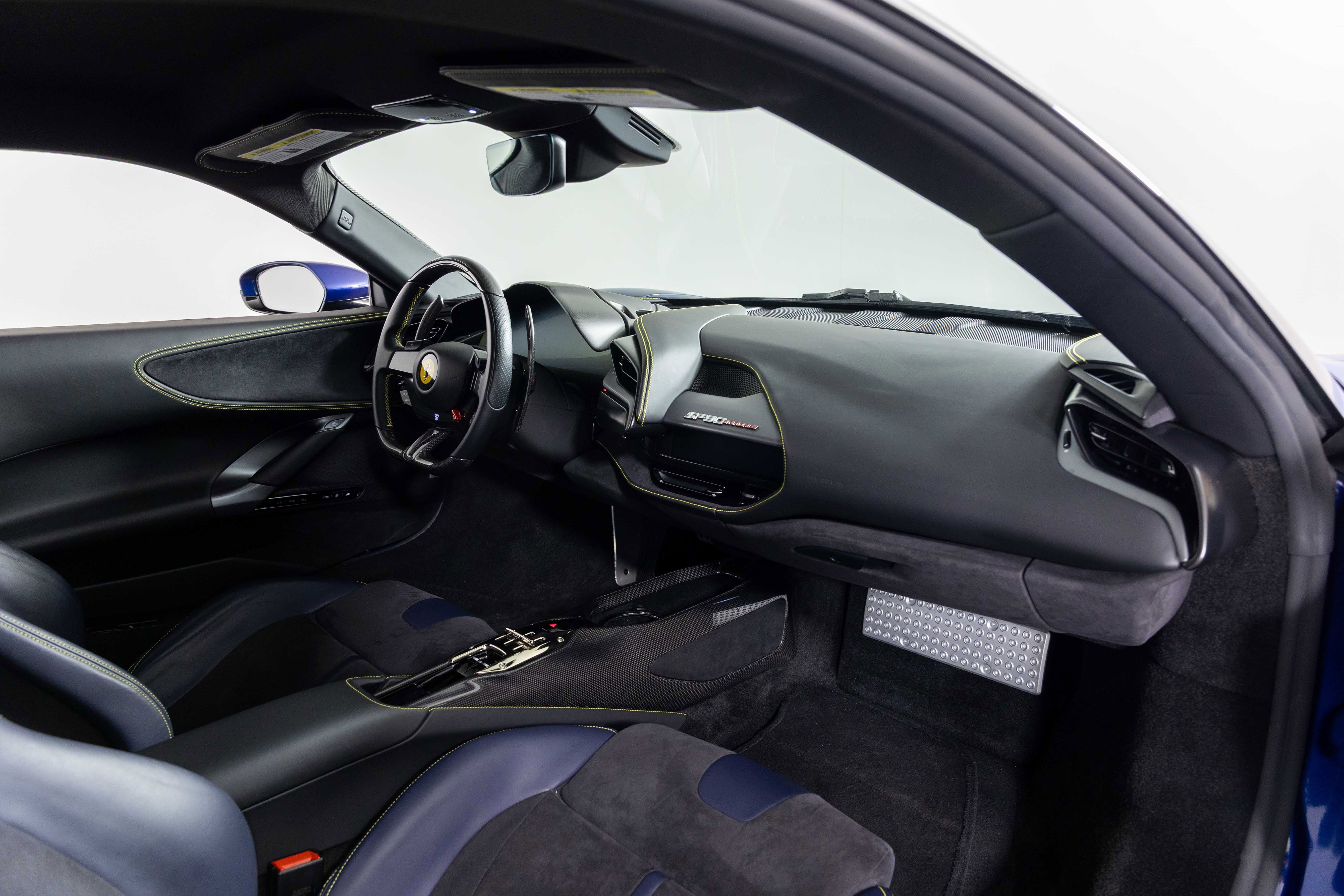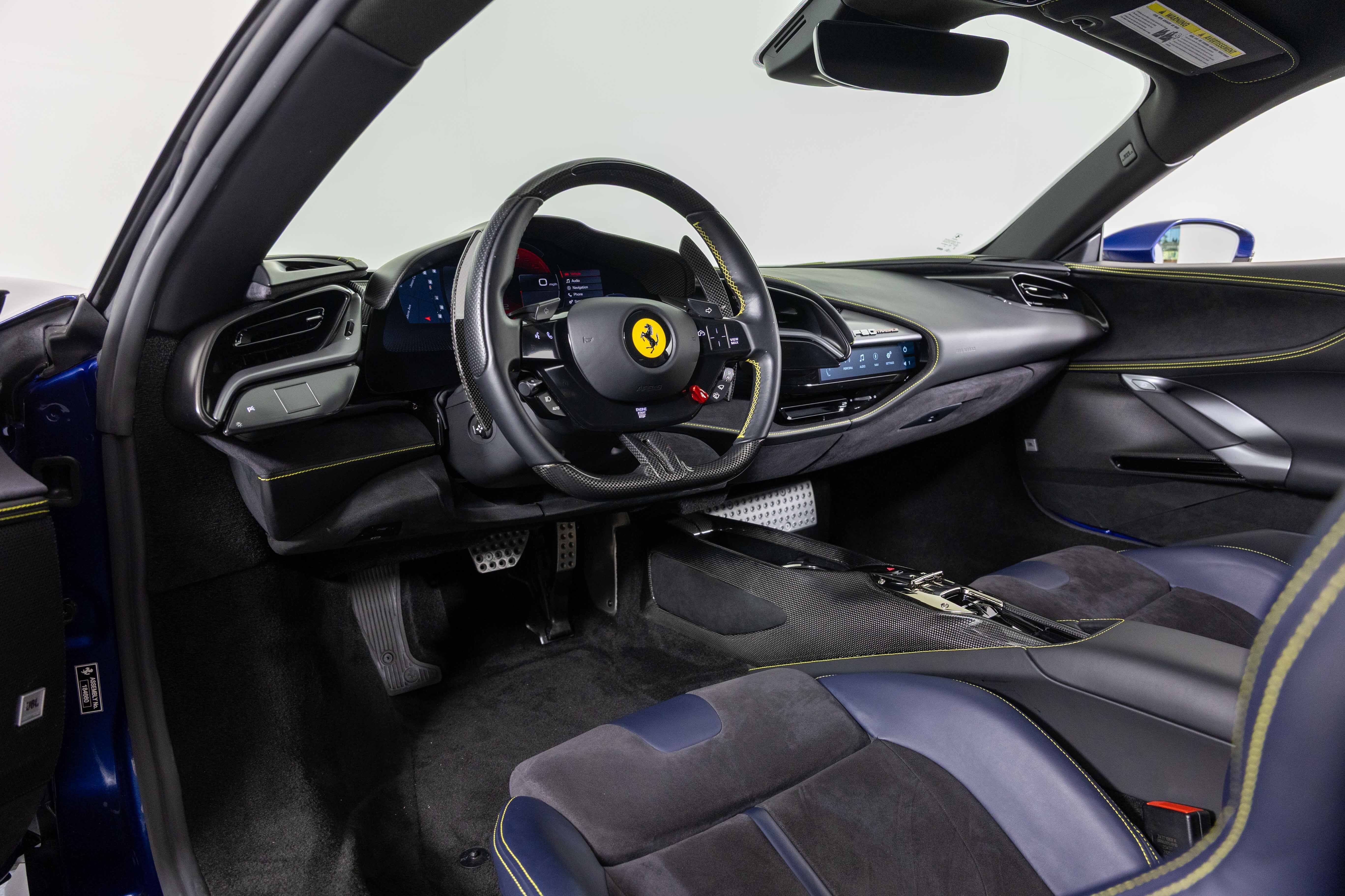 Ferrari South Bay is thrilled to offer this gorgeous SF90 Stradale finished in beautiful (and rare) Blu Tour de France with Blu Sterling Leather interior accented in Yellow. The exterior of this SF90 is finished in beautiful (and historic) Blu Tour de France and sports Two-Tone bodywork, which underscores the fighter-jet cockpit look of the car. 20 Diamond-Polished Forged Wheels are mounted with Titanium Studs to enormous Ceramic Brakes with Yellow Calipers. Scuderia Ferrari Shields adorn the front fenders. Inside, you'll find a stunning mix of deep Blu Sterling Leather accented with Yellow Stitching throughout the cabin (as well as the Cavallinos embroidered on the headrests of the Fully Electric Seats. Carbon Fiber finishes the Upper Part of the Center Console, and Driver's Zone which includes the Dash Surround Binnacle, F1 Shift Paddles and the Steering Wheel (which is fitted with Ferrari's iconic LED Shift Lights). Front and Rear Parking Sensors and the Suspension Lifter simplifies steep driveways and tight maneuvers. Apple Carplay integrates your smartphone with The High Power JBL Premium Audio System to provide a suitable soundtrack. This Certified Pre-Owned SF90 is offered with both original keys, books, tools, hybrid battery tender and car cover. The car is covered by the Ferrari Factory Extended Warranty through March 30, 2028 (and the warranty can easily be extended by a further two years at time of purchase). Ferrari Genuine Maintenance covers annual services through March 30, 2028. If you'd like to know more about this SF90 or set up a viewing, please reach out to one of our knowledgeable sales staff. Ferrari South Bay is proudly part of Holand Automotive Group, one of North America’s leading luxury automotive retailers. We offer nationwide shipping, trade-in opportunities, financing, client consignments, and world-class delivery service. Contact us today to explore ownership of this remarkable. Please visit us at 23305 Hawthorne Blvd, Torrance, CA 90505, or call us at (888) 578-8767.