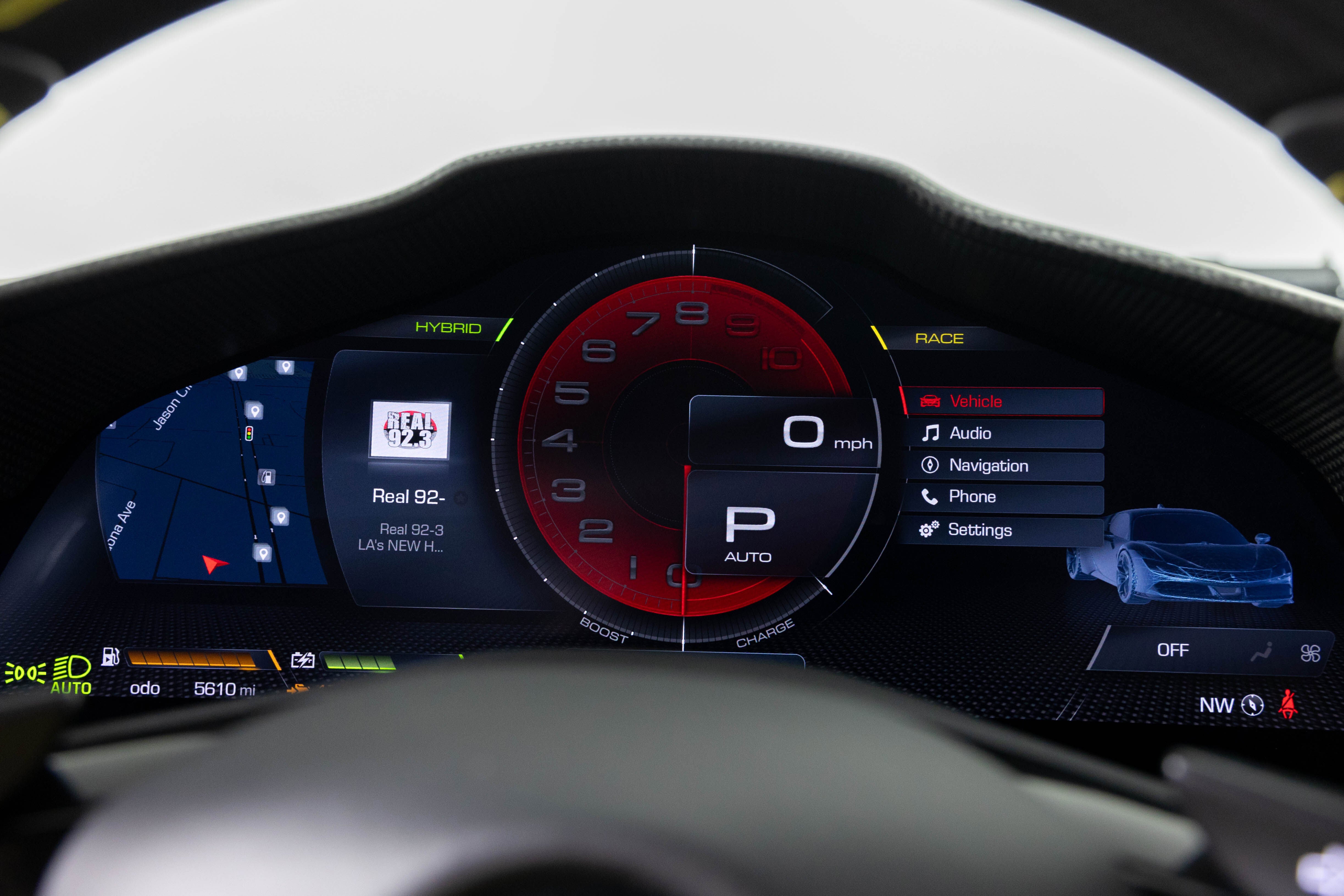 • Carbon fibre trim driver zone and LED shift indicators on steering wheel