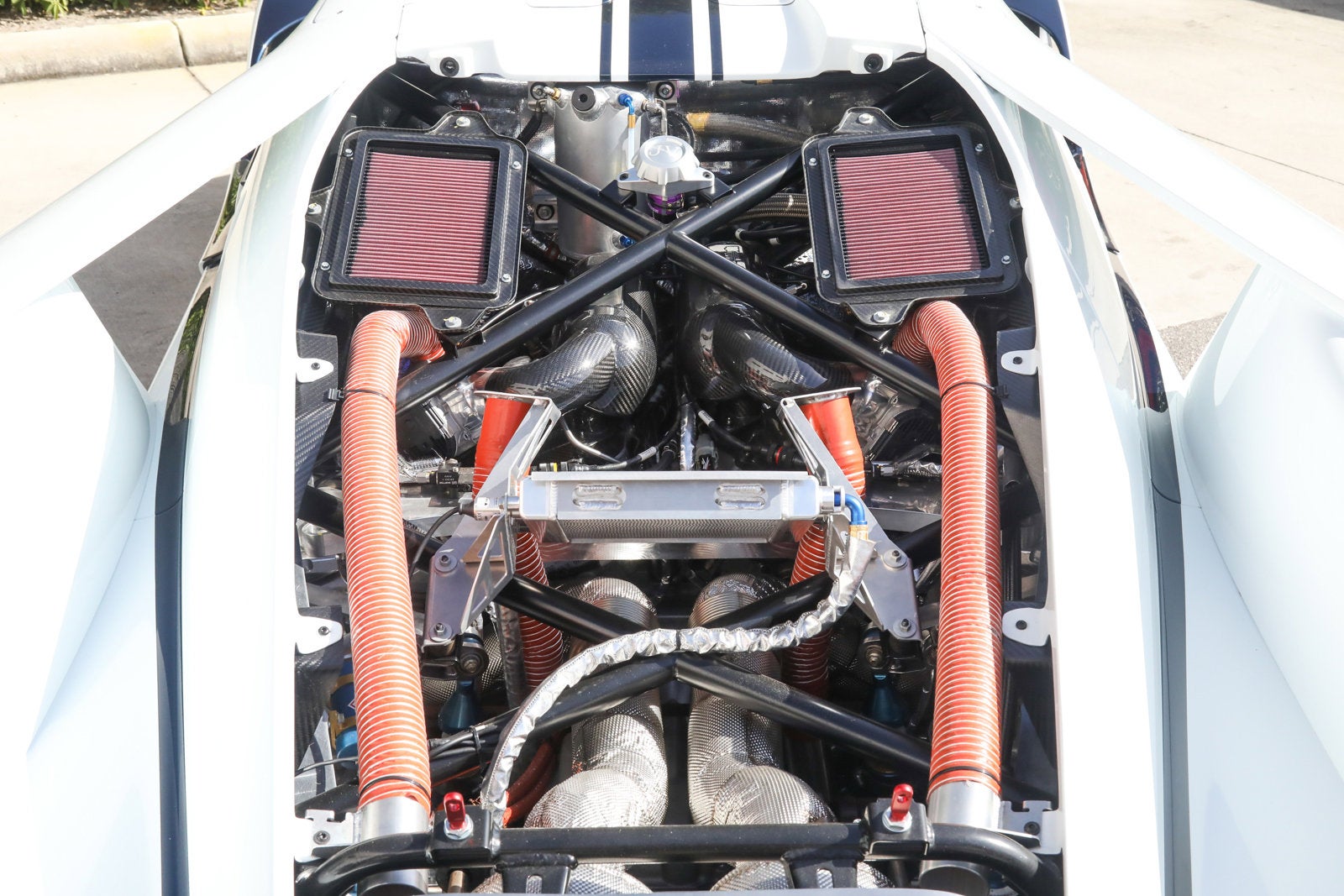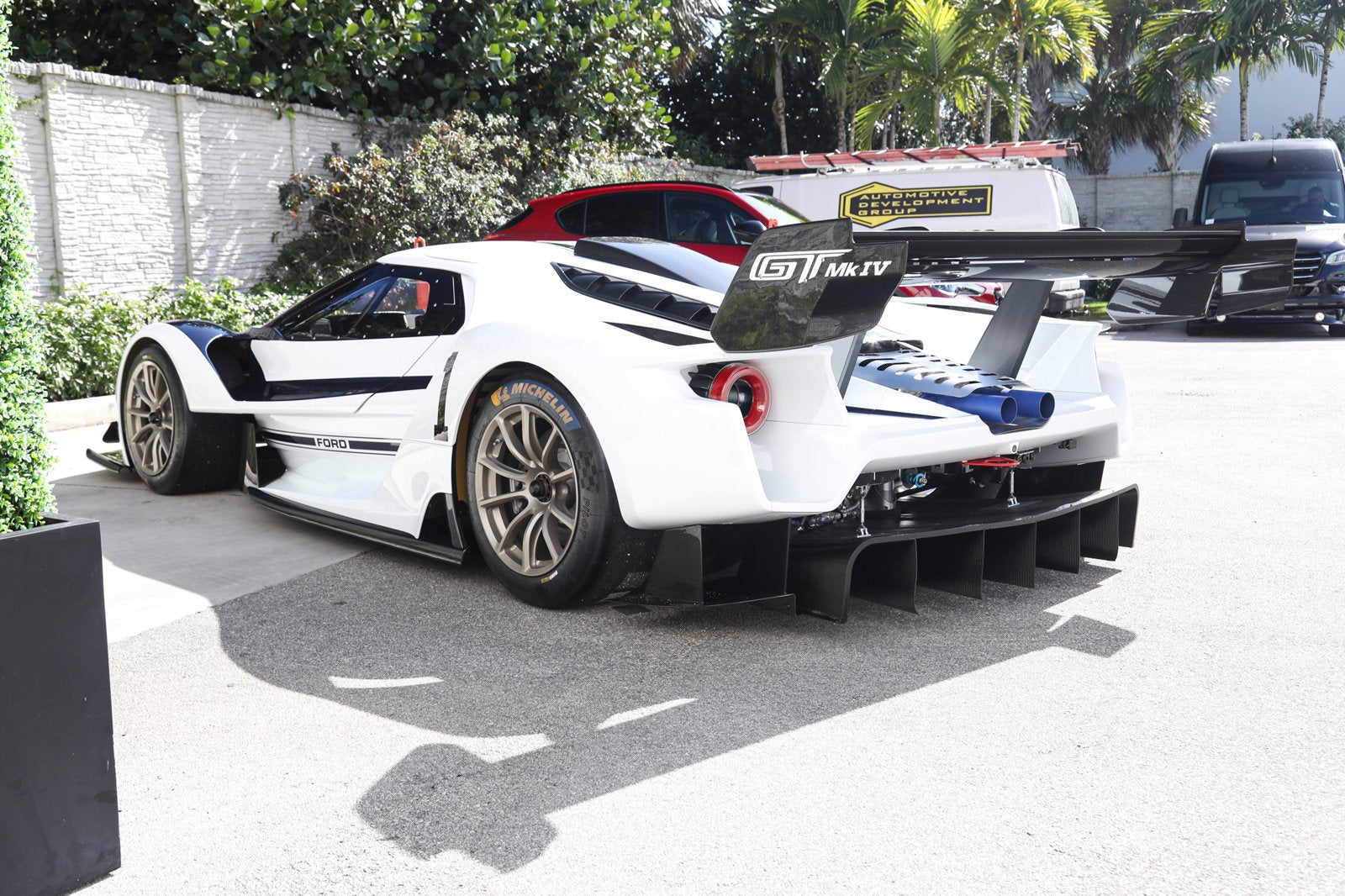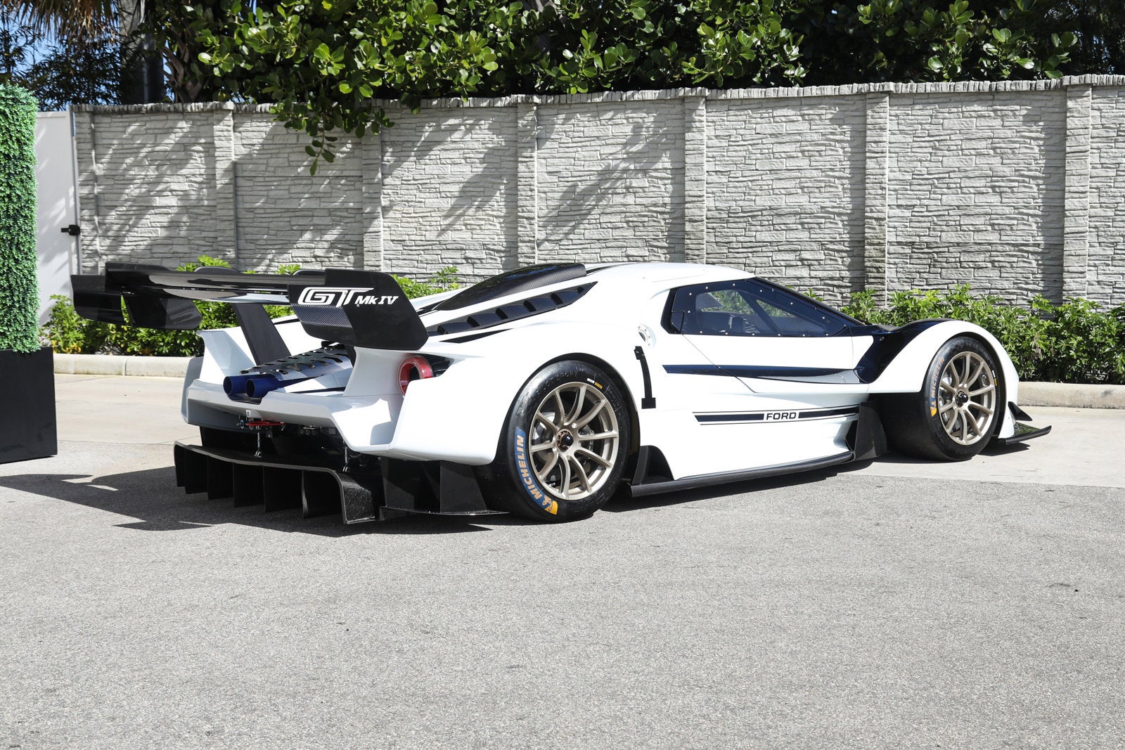 Ford GT Mk IV - FOR TRACK USE ONLY - RARE OPPORTUNITY TO OWN A PART OF FORD MOTORSPORT HISTORY - Ferrari Maserati Alfa Romeo of Fort Lauderdale is proud to present this incredible Ford GT Mk IV. Finished in Frozen White over Blue, the Ford GT Mk IV has only 3 miles on the odometer. It has been titled by one previous owner and is in like-new condition. - Chassis no. 001 of only 67 built - Special one-off livery modeled after J-1, the first J-car prototype - Blue powder coated exhaust inspired by J-1 - Gold plated radiators inspired by J-1 - Hampton Gold 18-inch centerlock wheels - Bespoke blue leather interior with Silver grommets - Twin-turbocharged 3.8L/800 HP EcoBoost V-6 engine - Xtrac 7-speed sequential transaxle - The fastest, most extreme Ford GT variant ever built - MSRP of $1,806,100 - Over $100,000 USD in bespoke options - Complete with Manual, Bill of Sale, Invoices As production of the third-generation Ford GT came to an end, the automaker gave it a proper swan song: a nod to the 1967 GT Mk IV race car that won the famed 24 hours of Le Mans in the hands of Dan Gurney and A.J. Foyt. Only 67 hand-built cars were produced, and only offered to their most high-profile customers. Representing the ultimate and most extreme track-only Ford GT ever, the new Ford GT Mk IV by Ford Performance and Multimatic is a radically advanced supercar delivering max performance with a specially engineered twin-turbo EcoBoost engine targeting more than 800 HP, a race transmission, a carbon fiber long tail body, plus Multimatics Adaptive Spool Valve (ASV) Dampers and unique suspension. This very special 2023 Ford GT Mk IV offered for sale is Chassis No. 001, the first delivered example finished in a special one-off livery to commemorate the prototype J-car. J-1 was the first of 12 J cars produced and used the new bonded-aluminum honeycomb chassis, which was roughly half the weight of the race-winning Mk II. This new production method helped secure the 1967 Le Mans win with Dan Gurney and AJ Foyt piloting J-5 to victory. When specifying this particular GT MK IV offered here, the goal was to pay homage to J-1 and incorporate some unique design elements from the original, starting with the bespoke livery, which features the Frozen White paint accented with a blue nose, longitudinal roof stripe, door stripes and roundels, just like the paint scheme on J-1. The wheels and side radiators have been painted gold as well. The interior was specified with special blue leather seats with silver grommets, just as the originals had. The two large exhaust tips exiting the rear are powder-coated blue, reminiscent of the original. These unique touches are custom to this example and are not seen on any other Mk IV in production. These options were an additional $100,000 USD over the base MSRP for a total price of $1,806,100. Having never been driven since delivery, this example is an incredible opportunity to own the first, Chassis No. 001, a one-off example of the fastest GT ever built, and its sure to be a true collector's item in the years to come. There is only one, No. 1, and this is it.