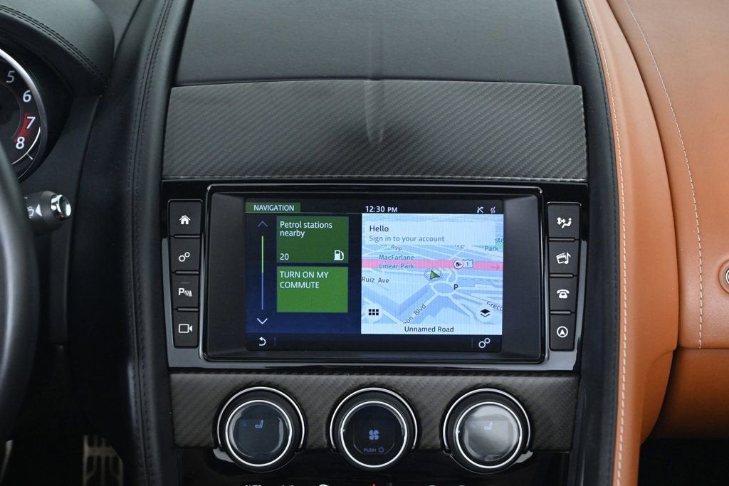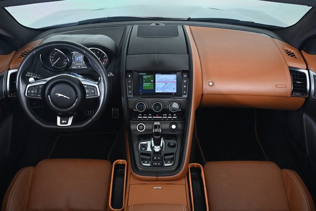 KEY FEATURES AND OPTIONS Comes equipped with: Air Conditioning, Navigation System. This Jaguar F-TYPE also includes Clock, Climate Control, Power Passenger Seat, Tachometer, Memory Seat Position, Digital Info Center, Cruise Control, Tilt Steering Wheel, Power Steering, Telescoping Steering Wheel, Power Windows, Steering Radio Controls, Power Mirrors, Leather Steering Wheel, Leather Shifter, Driver Airbag, ABS Brakes, Fog Lights, Passenger Airbag, Traction Control, Intermittent Wipers, Side Airbags, Dynamic Stability, Keyless Entry, Rear Defogger, Security System, AM/FM, CD Player, Satellite Radio, Rear Spoiler, Center Arm Rest, Cup Holders, Vanity Mirrors, Center Console, Heated Mirrors, Rear Fog Lamps, Daytime Running Lights, Parking Sensors, Reverse Camera, Roll Stability Control, Tire Pressure Monitor, Carpeted Floor Mats, Overhead Console, Aux. Audio Input, HD Radio. Air Conditioning, Climate Control, Cruise Control, Power Steering, Power Windows, Power Mirrors, Leather Steering Wheel, Leather Shifter, Power Passenger Seat, Memory Seat Position, Clock, Tachometer, Digital Info Center, Tilt Steering Wheel, Telescoping Steering Wheel, Steering Wheel Radio Controls, Driver Airbag, Passenger Airbag, Side Airbags, Keyless Entry, Security System, ABS Brakes, Traction Control, Dynamic Stability, Rear Defogger, Fog Lights, Intermittent Wipers, AM/FM, CD Player, Alloy Wheels, Leather Interior Surface, Wheels: 20 5 Spoke Style 5060, Performance Front Seats, Windsor Leather Seating Surfaces, Radio: Meridian 380W Audio System, 4-Wheel Disc Brakes, Emergency communication system: InControl Protect, Exterior Parking Camera Rear, 10 Speakers, Auto-dimming Rear-View mirror, Front beverage holders, Turn signal indicator mirrors, Telescoping steering wheel, Steering wheel memory, Sport steering wheel, Rear anti-roll bar, Rain sensing wipers, Radio data system, Power driver seat, Power door mirrors, Power convertible roof, Passenger vanity mirror, Passenger door bin, Overhead console, Outside temperature display, Occupant sensing airbag, Low tire pressure warning, Integrated roll-over protection, Illuminated entry, Heated door mirrors, Headlight cleaning, Glass rear window, Fully automatic headlights, Front reading lights, Front anti-roll bar, Four wheel independent suspension, Dual front side impact airbags, Dual front impact airbags, Driver vanity mirror, Driver door bin, Delay-off headlights, DVD-Audio, Convertible roof wind blocker, Convertible roof lining, Bumpers: body-color, Brake assist, Block heater, Automatic temperature control, Auto-dimming door mirrors, Adaptive suspension, Spoiler, Rear Parking Sensors, Navigation System, Front Center Armrest, Sport Plus Seats Aux. Audio Input, Carpeted Floor Mats, Center Arm Rest, Center Console, Cup Holders, Daytime Running Lights, Heated Mirrors, Navigation System, Overhead Console, Parking Sensors, Rear Fog Lamps, Rear Spoiler, Rear Spoiler, Reverse Camera, Roll Stability Control, Tire Pressure Monitor, Vanity Mirrors - Contact Alvaro Uribe at 786-628-7606 or auribe@ferrariofmiami.com for more information. -