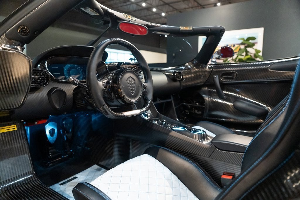 Ferrari of Lake Forest is proud to present this 2021 Koenigsegg Regera Finished in Blue Horizon Metallic and Polished Carbon. This Koenigsegg Regera is Optionally Equipped with 5 Year Extended Warranty and Service Package, Head Lamp Hardware in Black anodized, Key Remotes in Clear Carbon and Black Leather, Forged Web Wheels, Draco Red Pearl Brake Calipers, Ghost Package in Clear Carbon, Rear Wing in Clear Carbon, Roof Glass Surround in Clear Carbon, Environmental Power Upgrade, Stripe in Anthracite Metallic, Side Air Intakes in Clear Carbon, Inner Rocker in Polished Carbon, Wing Mirrors in Polished Carbon, Dashboard in Matt Carbon Fiber, Center Console in Matt Carbon Fiber, Seat Goggles in Black Aluminum, Main Interior Color in Desiato Leather, Second Interior Color in Glacier Leather, Stitching Pattern in Diamond, French Cross Stitching, Stitching Color in Blueberry, Steering Wheel Grip in Desiato, Luggage Space in Black Leather, Door Center in Polished Carbon, Demist and Upper Door in Polished Carbon.