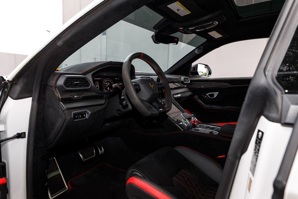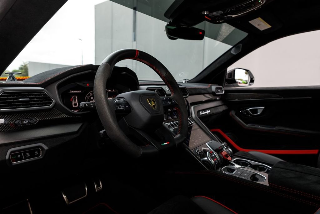 The 2024 Lamborghini Urus Performante takes the already outrageous Urus platform and sharpens it into a true driver-focused Super SUV, delivering a more aggressive, lighter, and track-inspired experience. Powered by a twin-turbocharged 4.0L V8 producing 657 horsepower and 627 lb-ft of torque, it rockets from 0-60 mph in just about 3.1 seconds, putting it firmly in supercar territory despite its SUV practicality. What sets the Performante apart is its focus on performance over comfort - featuring weight reduction, increased downforce, recalibrated suspension, and a more rear-biased driving feel that makes it significantly more engaging on the road or track. Inside, it maintains Lamborghinis signature blend of luxury and aggression with Alcantara, carbon fiber accents, and cutting-edge tech. The Urus Performante isn't just an SUV, it's one of the most extreme and exhilarating performance vehicles in its class, built for those who want supercar emotion with everyday versatility.