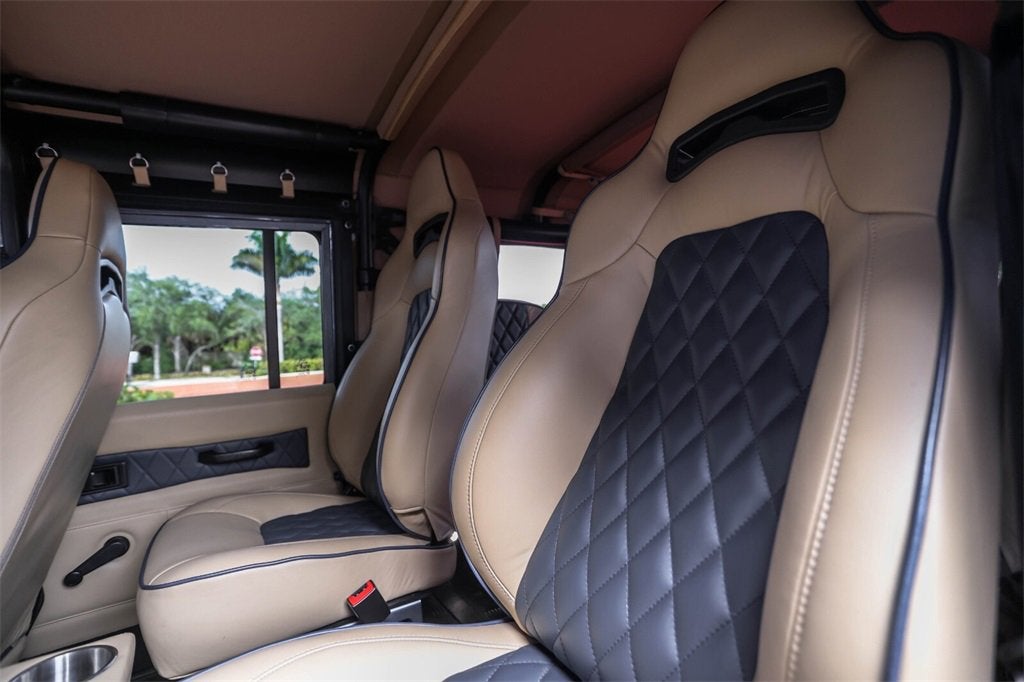 Ferrari of Naples is thrilled to present this bespoke 1998 Land Rover Defender 110, expertly re-engineered and hand-built by E.C.D. Automotive Design, one of the worlds premier custom Defender restomod builders. Finished in striking Byron Blue Metallic over a richly appointed tan leather interior, this Defender 110 combines timeless British design with modern performance and craftsmanship that far exceeds what the factory ever offered. ECD builds are not mere restorations they are fully reimagined classics, with frame-off restoration, bespoke exterior and interior finishes, modern drivetrain, and performance components chosen with precision to elevate both capability and comfort. Each vehicle is designed in concert with its owner, resulting in unique one-of-one creations that stand apart from stock vintage Defenders. Under the hood, this Defender 110 features a Chevrolet 6.2L LS3 V8 engine a proven and robust powerplant delivering strong torque, instant throttle response, and modern engine character. E.C.D. often pairs this LS3 V8 with a smooth automatic transmission and complementary performance hardware to modernize drivability while retaining classic Defender ruggedness. Modern upgrades typically include upgraded suspension components, refined braking systems, performance exhaust, and contemporary drivetrain mods to ensure this classic 4 4 performs beautifully on both road and trail. Whether cruising through town or exploring rugged terrain, this restomod blends heritage presence with thrilling power and everyday usability. At Ferrari of Naples, we offer an exclusive selection of luxury and performance vehicles, backed by unparalleled customer service. Our team is dedicated to providing a seamless and personalized buying experience, ensuring that each vehicle meets the highest standards of quality and performance. Phone: (239) 256-1400 Email: smora@newcountry.com Address: 11291 Tamiami Trail N, Naples, FL 34110 Please call or email today to schedule your private viewing or request a personalized video tour of this exceptional 1998 Land Rover Defender 110 by E.C.D. Automotive Design.