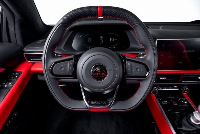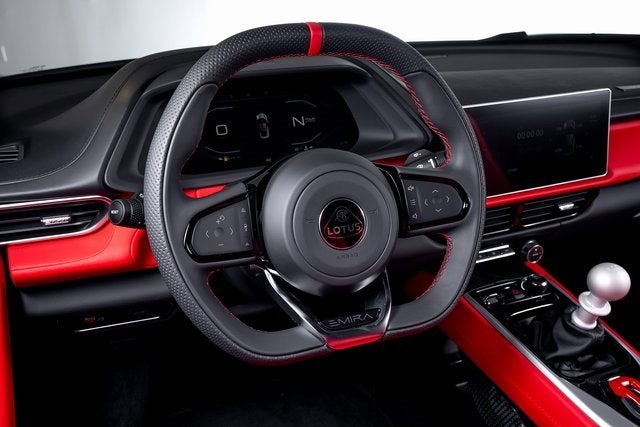 Ferrari of Long Island is proud to present this exceptional Lotus Emira V6 SE, finished in Cosmos Black over a striking Red leather interior. With an original MSRP of $119,700, this Emira V6 SE represents the perfect balance of analog driving purity and modern refinement, a true drivers car in every sense. At its core, this example is equipped with a 6-speed manual transmission, delivering an engaging and tactile connection between driver and machine. Paired with Touring Suspension, the Emira offers a finely tuned balance of everyday comfort and precise chassis feedback, staying true to Lotus legendary handling DNA. Lightweight 20-inch forged ultra-lightweight Gloss Black Prism wheels reduce unsprung mass for enhanced responsiveness, while red brake calipers provide confident stopping power and a bold visual contrast. The Lower Black Pack further sharpens the cars aggressive stance, complemented by distinctive yellow and black nose badging and matching center caps. Inside, the cabin reflects the Emiras focused yet refined character. A black leather steering wheel with red Top Dead Center marker and contrast stitching emphasizes its motorsport inspiration, while sport pedals reinforce the performance-oriented environment. An Alcantara headliner adds a premium, driver-focused touch, and black seat belts maintain the cohesive, purposeful aesthetic against the vibrant red leather interior. This Lotus Emira V6 SE offers an increasingly rare combination of manual transmission engagement, lightweight engineering, and modern design making it a compelling choice for enthusiasts seeking an authentic sports car experience. Please contact us for more information or to schedule a viewing.