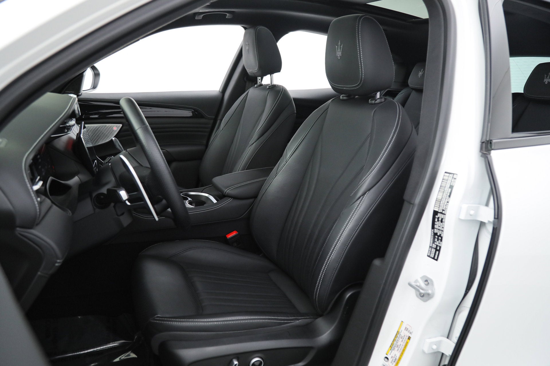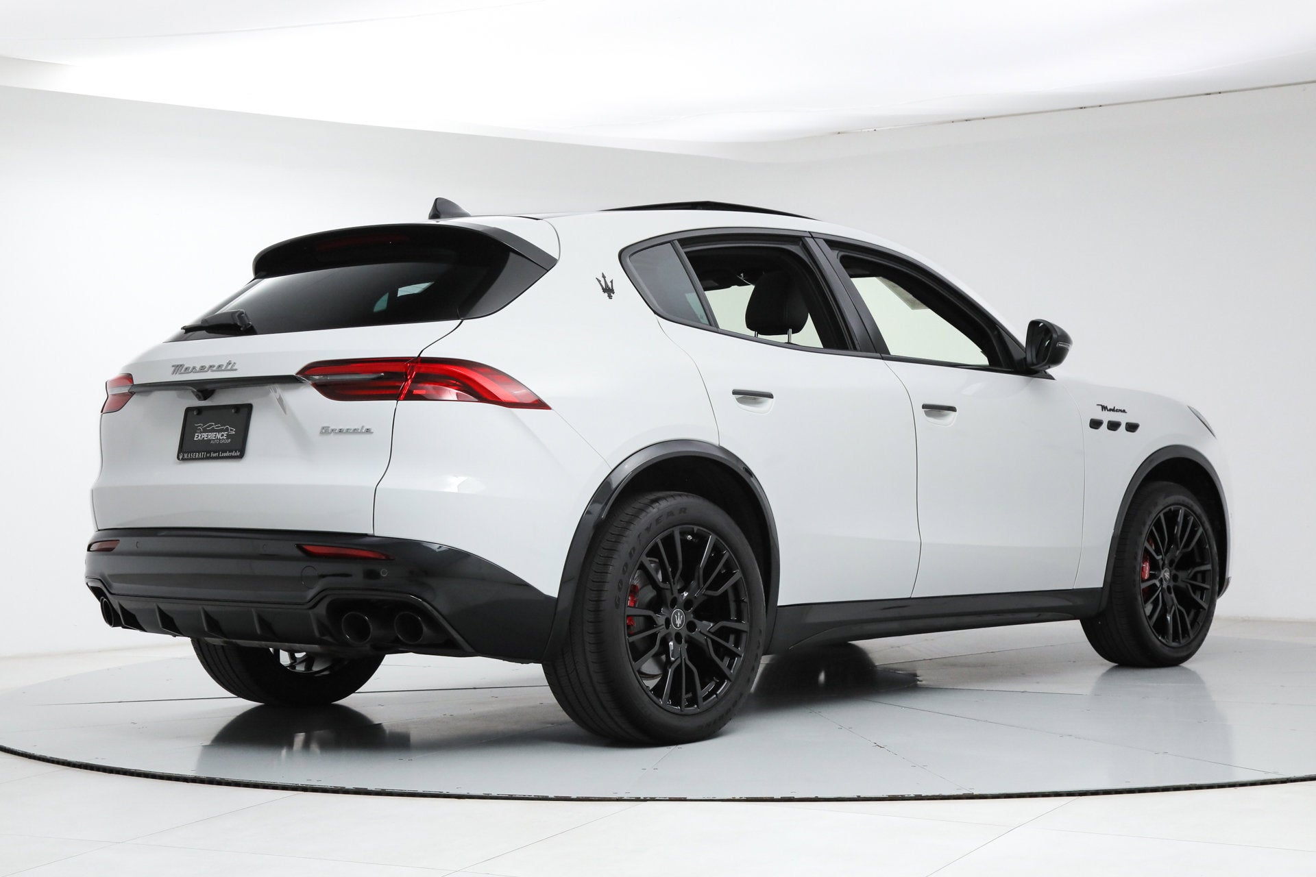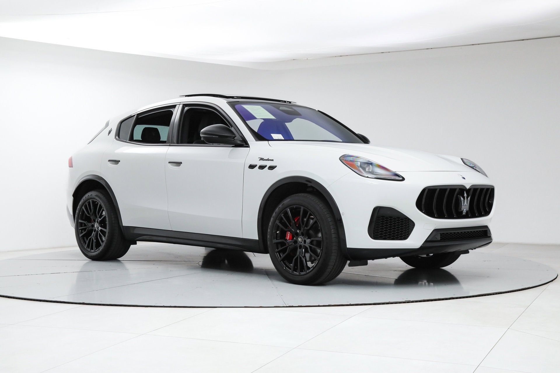 - Black Piano Trim ($700) The 2025 Grecale Modena is built as standard with Q4 All-Wheel-Drive, a 325 HP Turbocharged Engine, Premium Leather Interior, Tri-Zone Climate Control, Configurable Ambient Lighting, Black Body Kit, Dark Exterior Accents, 20-inch Wheels, Panoramic Sunroof, Active Blind Spot Assist, Lane Keeping Assist, Adaptive Cruise Control with Stop & Go, F/R Parking Sensors, Automated Emergency Braking, Drowsy Driver Detection, Selectable Drive Modes, Full LED Headlights and Taillights, Aluminum Front Door Sills, Puddle Lights, Auto-Dimming Power-Folding Mirrors, Power Liftgate with Keyless Opening, Quad Exhaust with Sport Valves, 12-Way Power Front Luxury Seats, Heated Front Seats, Open Pore Radica Wood Trim, 12.3-inch Full Digital Instrument Cluster, Rain Sensing Wipers, HomeLink, Navigation, Sonus Faber 860 Watt 14-Speaker Audio System, HD and Satellite Radio, Apple CarPlay, Android Auto, Alexa Voice Assistant, Reverse Camera, Alarm System and more. If you are in the market for a Maserati Grecale Modena, please call or email us today.