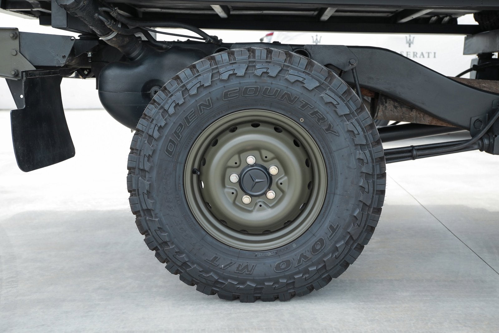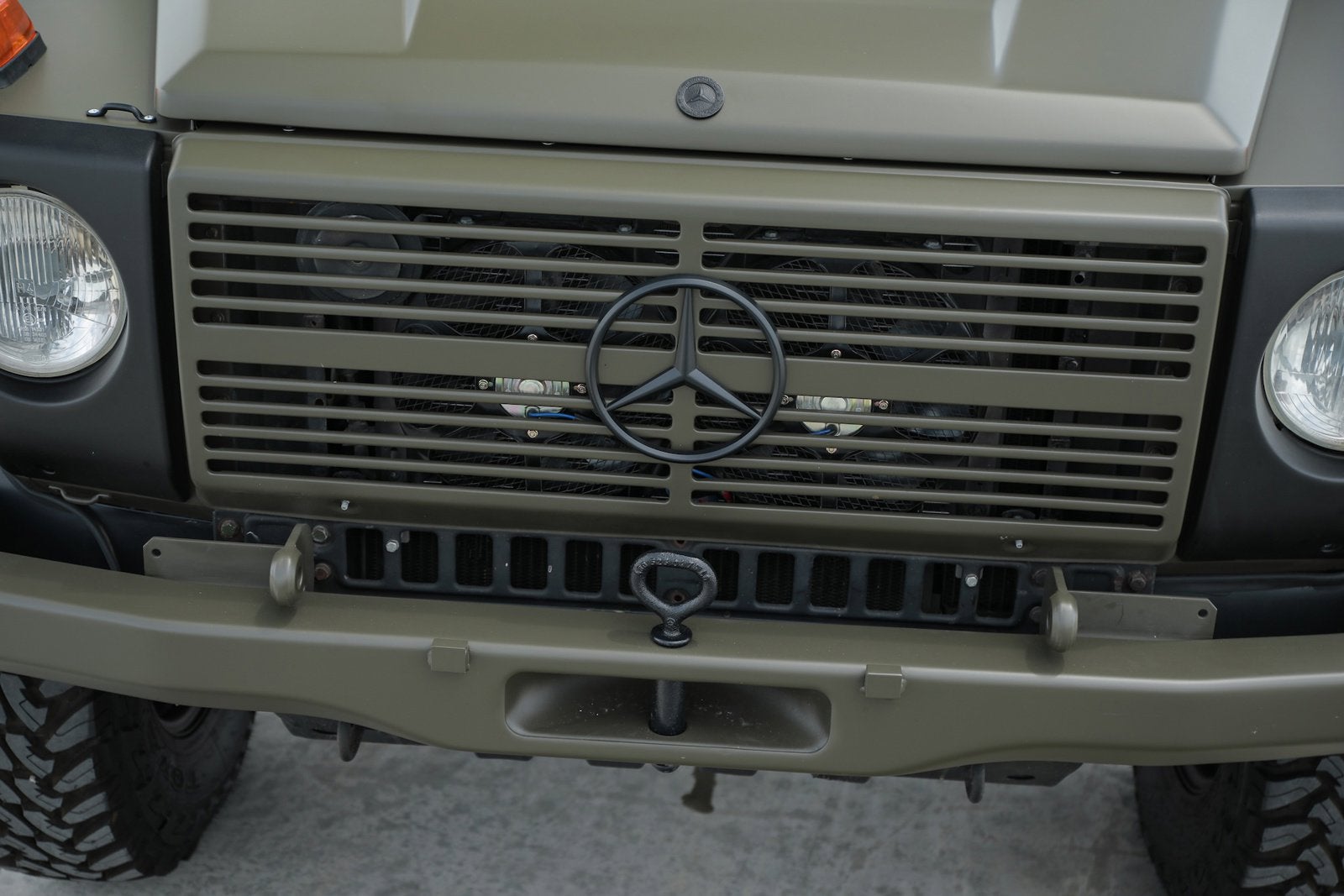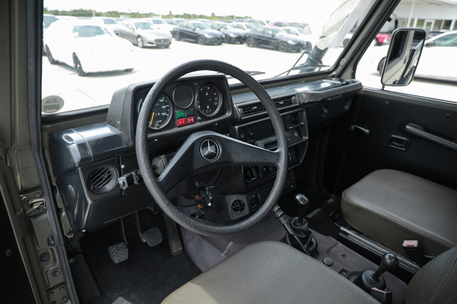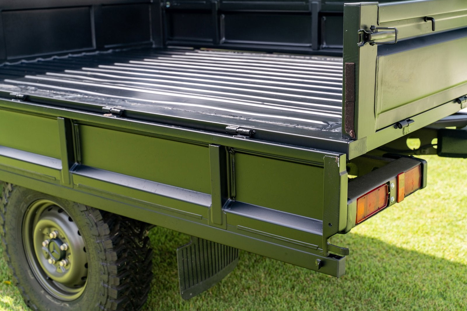 1994 Mercedes-Benz 290 GD Pickup Chassis No. WDB46145917098287 - Rarely seen 290 GD Pickup; imported into the U.S. in 2020 - Upgraded 2.9-liter turbo-diesel engine fitted with non-standard five-speed gearbox - Practical extras include spare wheel, fuel can, roof rack and snorkel - Links to driving and walkaround videos: https://youtu.be/GxsOBAyeKco https://youtu.be/47thpeeacEE Built on the W461 platform of the popular Mercedes-Benz G-Wagen, the 290 GD Pickup was produced in low numbers by the German marque between 1992 to 1997. The pickup variant of the truck reflects the roots of the G-Class, the model line that was first produced in 1979 as a no-frills, rugged off-roader, before gaining popularity as a luxury vehicle. Stripped back for functionality with its open cargo load area, the 290 GD Pickup is also highly versatile on tricky terrain thanks to its four-wheel drive, low gearing, and locking differential over both axles. This example, with its single cab finished in matte dark green and the fold-down truck bed presented in black, is understood to have been imported into the United States from Belgium in 2020. The current specification suggests slight modifications from the manufacturer build, with this truck fitted with a turbocharged diesel powertrain. The 290 GDs of the era would have been powered from the factory by a non-turbo, 2.9-liter diesel unit. In addition, the Mercedes-Benz has received an upgrade from its standard four-speed gearbox to five-speed, with overdrive transmission, and is equipped with air conditioning, another non-standard feature. A spare wheel and metal jerry can are fixed to the rear of the cab, also showing a roof rack on top, and a snorkel around the front to aid air supply to the engine if wading through water. The steel wheels are painted to match the color of the cab and ride on knobby Toyo Open Country tires. The load bay can completely fold on three sides to serve as a flat bed. Inside the cab, the truck sports refreshingly simple design; wind-up windows either side and a sliding rear window let in light, the seats are finished in a shade of green to match the exterior, and a low-range, floor-mounted gear lever works alongside the manual transmission stick. Please contact us to view this vehicle or for more information.