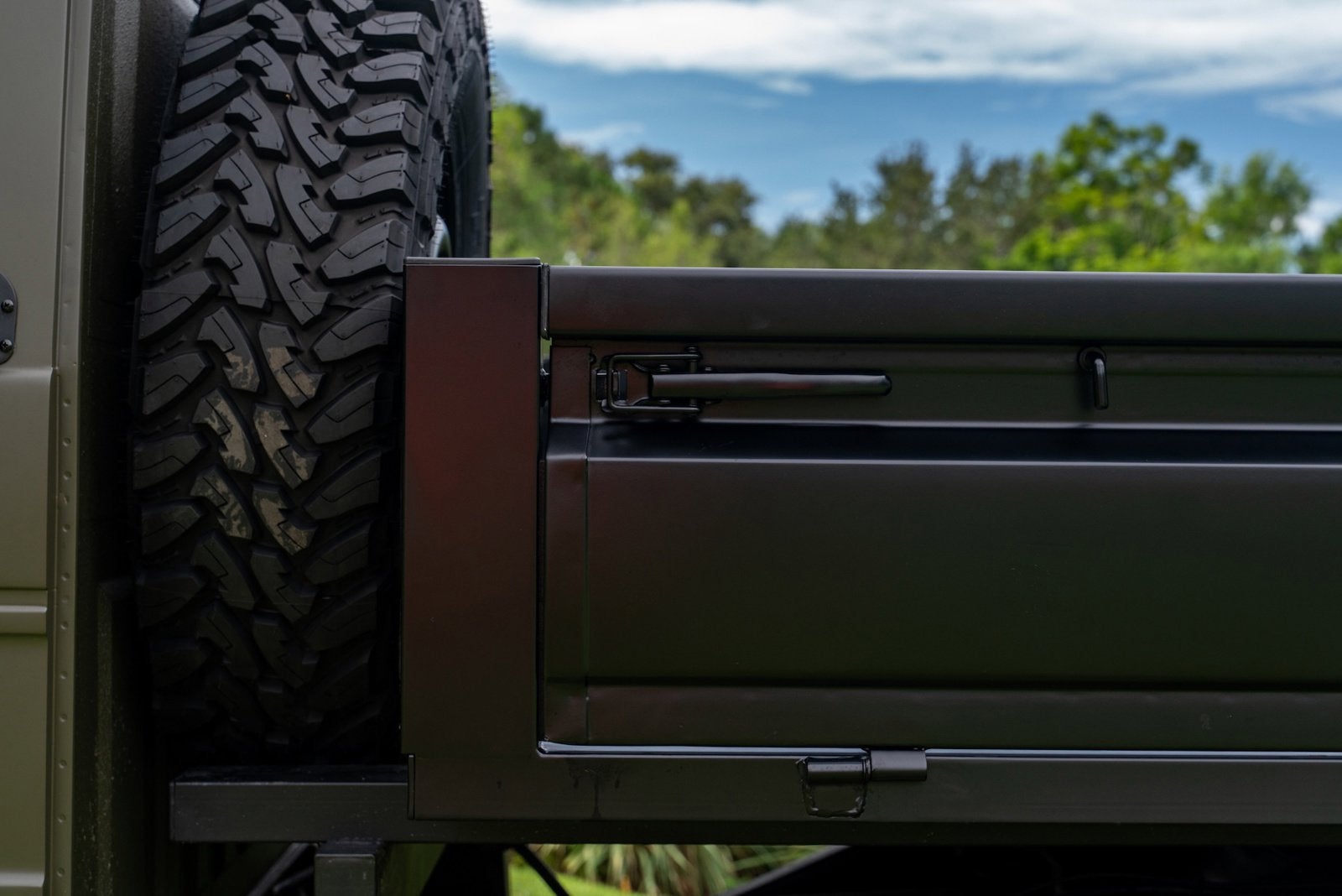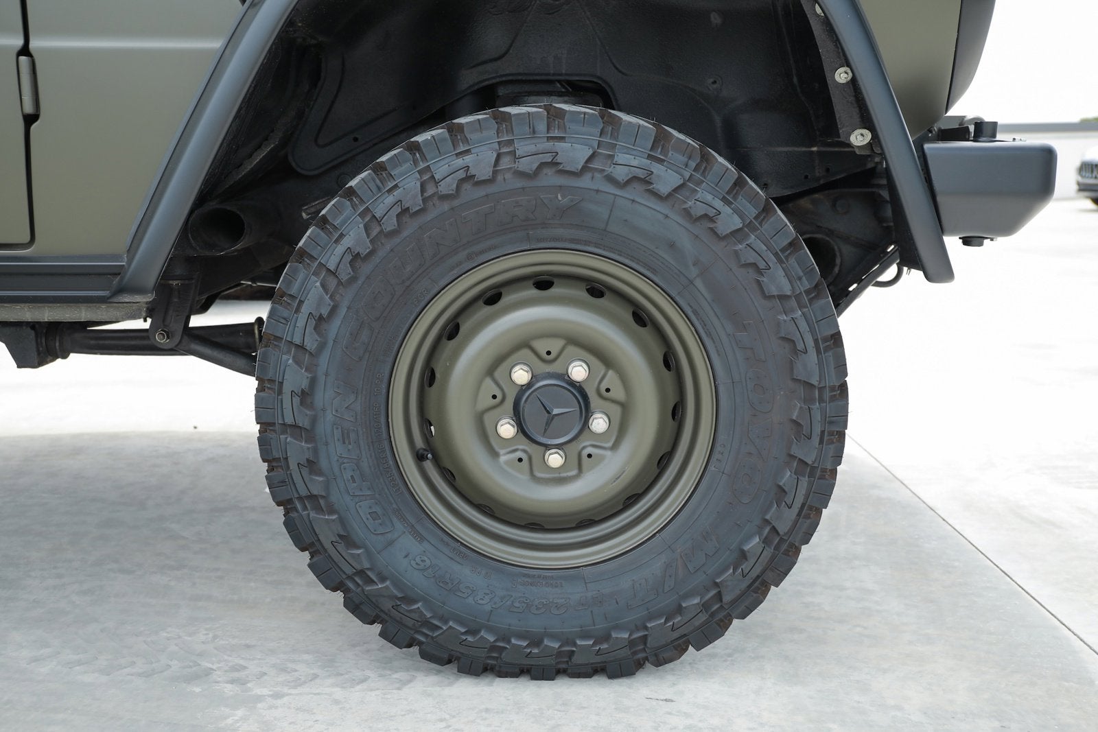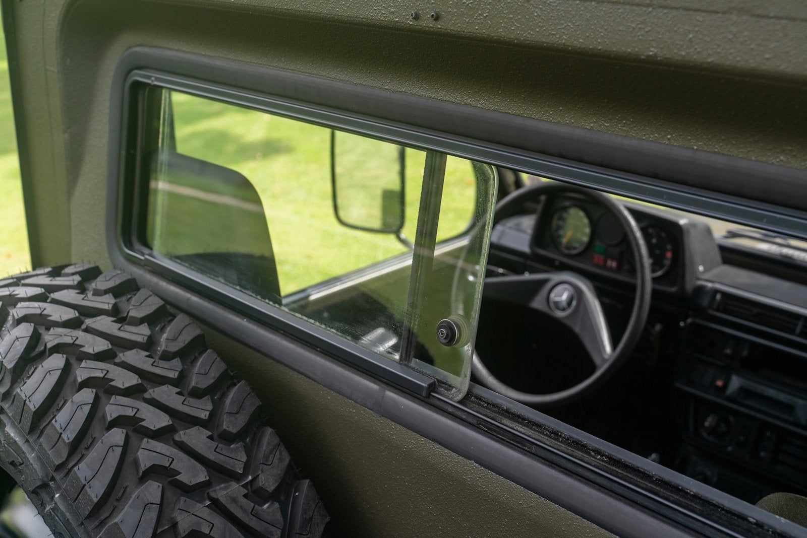 1994 Mercedes-Benz 290 GD Pickup Chassis No. WDB46145917098287 - Rarely seen 290 GD Pickup; imported into the U.S. in 2020 - Upgraded 2.9-liter turbo-diesel engine fitted with non-standard five-speed gearbox - Practical extras include spare wheel, fuel can, roof rack and snorkel - Links to driving and walkaround videos: https://youtu.be/GxsOBAyeKco https://youtu.be/47thpeeacEE Built on the W461 platform of the popular Mercedes-Benz G-Wagen, the 290 GD Pickup was produced in low numbers by the German marque between 1992 to 1997. The pickup variant of the truck reflects the roots of the G-Class, the model line that was first produced in 1979 as a no-frills, rugged off-roader, before gaining popularity as a luxury vehicle. Stripped back for functionality with its open cargo load area, the 290 GD Pickup is also highly versatile on tricky terrain thanks to its four-wheel drive, low gearing, and locking differential over both axles. This example, with its single cab finished in matte dark green and the fold-down truck bed presented in black, is understood to have been imported into the United States from Belgium in 2020. The current specification suggests slight modifications from the manufacturer build, with this truck fitted with a turbocharged diesel powertrain. The 290 GDs of the era would have been powered from the factory by a non-turbo, 2.9-liter diesel unit. In addition, the Mercedes-Benz has received an upgrade from its standard four-speed gearbox to five-speed, with overdrive transmission, and is equipped with air conditioning, another non-standard feature. A spare wheel and metal jerry can are fixed to the rear of the cab, also showing a roof rack on top, and a snorkel around the front to aid air supply to the engine if wading through water. The steel wheels are painted to match the color of the cab and ride on knobby Toyo Open Country tires. The load bay can completely fold on three sides to serve as a flat bed. Inside the cab, the truck sports refreshingly simple design; wind-up windows either side and a sliding rear window let in light, the seats are finished in a shade of green to match the exterior, and a low-range, floor-mounted gear lever works alongside the manual transmission stick. Please contact us to view this vehicle or for more information.