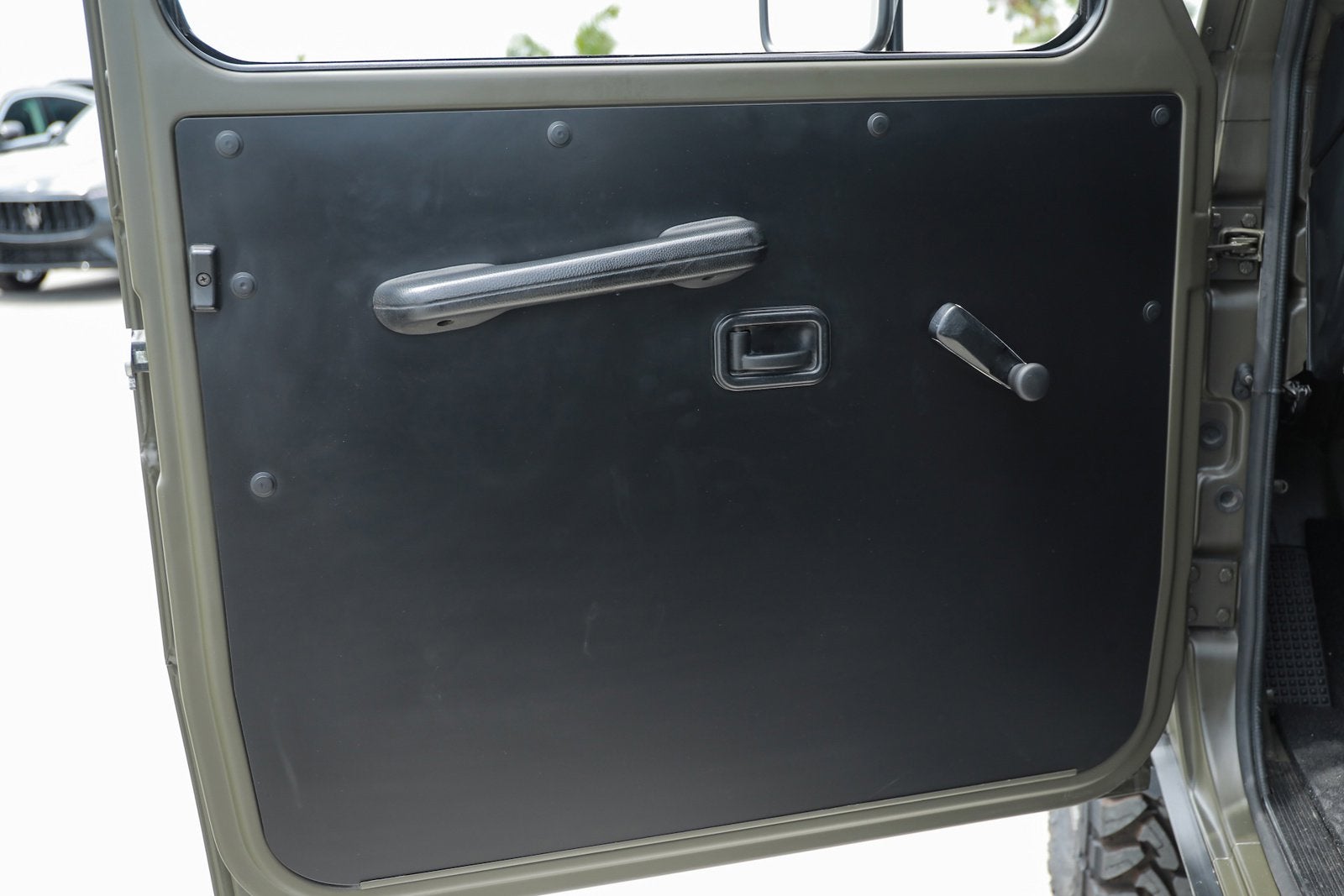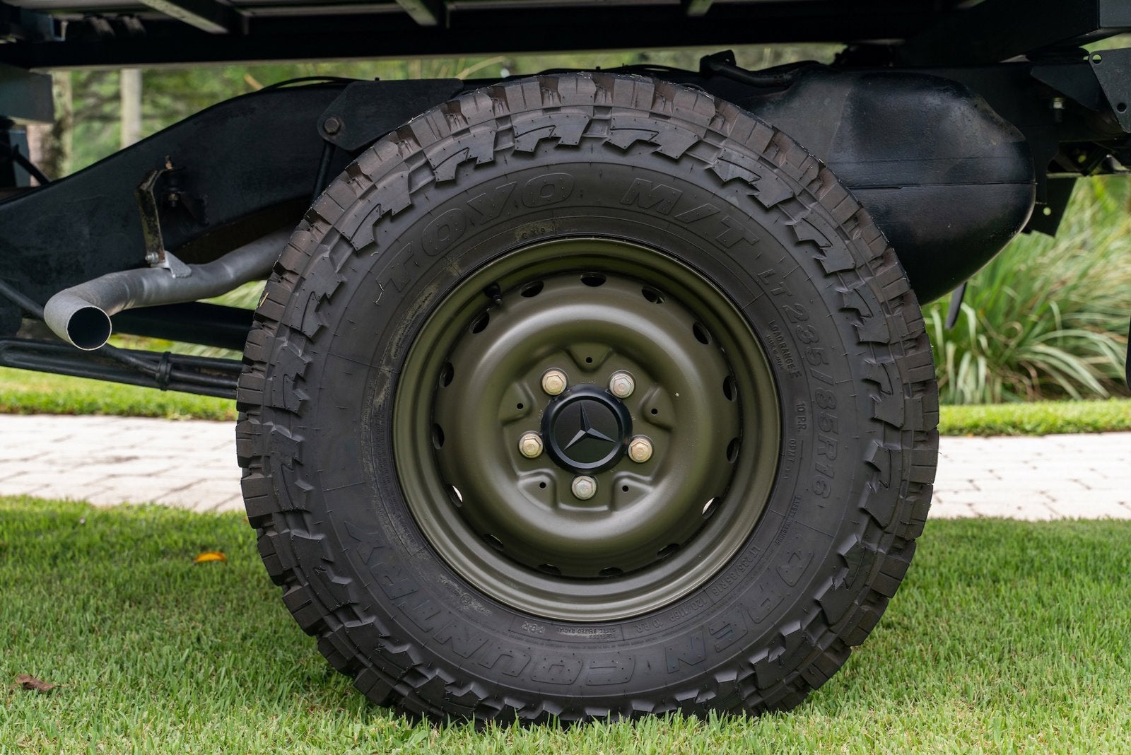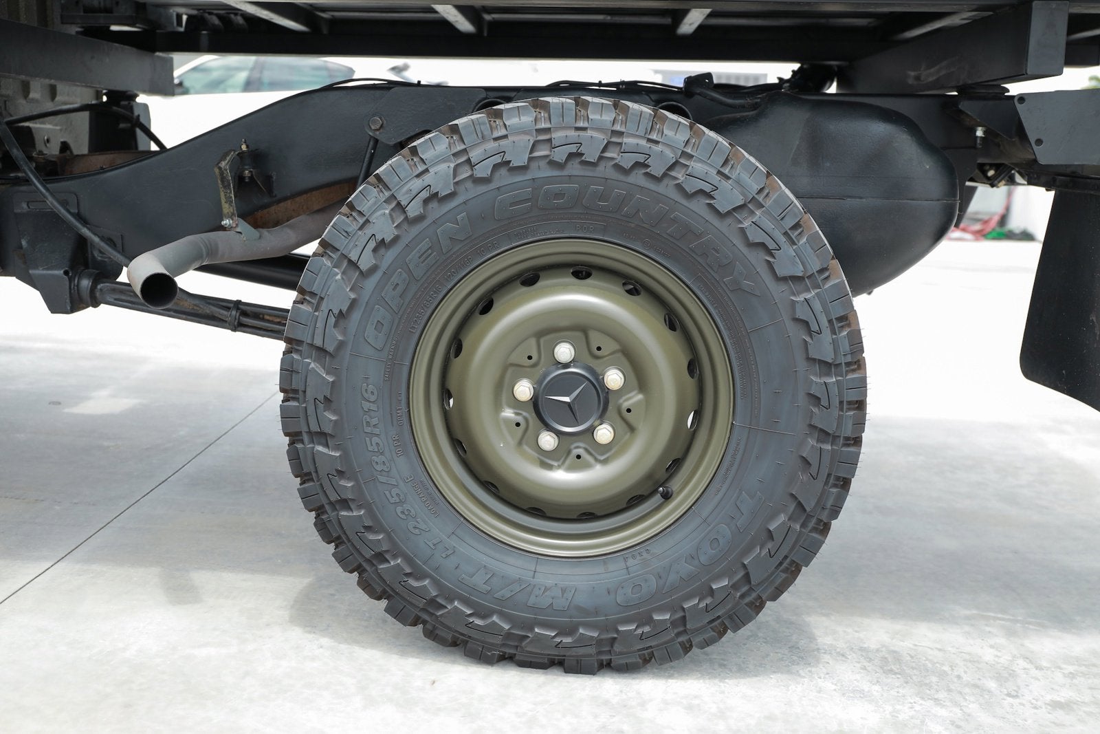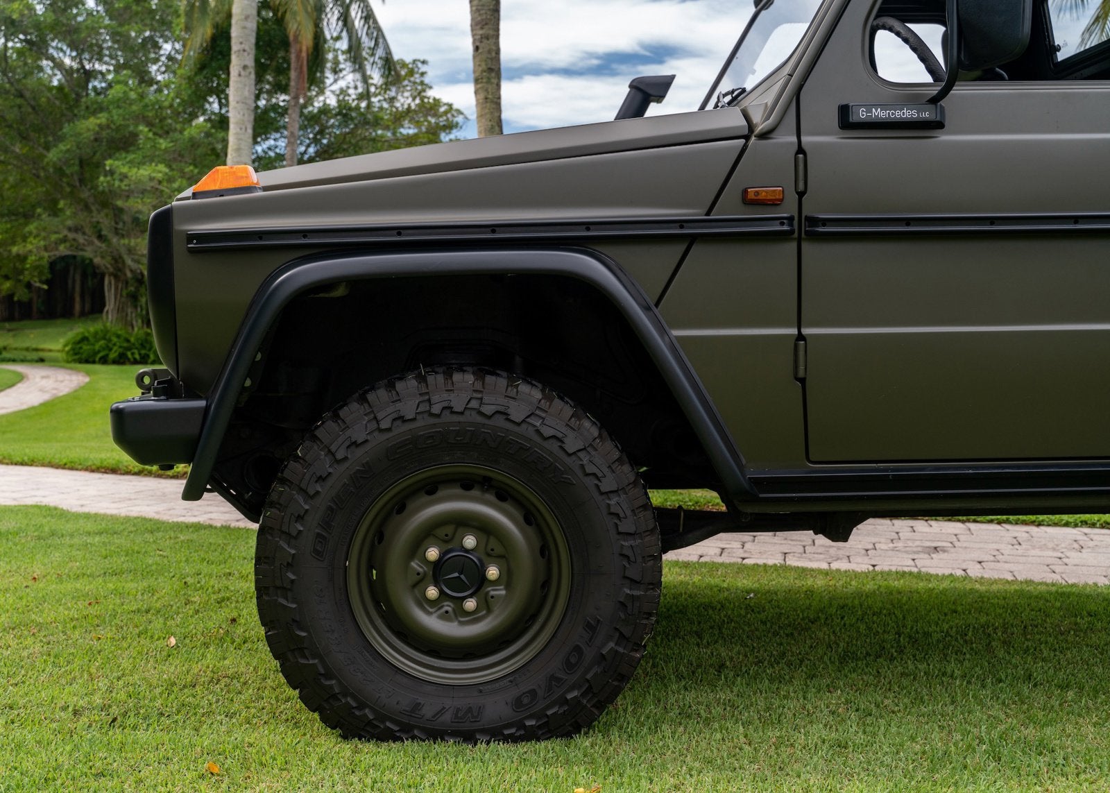 1994 Mercedes-Benz 290 GD Pickup Chassis No. WDB46145917098287 - Rarely seen 290 GD Pickup; imported into the U.S. in 2020 - Upgraded 2.9-liter turbo-diesel engine fitted with non-standard five-speed gearbox - Practical extras include spare wheel, fuel can, roof rack and snorkel - Links to driving and walkaround videos: https://youtu.be/GxsOBAyeKco https://youtu.be/47thpeeacEE Built on the W461 platform of the popular Mercedes-Benz G-Wagen, the 290 GD Pickup was produced in low numbers by the German marque between 1992 to 1997. The pickup variant of the truck reflects the roots of the G-Class, the model line that was first produced in 1979 as a no-frills, rugged off-roader, before gaining popularity as a luxury vehicle. Stripped back for functionality with its open cargo load area, the 290 GD Pickup is also highly versatile on tricky terrain thanks to its four-wheel drive, low gearing, and locking differential over both axles. This example, with its single cab finished in matte dark green and the fold-down truck bed presented in black, is understood to have been imported into the United States from Belgium in 2020. The current specification suggests slight modifications from the manufacturer build, with this truck fitted with a turbocharged diesel powertrain. The 290 GDs of the era would have been powered from the factory by a non-turbo, 2.9-liter diesel unit. In addition, the Mercedes-Benz has received an upgrade from its standard four-speed gearbox to five-speed, with overdrive transmission, and is equipped with air conditioning, another non-standard feature. A spare wheel and metal jerry can are fixed to the rear of the cab, also showing a roof rack on top, and a snorkel around the front to aid air supply to the engine if wading through water. The steel wheels are painted to match the color of the cab and ride on knobby Toyo Open Country tires. The load bay can completely fold on three sides to serve as a flat bed. Inside the cab, the truck sports refreshingly simple design; wind-up windows either side and a sliding rear window let in light, the seats are finished in a shade of green to match the exterior, and a low-range, floor-mounted gear lever works alongside the manual transmission stick. Please contact us to view this vehicle or for more information.