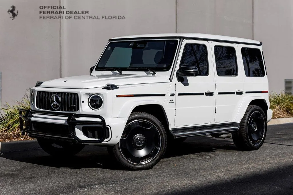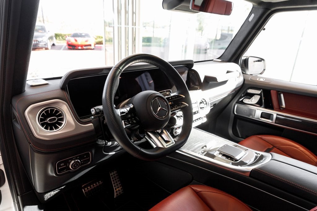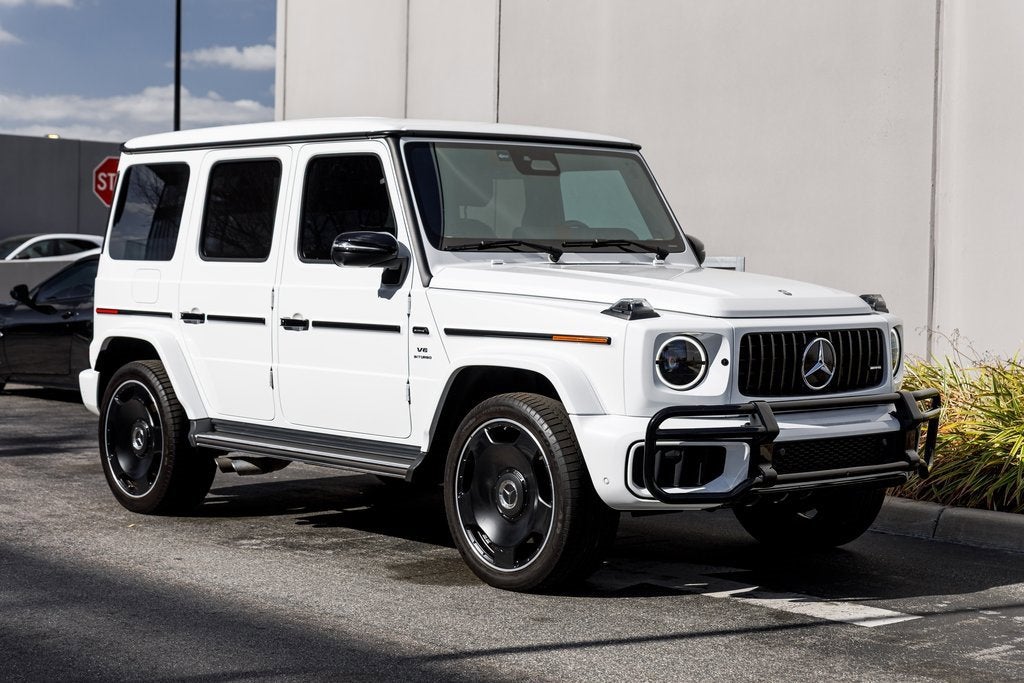 The 2025 Mercedes-Benz G-Class G 63 AMG 4MATIC is where iconic design meets uncompromising performance. Finished in a striking White exterior over a bold Bengal Red interior, this G 63 makes a statement before it even starts. Under the hood, the handcrafted AMG 4.0L V8 bi-turbo engine delivers exhilarating power, paired with AMG Performance 4MATIC all-wheel drive for confident control in any environment - on-road or off. Inside, the Bengal Red cabin transforms the legendary G-Wagon into a true luxury experience, blending premium materials, advanced technology, and unmistakable presence. From its commanding driving position to its signature exhaust note, the G 63 offers a rare combination of heritage, capability, and modern refinement - making it one of the most sought-after luxury performance SUVs on the road today.