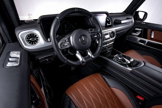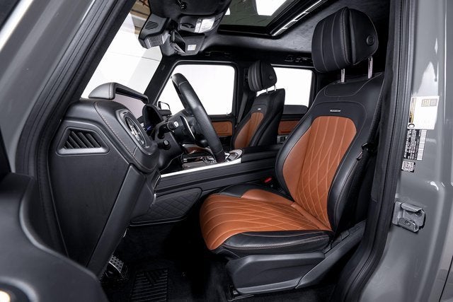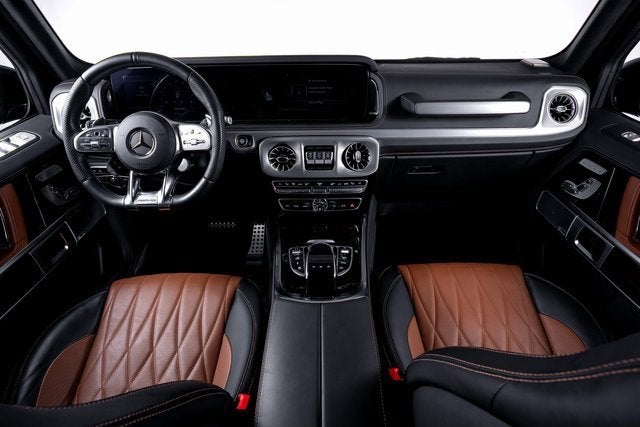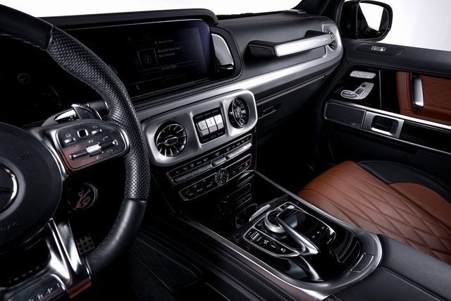Ferrari of Long Island is proud to present this commanding Mercedes-Benz G63 AMG, finished in striking Manufaktur Arabian Grey over a Saddle Brown/Black interior. With an original MSRP of $208,230, this G63 blends iconic off-road presence with AMG performance and bespoke Manufaktur craftsmanship. Powered by a handcrafted AMG twin-turbocharged V8, the G63 delivers exhilarating acceleration while retaining the legendary durability and capability that define the G-Class. This example is extensively optioned, beginning with the Manufaktur Interior Package Plus, which adds a Nappa leather instrument panel, SUPERIOR Line interior appointments, and the Active Multicontour Seat Package Plus for exceptional comfort and support. The AMG Night Package Plus gives this G63 a bold, stealth-inspired aesthetic. Highlights include high-gloss black Manufaktur typography, black under guard protection and brush guard, obsidian-finished bumpers and flared wheel arches, dark chrome AMG-specific radiator grille, high-gloss black Mercedes star front and rear, black exterior mirror housings, and spare wheel ring painted in Obsidian Black. AMG Silver-Painted Brake Calipers provide a subtle performance accent behind the striking 22" Forged AMG Cross-Spoke Wheels in Black. Additional premium features include Energizing Comfort Control, Manufaktur grab handles in leather, Manufaktur Black Piano Lacquer Trim, and all-season floor mats for added practicality. Blending unmistakable design, handcrafted AMG performance, and exclusive Manufaktur detailing, this Mercedes-Benz G63 represents a highly desirable specification of one of the worlds most iconic luxury performance SUVs. Please contact us for additional information or to schedule a private viewing.