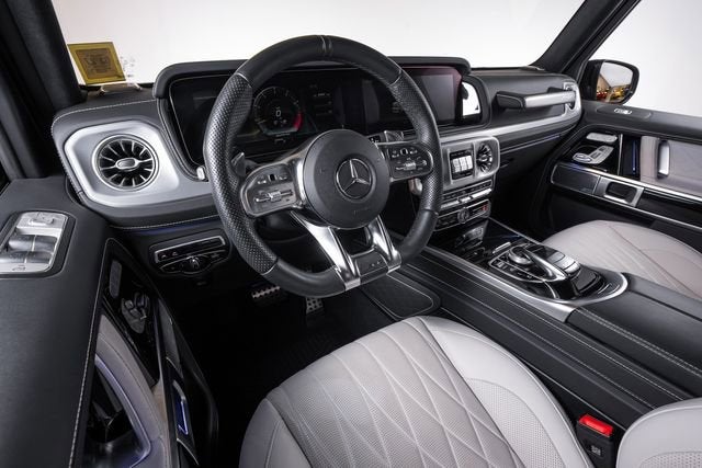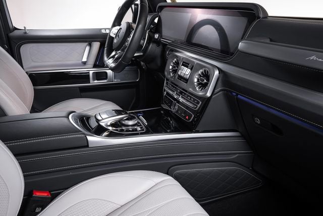 Ferrari of Long Island is proud to present this stunning Mercedes-Benz G63 AMG, finished in Arabian Grey over a Platinum White leather interior. This highly optioned example is equipped with a host of premium features, including the MANUFAKTUR Interior Package Plus, SUPERIOR Line Interior, and Active Multicontour Seat Package Plus. The cabin is further elevated by a Nappa leather instrument panel, MANUFAKTUR grab handles in leather, Black Piano Lacquer trim, and exclusive trim mouldings with MANUFAKTUR lettering. Inside, comfort and convenience are enhanced by a heated steering wheel and a range of luxury appointments designed for both driver and passengers. Additional functional features include a rubber mat set and load compartment mat, adding everyday practicality. Performance styling is complemented by 22-inch forged AMG cross-spoke wheels in black and a MANUFAKTUR spare wheel ring painted in the vehicles exterior color, creating a bold and cohesive appearance. Please contact Ferrari of Long Island today for additional information or to schedule your private viewing.