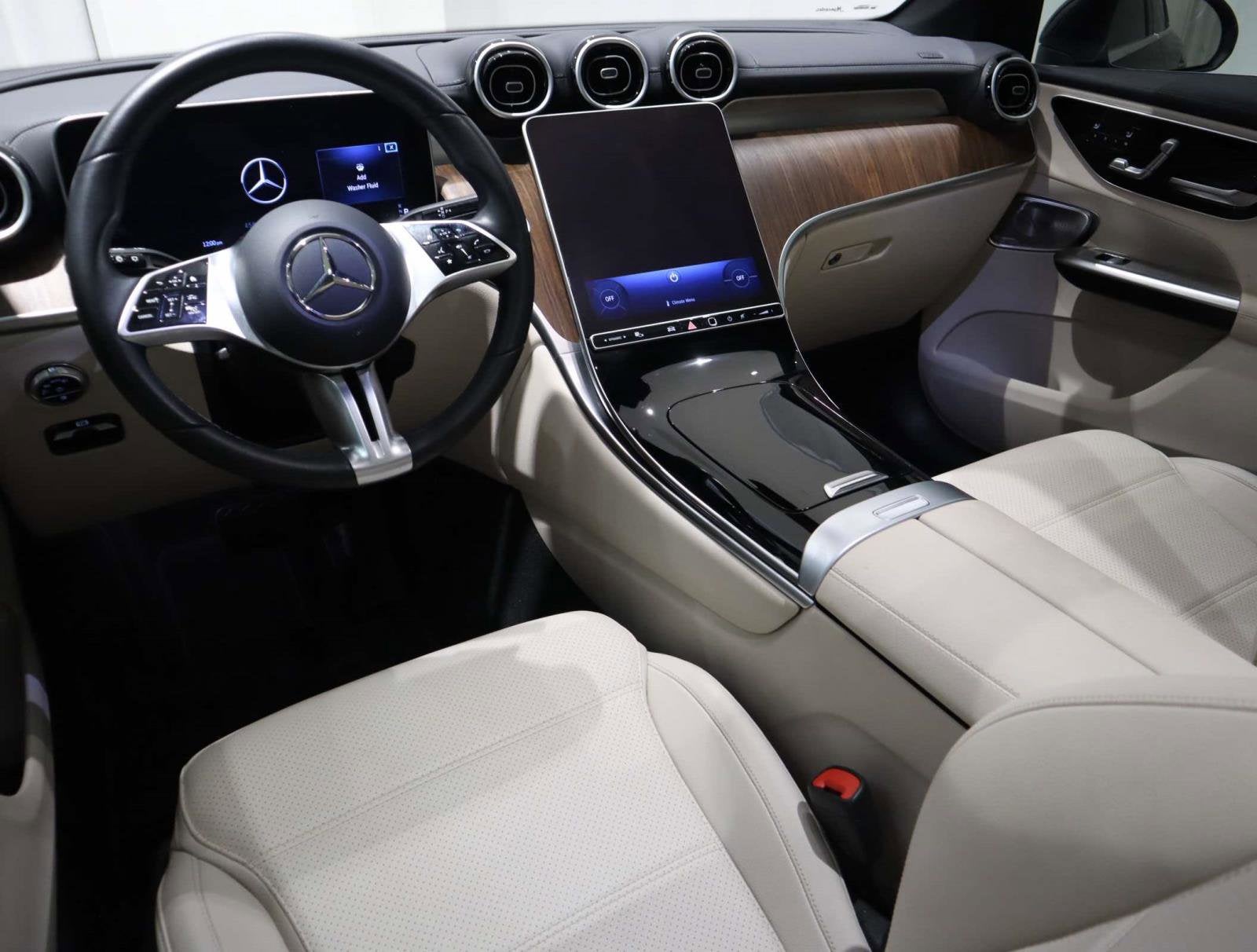 Powered by a turbocharged 2.0L inline-4 engine paired with a mild-hybrid system, the GLC 300 delivers smooth, responsive acceleration while maintaining impressive efficiency. The 9-speed automatic transmission ensures seamless shifts, making every drive effortless whether youre commuting or cruising on the highway.The exterior showcases Mercedes-Benz's signature sophistication with sleek body lines, a bold front grille, and LED lighting that commands attention from every angle. Step inside and you're greeted by a meticulously crafted cabin featuring premium materials, ambient lighting, and a driver-focused layout.Stay connected and in control with the advanced MBUX infotainment system, highlighted by a large touchscreen display, voice control, navigation, Apple CarPlay, and Android Auto. Comfort is paramount with power-adjustable seats, dual-zone climate control, and a quiet, refined ride.Safety and driver assistance features include Blind Spot Assist, Active Brake Assist, Attention Assist, and available adaptive cruise control, giving you confidence on every journey.