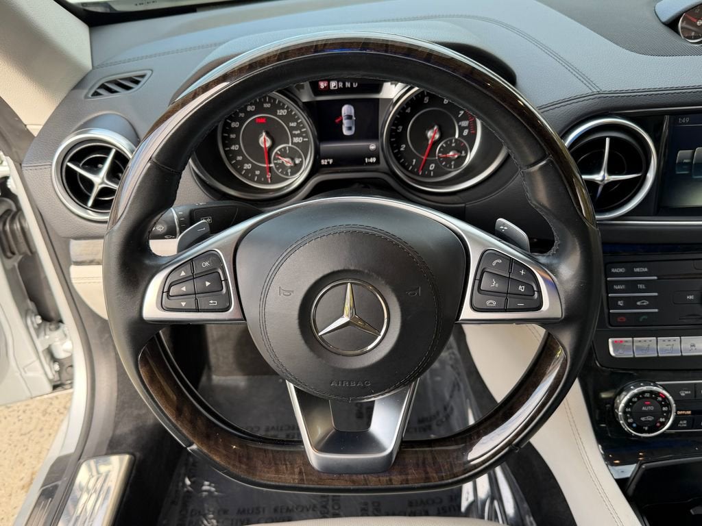 • Navigation system: COMAND® Driver Assistance Package Premium I Package Convertible HardTop harman/kardon® Logic 7® Surround Sound System MAGIC SKY CONTROL® Active Blind Spot Assist Active Lane Keeping Assist DISTRONIC PLUS® w/Steering Assist DISTRONIC PLUS® w/Pre-Safe Brake Active Multicontour Seats w/Massage AIRSCARF® Neck-Level Heating System Powered by a potent 3.0L Bi-Turbo V6 engine paired with a responsive 9-Speed Automatic transmission, this SL-Class delivers an exhilarating driving experience with an impressive fuel efficiency of 20 city / 28 highway MPG. Stepping inside, you'll be greeted by a cabin that exudes sophistication and attention to detail. The premium leather upholstery, heated and ventilated front seats, and the advanced COMAND® infotainment system with a stunning harman/kardon® audio system create an unparalleled level of comfort and connectivity. Safety is of the utmost importance, and this SL-Class is equipped with a comprehensive suite of advanced driver assistance features, including Blind Spot Assist, Lane Keeping Assist, and the innovative DISTRONIC PLUS® system, ensuring your peace of mind on every journey. Whether you're seeking the thrill of open-air driving or the refined elegance of a luxury grand tourer, this 2017 Mercedes-Benz SL-Class SL 450 is a true masterpiece that will captivate your senses and elevate your driving experience. We invite you to schedule a test drive and discover the exceptional craftsmanship and performance that this remarkable vehicle has to offer.