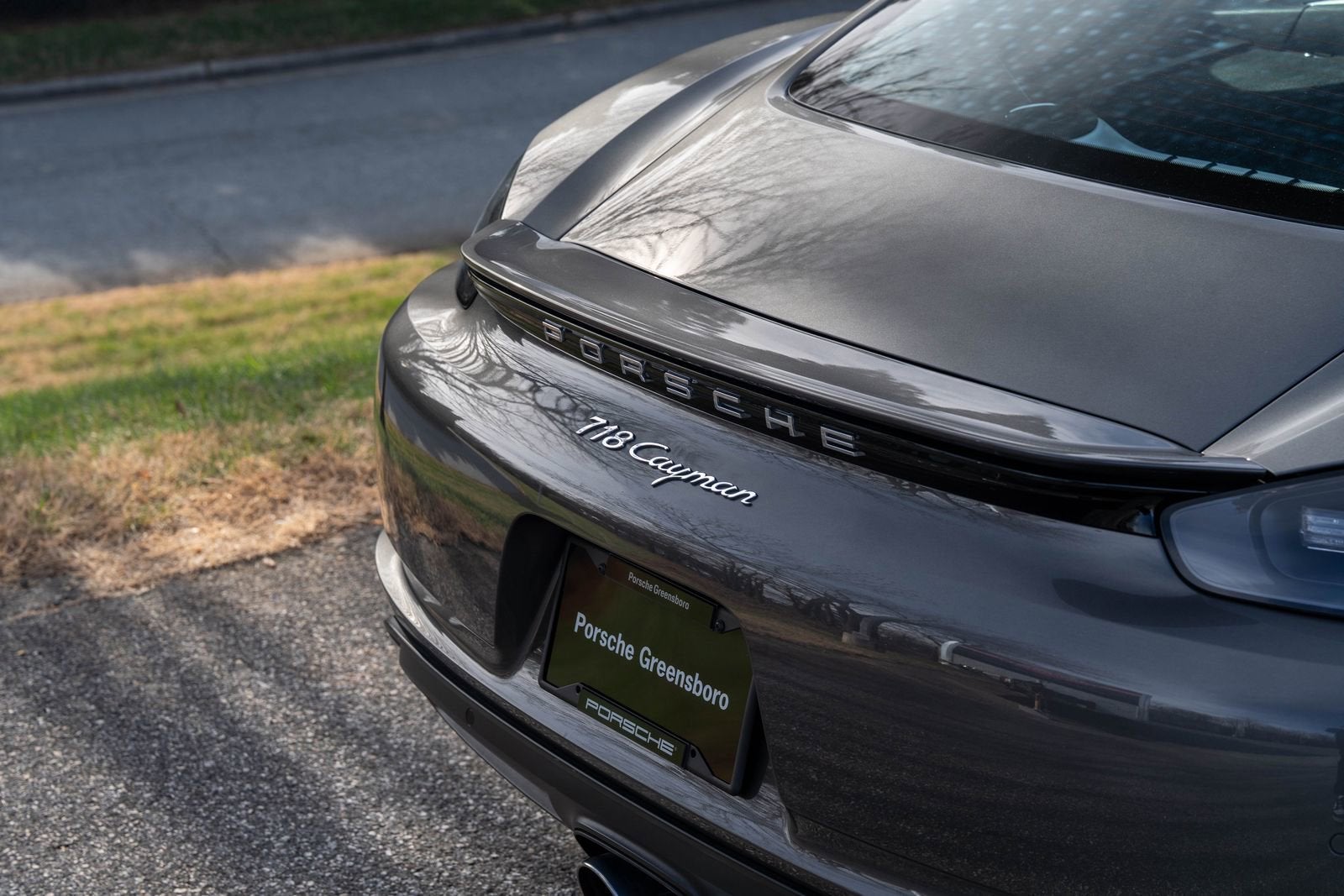Porsche Certified! 2024 Porsche 718 Cayman, Clean Carfax! 4k miles! Manual!, Warranty Start: 10-02-2023, Transmission: Manual, Engine: 2.0L Turbocharged, Exterior Color: Agate Grey Metallic, Interior Color: Standard Interior in Black, Optional Equipment- w/Option Code & Description- 982120 718 Cayman (MY24) $68,300, AG Standard Interior in Black, N0 Agate Grey Metallic $650, PL2 Premium Package $2,510, 489 Heated Multifunction Steering Wheel, 541 Ventilated Seats, 715 Power Folding Exterior Mirrors incl. Courtesy Lighting, 457 Lane Change Assist (LCA), 625 Porsche Entry & Drive, 630 Light Design Package, 581 Luggage Net in Passenger Footwell, XLS Sport Tailpipes in Silver $660, 658 Power Steering Plus $280, 446 Wheel Center Caps with Colored Porsche Crest $190, 433 20" Carrera S Wheels $2,730, 9VL BOSE Surround Sound-System $990, XXP Clear Taillights $740, 583 Smoking Package, For more information please contact Porsche Greensboro at 336-252-5588.