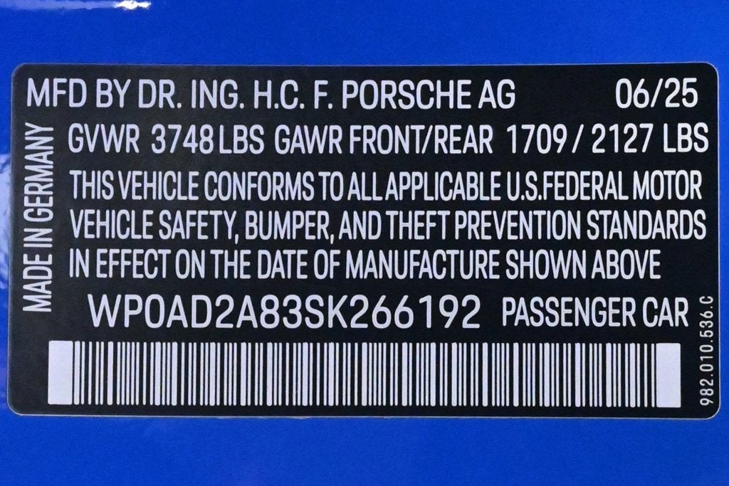 THE COLLECTION CERTIFIED This Porsche 718 Cayman has been certified by The Collection. Service Loaners (also known as courtesy cars) are dealer-owned models that stay on the dealership lot and are used exclusively for business purposes, including serving as temporary rentals for service-center clients whose personal vehicles will be in service for longer than they can afford to wait. VERY LOW MILES! At just 3670 miles, this 2025 Porsche provides great value. LOADED WITH VALUE! Comes equipped with: Air Conditioning, MP3, Front Heated Seats. This Porsche 718 Cayman also includes Power Driver's Seat, Clock, Climate Control, Power Passenger Seat, Tachometer, Multi-Zone Climate Control, Memory Seat Position, Digital Info Center, Cruise Control, Homelink System, Tilt Steering Wheel, Power Steering, Telescoping Steering Wheel, Power Windows, Power Mirrors, Driver Airbag, ABS Brakes, Passenger Airbag, Traction Control, Intermittent Wipers, Side Airbags, Dynamic Stability, Keyless Entry, Rear Defogger, Security System, AM/FM, Rear Spoiler, Sport Seats, Center Arm Rest, Cup Holders, Vanity Mirrors, Heated Mirrors, Daytime Running Lights, Parking Sensors, Reverse Camera, Side Curtain Airbags, Roll Stability Control, Adaptive headlights, Tire Pressure Monitor, Premium Sound, Carpeted Floor Mats, HID Headlamps, Onboard Hard Drive. Air Conditioning, Climate Control, Dual Zone Climate Control, Cruise Control, Power Steering, Power Windows, Power Mirrors, Power Drivers Seat, Power Passenger Seat, Memory Seat Position, Phone, Clock, Tachometer, Digital Info Center, Homelink System, Tilt Steering Wheel, Telescoping Steering Wheel, Driver Airbag, Passenger Airbag, Side Airbags, Keyless Entry, Security System, ABS Brakes, Traction Control, Dynamic Stability, Rear Defogger, Intermittent Wipers, AM/FM, Alloy Wheels, Leather Interior Surface, Navigation System, 18-Way Adaptive Sport Seats Plus with Memory Package, Light Design Package, Premium Package, Sound Package Plus with 8 Loudspeakers, SportDesign Package in High Gloss Black, 8 Speakers, Radio data system, Automatic temperature control, Porsche Communication Management, Power driver seat, Voice Control, Adaptive suspension, Electric Steering Column, Four wheel independent suspension, Heated Multifunction Sport Steering Wheel in Carbon, 4-Wheel Disc Brakes, Dual front impact airbags, Dual front side impact airbags, Front anti-roll bar, Knee airbag, Low tire pressure warning, Occupant sensing airbag, Overhead airbag, Porsche Entry & Drive, Rear anti-roll bar, Seat Belts in Guards Red, Brake assist, Exterior Parking Camera Rear, Delay-off headlights, Fully automatic headlights, Headlight cleaning, High intensity discharge headlights: Bi-Xenon, Auto-dimming door mirrors, Bumpers: body-color, Deletion of GTS 4.0 Decal on Doors, Deletion of Model Designation on Rear, Exclusive Design Fuel Cap, Heated door mirrors, LED Headlights with Porsche Dynamic Light System, PORSCHE Logo on Rear in Satin Black, Power door mirrors, Power Folding Exterior Mirrors with Courtesy Lighting, Spoiler, Window Trim and Window Triangle in High Gloss Black, Apple CarPlay, Auto-dimming Rear-View mirror, Center Console Lid with Model Logo, Driver door bin, Driver vanity mirror, Front reading lights, Heated Multifunction Steering Wheel, Illuminated Door-Sill Guards in Carbon Fiber, Illuminated entry, Instrument Dials in White, Lane Change Assist (LCA), Luggage Net in Passenger Footwell, Manual Gear Lever with Carbon Fiber Trim, Navigation with Porsche Connect, Outside temperature display, Passenger vanity mirror, Sport Chrono Stopwatch Dial in White, Sport steering wheel, Telescoping steering wheel, Front Center Armrest, Heated front seats, Seat Ventilation, Sport Plus Seats, Passenger door bin, Wheels: 20 718 Sport in Satin Black, Rain sensing wipers, Recent Oil Change, Passed Inspection, FORMER PORSCHE COMPANY EXECUTIVE CAR / NEVER TITLED, ONLY 3, 670 MILES / FLORIDA DRIVEN & GARAGED, FULLY INSPECTED & FRESHLY SERVICED @ THE COLLECTION PORSCHE., NICELY EQUIPPED WITH MANY PORSCHE FACTORY ORDERED OPTIONS., PORSCHE FACTORY CERTIFIED PREOWNED VEHICLE WARRANTY APPLIES. Adaptive headlights, Carpeted Floor Mats, Center Arm Rest, Cup Holders, Daytime Running Lights, Front Heated Seats, Heated Mirrors, HID Headlamps, Navigation System, Parking Sensors, Premium Sound, Rear Spoiler, Rear Spoiler, Reverse Camera, Roll Stability Control, Side Curtain Airbags, Sport Seats, Tire Pressure Monitor, Vanity Mirrors - Contact THE COLLECTION GENERAL at 786-349-9658 or GENERAL@THECOLLECTION.COM for more information. -