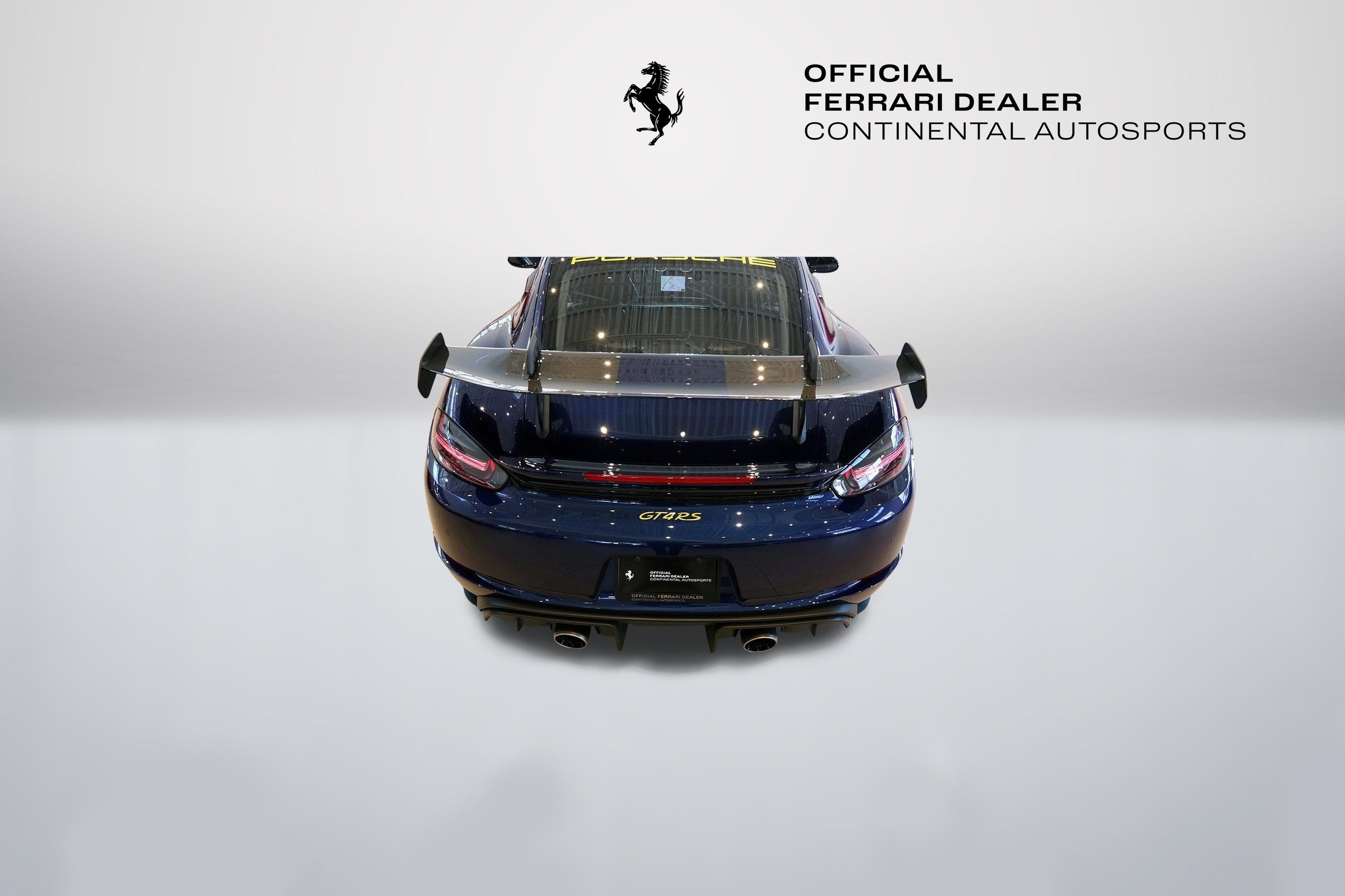 Continental Autosports, an Official Ferrari Dealer since 1975, offers this 2024 Porsche 718 Cayman GT4 RS finished in Gentian Blue Metallic over Black. A razor-sharp track machine. A highly agile mid-engine concept. A six-cylinder naturally aspirated engine with a displacement of 4.0 liters and 493 hp. A high-revving concept that easily hits the 9,000 mark. This one-owner GT4 RS, made available by a long time Continental client, has been inspected at a local Porsche dealer and is ready to be enjoyed. Specification Includes: - Gentian Blue Metallic - Leather/Race-Tex Interior in Black w/Deep Sea Blue Stitch - Weissach Package - Wheels Painted in Satin Indigo Blue - Front Axle Lift System - Fire Extinguisher - Seat Belts in Deep Sea Blue - Luggage Net in Passenger Footwell - Front Lid/Wing in Exposed Carbon Fiber/Partially Painted - LED Headlights incl PDLS - Production Steering Code for Accent Package - Steering Wheel and Gear Lever/Selector in Black Leather - BOSE Surround Sound System - Accent Package Logos - Brake Calipers in High Gloss Black - Storage Compartment Lid in Race-Tex w/Porsche Crest - Door-Sill Guards in Carbon Fiber, Illuminated Due to space limitations, all inventory cannot be kept on premises. Inventory viewing can be expected by next day appointment only. Please call the day before or earlier to schedule an appointment.