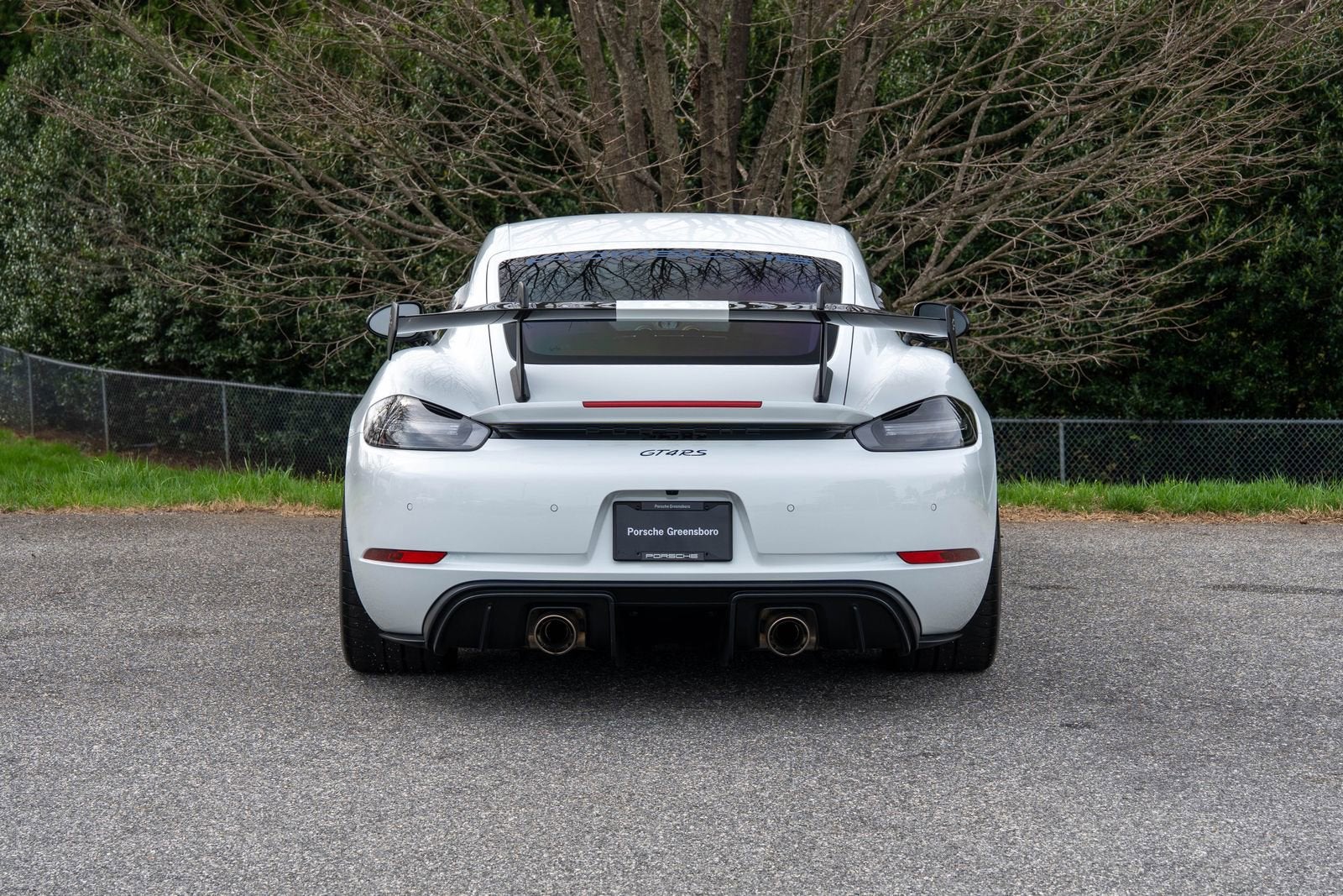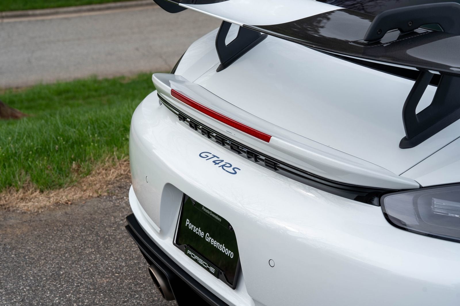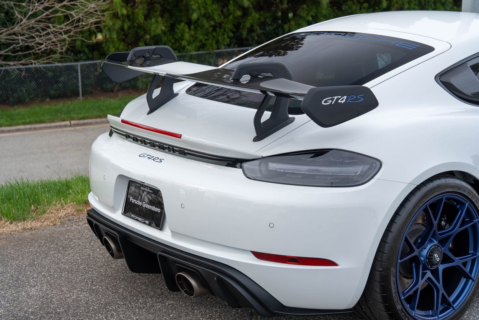 Porsche Certified! 2025 Porsche 718 Cayman GT4 RS, One Owner! Clean Carfax! 2k miles! Nice Build!, Warranty Start: 05-12-2025, Transmission: PDK (Automatic), Engine: Not Available Exterior Color: White, Interior Color: Leather/Race-Tex Interior in Black with Deep Sea Blue Stitching w/Weissach Package, Optional Equipment- w/Option Code & Description- 982850 718 Cayman GT4 RS $164,200, 62 Leather/Race-Tex Interior in Black with Deep Sea Blue Stitching w/Weissach Package $2,170, 0Q White, 04I Weissach Package $13,250, CSX Window Triangle Trims in Carbon Fiber $550, AME Accent Package Logos - Indigo Blue $780, 5M4 Front Trunk Lid and Wing in Exposed Carbon Fiber/Partially Painted w/Weissach Package $1,990, 474 Front Axle Lift System $3,040, QR5 Chrono Package $300, XBS Brake Calipers in High Gloss Black $910, 349 Wheels Painted in Satin Indigo Blue $600, XFJ Instrument Dials in White $690, P07 Adaptive Sport Seats Plus (18-way), XGM Chrono Stopwatch Dial in White $420, 342 Heated Seats $540, 563 Seat Belts in Deep Sea Blue $360, XLU Sun Visors in Race-Tex $590, QH1 Voice Control, 9VL BOSE Surround Sound System $990, 684 Deletion of SiriusXM Antenna, 722 Production Steering Code for Accent Package, 634 LED Headlights incl. Porsche Dynamic Light System (PDLS) $1,500, P13 Auto-Dimming Mirrors with Integrated Rain Sensor $690, XWN Preparation for Porsche Dashcam (Front) $140, 630 Light Design Package $350, 583 Smoking Package, 581 Luggage Net in Passenger Footwell, For more information please contact Porsche Greensboro at 336-252-5588.