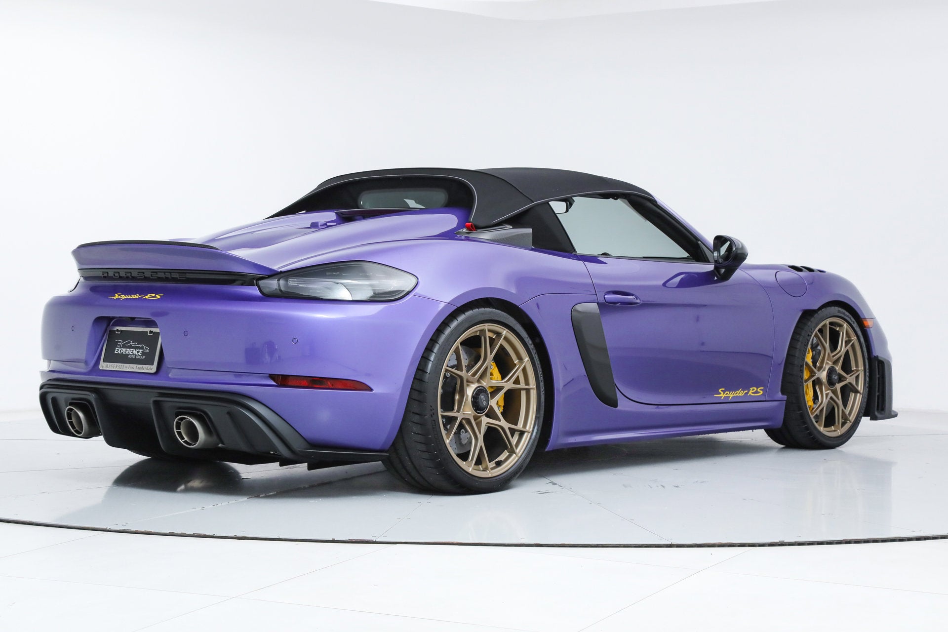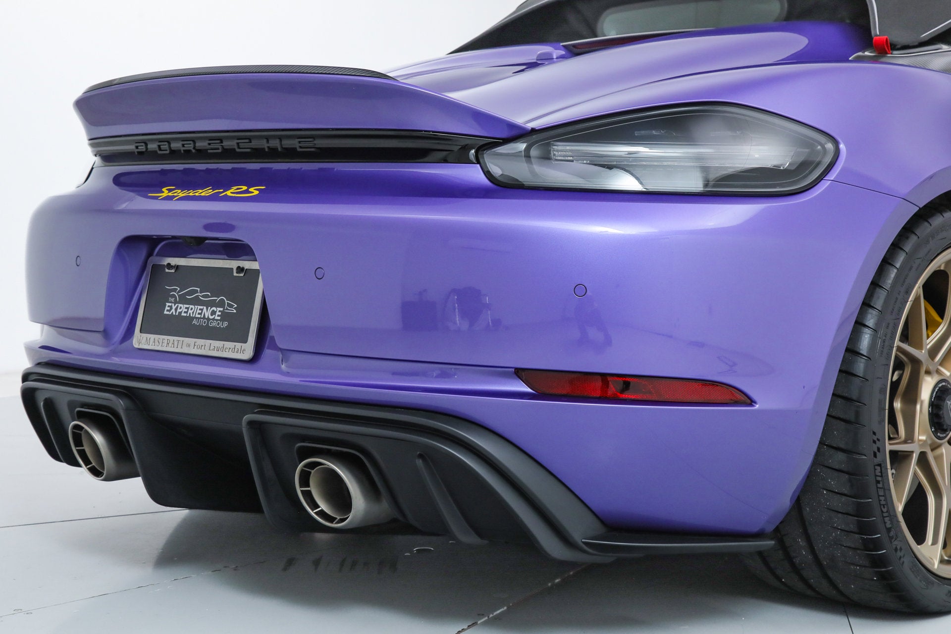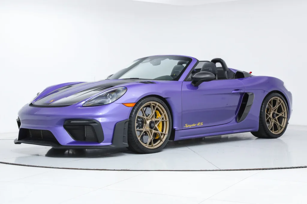 Porsche 718 Spyder RS Weissach Package Ferrari Maserati Alfa Romeo of Fort Lauderdale is proud to present this incredible Porsche 718 Spyder RS. Finished in Paint to Sample Viola Purple Metallic over Black and Arctic Grey Leather and Race-Tex, the 718 Spyder RS has barely been driven. It is in like-new condition, and the balance of the Porsche Factory Warranty is in effect. Factory Options: - Paint to Sample ($12,830) - Weissach Package ($12,570) - Porsche Ceramic Composite Brakes (PCCB, $8,000) - Front Axle Lift System ($3,040) - Black and Arctic Grey Leather and Race-Tex Interior ($2,160) - LED Headlights with PDLS ($1,500) - Front Lid in Exposed Carbon Fiber ($1,320) - Bose Surround Sound System ($990) - Wheels Painted in Satin Neodyme ($600) - Climate Control Panel in Leather ($590) - Smartphone Compartment ($560) - Window Triangle Trims in Carbon Fiber ($550) - Accent Package Logos ($520) - Storage Compartment Lid in Race-Tex with Porsche Logo ($340) - Chrono Package ($310) If you are in the market for a Porsche 718 Spyder RS, please call or email us today.