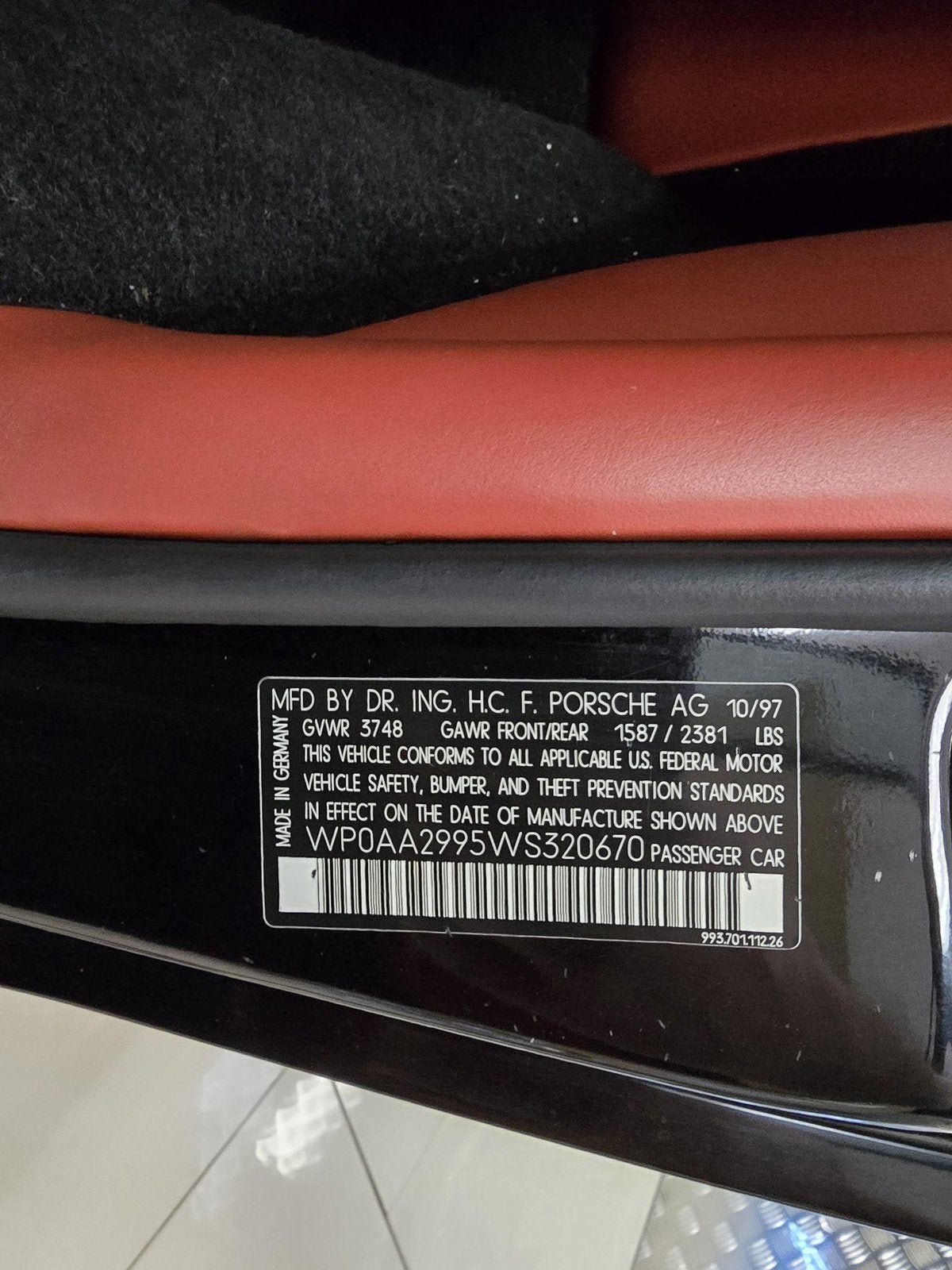 1012761. service history includes: 8/2021 @ 69K miles, engine out rebuild/refurbish including new piston rings, cylinder head rebuild, valve guide & seals replacement, valve seats ground and polished, fuel injectors cleaned, all new OEM O rings and gaskets used during reassembly. New engine bay insulation pad installed. engine and parts dry ice cleaned before re install. Break in SAE 40 non detergent used to break in. Break in oil and filter then changed after initial test drive. Additional items replaced during this process include 993 head gasket kit, rubber intake sleeves, manifold gasket, air intake hose and gasket, timing chain rails, left side camshaft, left side timing chain cover, front crankshaft pulley seal, oil return tubes, and valve cover bolts. Work was performed by Beck's European in Scottsdale. RO date 8/4/2021 @ 69,796 miles. We have nearly complete service records with much more older history records available to future buyer.