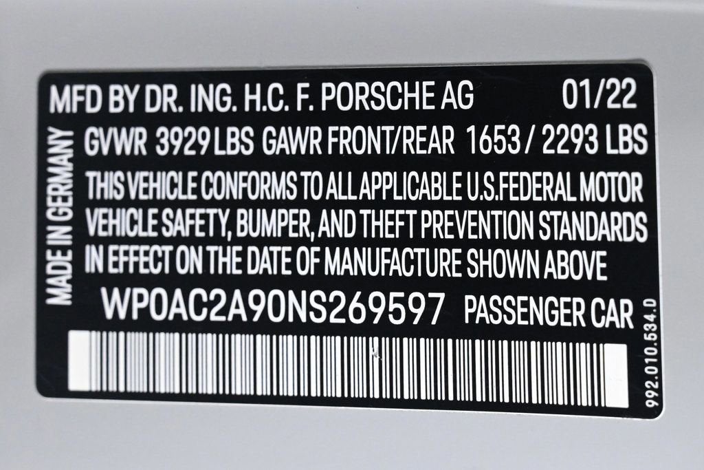 EXTREMELY LOW MILES! Get the best value from your vehicle purchase. This 2022 boasts an extremely low 565 miles! LOADED WITH VALUE! Comes equipped with: Air Conditioning, MP3, Bluetooth, Front Heated Seats. This Porsche 911 also includes Power Driver's Seat, Clock, Climate Control, Power Passenger Seat, Tachometer, Multi-Zone Climate Control, Digital Info Center, Cruise Control, Homelink System, Tilt Steering Wheel, Power Steering, Telescoping Steering Wheel, Power Windows, Steering Radio Controls, Power Mirrors, Driver Airbag, ABS Brakes, Fog Lights, Passenger Airbag, Traction Control, Intermittent Wipers, Side Airbags, Dynamic Stability, Keyless Entry, Rear Defogger, Security System, AM/FM, Rear Spoiler, Sport Seats, Center Arm Rest, Cup Holders, Vanity Mirrors, Heated Mirrors, Rear Fog Lamps, Daytime Running Lights, Reverse Camera, Side Curtain Airbags, Roll Stability Control, PCM, Tire Pressure Monitor, Premium Sound, Carpeted Floor Mats, Overhead Console, Aux. Audio Input. Air Conditioning, Climate Control, Dual Zone Climate Control, Cruise Control, Power Steering, Power Windows, Power Mirrors, Power Drivers Seat, Power Passenger Seat, Phone, Clock, Tachometer, Digital Info Center, Homelink System, Tilt Steering Wheel, Telescoping Steering Wheel, Steering Wheel Radio Controls, Driver Airbag, Passenger Airbag, Side Airbags, Keyless Entry, Security System, ABS Brakes, Traction Control, Dynamic Stability, Rear Defogger, Fog Lights, Intermittent Wipers, AM/FM, Alloy Wheels, Leather Interior Surface, Navigation system: Porsche Communication Management (PCM), Chrono Package with Preparation for Lap Trigger, Smoking Package, Storage Package, 8 Speakers, Radio data system, Automatic temperature control, Porsche Communication Management, Power driver seat, Adaptive suspension, Four wheel independent suspension, Front Axle Lift System, 4-Wheel Disc Brakes, Dual front impact airbags, Dual front side impact airbags, Front anti-roll bar, Low tire pressure warning, Occupant sensing airbag, Overhead airbag, Porsche Ceramic Composite Brakes (PCCB) in Black, Rear anti-roll bar, Brake assist, Exterior Parking Camera Rear, Delay-off headlights, Fully automatic headlights, Seat Belts in Shark Blue, Auto-Dimming Mirrors with Integrated Rain Sensor, Bumpers: body-color, Carbon Fiber Roof, Exclusive Design Fuel Cap, Exclusive Design Taillights, Exterior Mirror Upper Trims in Carbon Fiber, Heated door mirrors, LED-Matrix Design Headlights in Black with PDLS+, Model Designation on Doors in Black, Motorsport Stripe Decal on Top in Black, Power door mirrors, Spoiler, 4-Way Sport Seats Plus, Air Vent Surround in Lthr & Air Vent Slats Painted, Ambient Lighting, Center Console Lid in Race-Tex with Porsche Crest, Driver door bin, Driver vanity mirror, Front reading lights, Full Bucket Seats, Illuminated entry, Int Trim Inlays & Dr-Sill Guards in Carbon Fiber, Interior Trim Inlays in High Gloss Carbon Fiber, Outside temperature display, Overhead console, Passenger vanity mirror, Pedals & Footrest in Aluminum, Rear ParkAssist, Seat Belt Outlet Trims in Race-Tex, Sport steering wheel, Steering Column Casing in Leather, Telescoping steering wheel, Traffic Sign Recognition, Under Door Puddle Light Projectors, Vehicle Keys Painted with 1 Key Pouch in Leather, Front Center Armrest, Heated front seats, Sport Plus Seats, 23.7 Gal. Extended Range Fuel Tank, Passenger door bin, Wheels Painted in Satin Dark Silver, Wheels: 20 Front/21 Rear 911 GT3, New Tires, Recent Oil Change, Passed Inspection, Active Parking Assist, Adaptive Headlights, AndroidTM Auto/Apple Carplay, Automatic Headlights, Backup Camera, Bluetooth, Navigation, Touchscreen Controls, Voice Recognition, Wi-Fi Hotspot, ONLY 565 MILES / ONE OWNER, FRESHLY SERVICED @ THE COLLECTION PORSCHE Adaptive headlights, Aux. Audio Input, Bluetooth, Carpeted Floor Mats, Center Arm Rest, Cup Holders, Daytime Running Lights, Front Heated Seats, Heated Mirrors, Navigation System, Overhead Console, PCM, Premium Sound, Rear Fog Lamps, Rear Spoiler, Rear Spoiler, Reverse Camera, Roll Stability Control, Side Curtain Airbags, Sport Seats, Tire Pressure Monitor, Vanity Mirrors - Contact Alvaro Uribe at 786-628-7606 or auribe@ferrariofmiami.com for more information. -