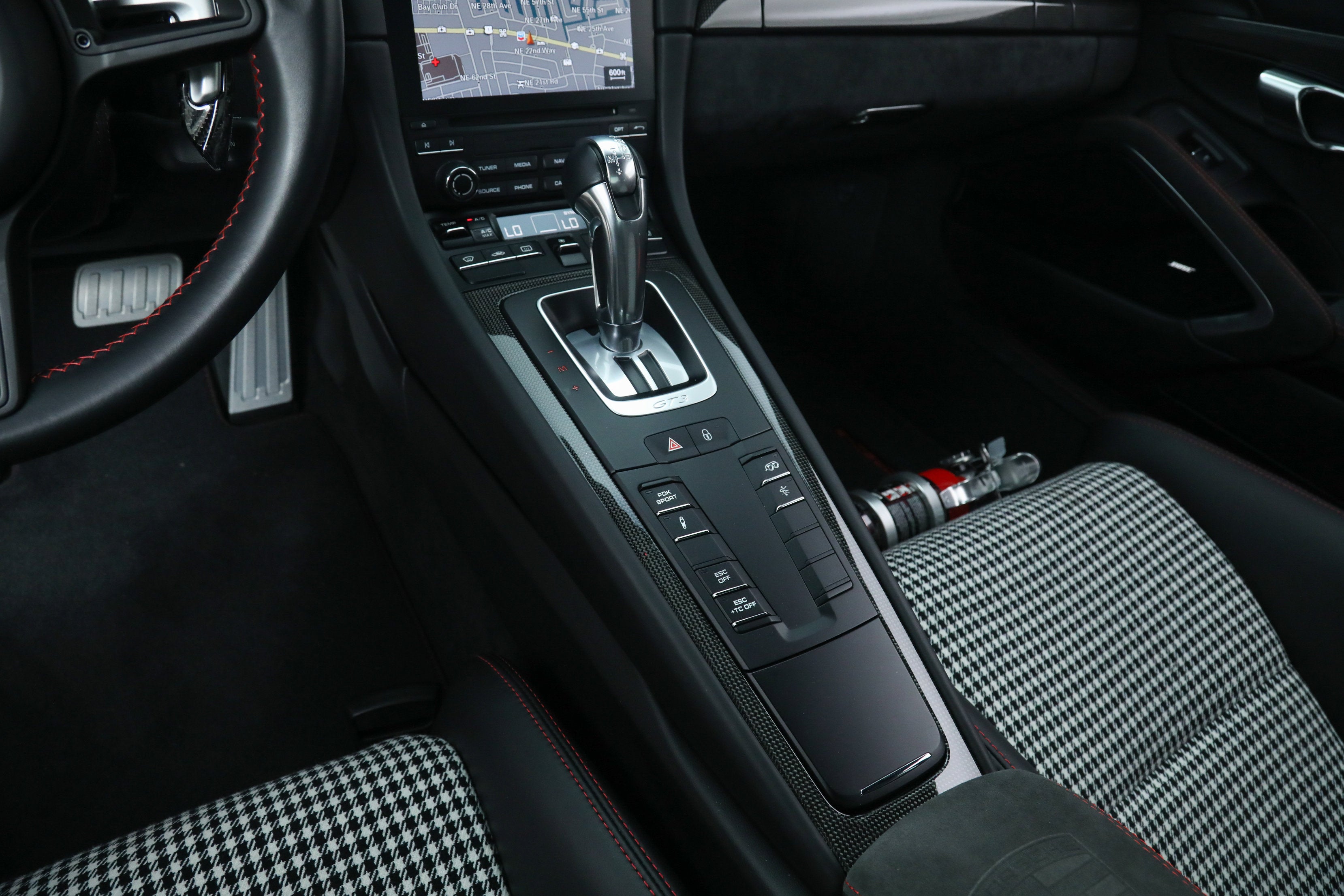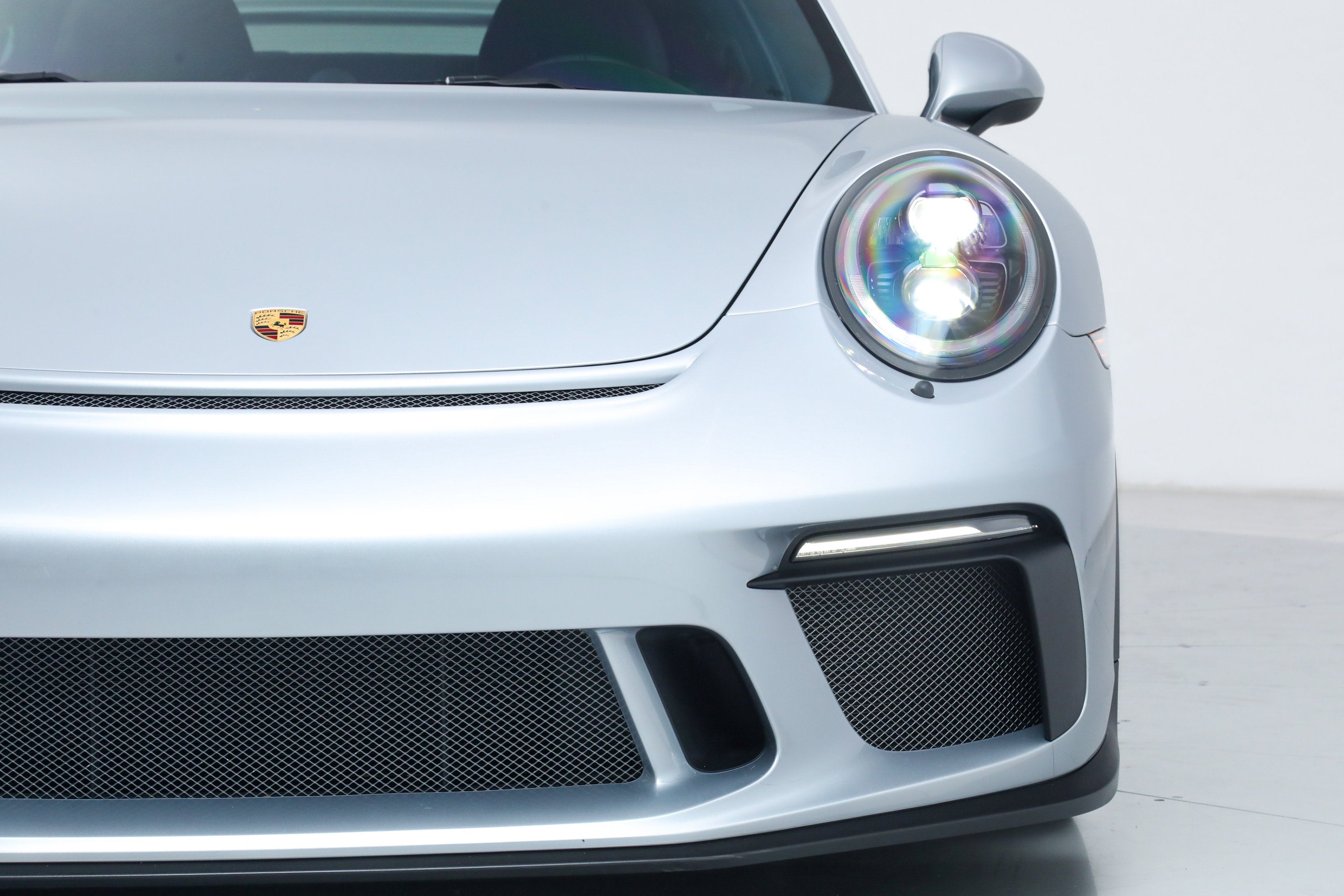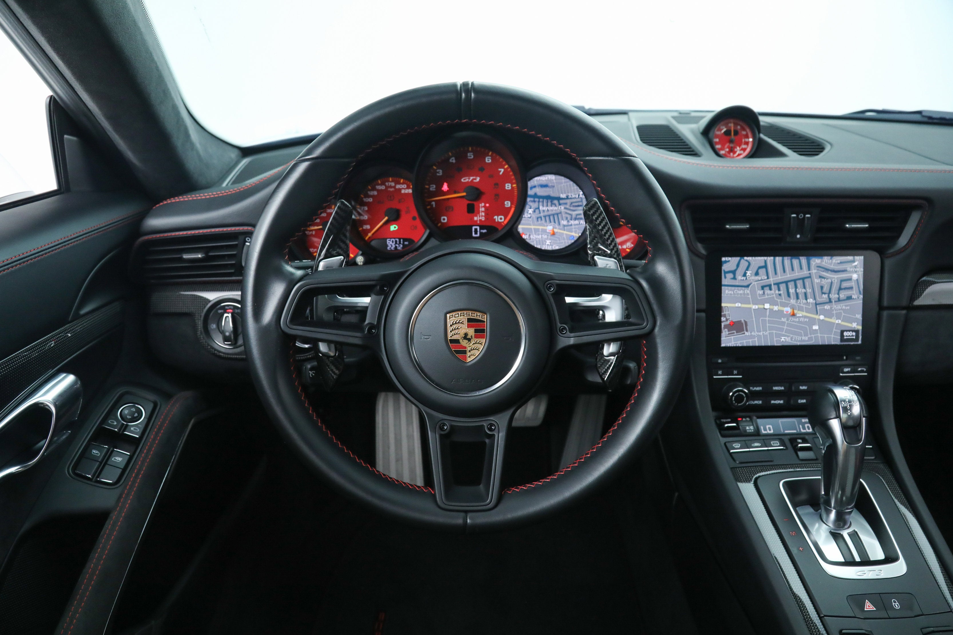 - Tarett Engineering Spring Upgrade Kit ($3,500) Factory Options: - Porsche Doppelkupplung (PDK) Transmission - Carbon Fiber Full Bucket Seats ($5,200) - Full Leather and Alcantara Interior ($3,480) - LED Headlights in Black ($2,900) - Front Axle Lift System ($2,590) - Bose Surround Sound System ($1,600) - Contrast Stitching Interior Package in Guards Red ($1,500) - Wheels Painted in Satin Black ($1,220) - Carbon Fiber Interior Trim ($960) - Instrument Dials in Guards Red ($860) - Carbon Fiber Door Sill Guards ($760) - Metallic Paint ($720) - Auto-Dimming Exterior and Interior Mirrors ($700) - Sport Chrono Package ($550) - Vehicle Key Painted and Key Pouch in Leather ($530) - Sport Chrono Dial in Guards Red ($510) - Light Design Package ($510) - Seatbelts in Guards Red ($360) - Fuel Cap with Aluminum Look Finish ($160) - Luggage Net in Passenger Footwell - Voice Control If you are in the market for a Porsche 911 GT3, please call or email us today.