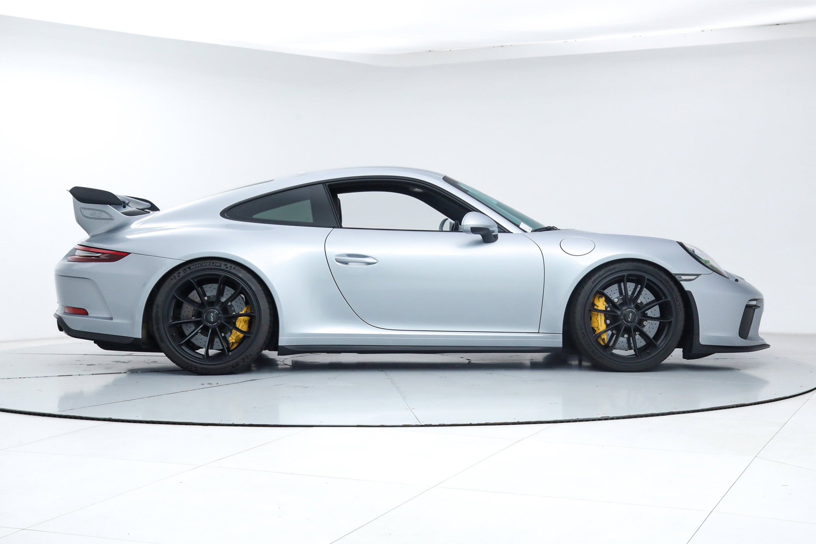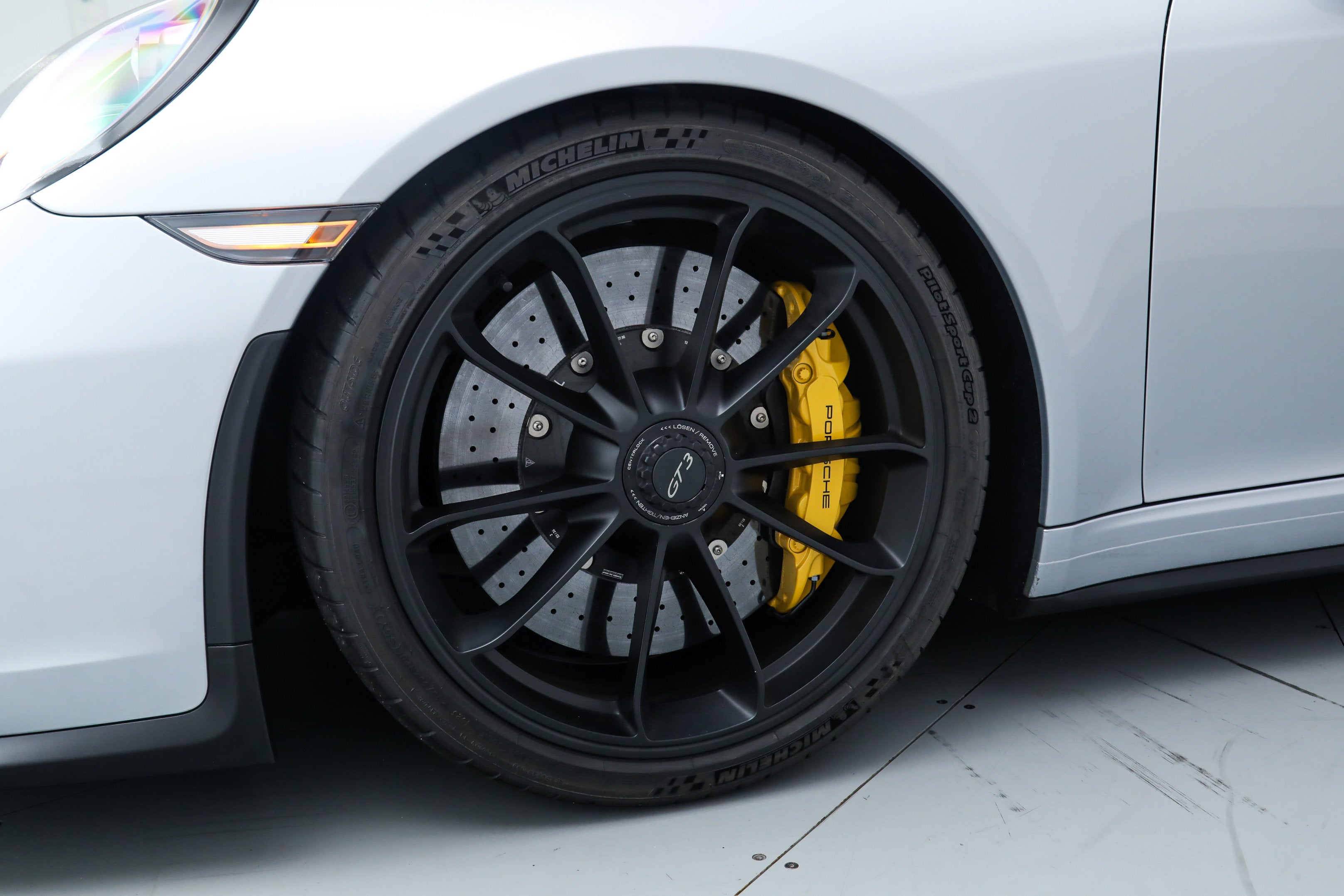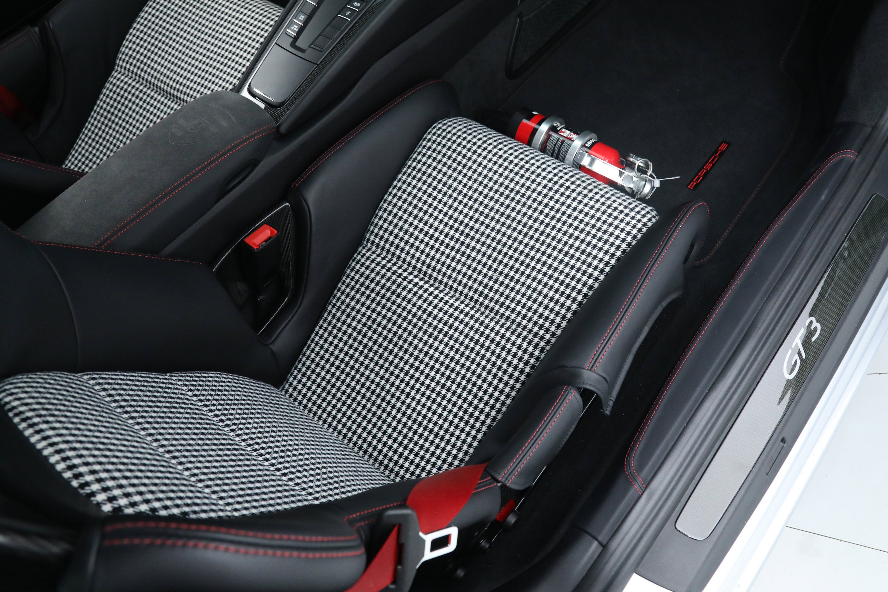 - Tarett Engineering Spring Upgrade Kit ($3,500) Factory Options: - Porsche Doppelkupplung (PDK) Transmission - Carbon Fiber Full Bucket Seats ($5,200) - Full Leather and Alcantara Interior ($3,480) - LED Headlights in Black ($2,900) - Front Axle Lift System ($2,590) - Bose Surround Sound System ($1,600) - Contrast Stitching Interior Package in Guards Red ($1,500) - Wheels Painted in Satin Black ($1,220) - Carbon Fiber Interior Trim ($960) - Instrument Dials in Guards Red ($860) - Carbon Fiber Door Sill Guards ($760) - Metallic Paint ($720) - Auto-Dimming Exterior and Interior Mirrors ($700) - Sport Chrono Package ($550) - Vehicle Key Painted and Key Pouch in Leather ($530) - Sport Chrono Dial in Guards Red ($510) - Light Design Package ($510) - Seatbelts in Guards Red ($360) - Fuel Cap with Aluminum Look Finish ($160) - Luggage Net in Passenger Footwell - Voice Control If you are in the market for a Porsche 911 GT3, please call or email us today.