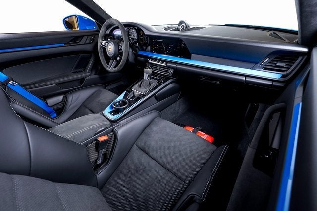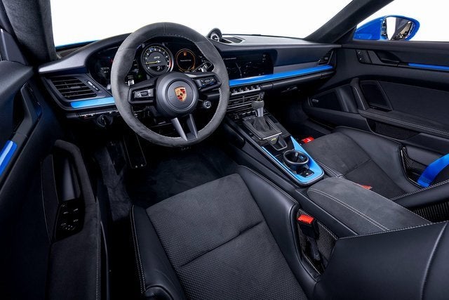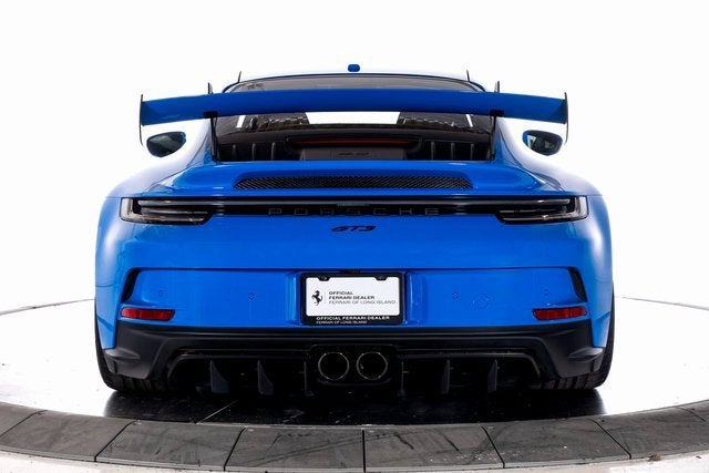 Ferrari of Long Island is proud to present this track-focused Porsche 911 GT3, finished in striking Shark Blue over a Race-Tex interior with GT Silver contrasting stitching. With an original MSRP of $185,720, this GT3 delivers motorsport-derived performance in a road-legal package engineered for purists. Powered by a naturally aspirated 4.0-liter flat-six engine paired with the lightning-quick 7-speed Porsche Doppelkupplung (PDK), the 911 GT3 offers razor-sharp throttle response and a spine-tingling high-revving soundtrack. The Chrono Package with preparation for lap trigger enhances its circuit-ready capability, while the Extended Range Fuel Tank (23.7 gallons) ensures longer stints between stops. A Front Axle Lift System adds everyday practicality. This example rides on 20"/21" 911 GT3 wheels painted in Satin Dark Silver by Porsche Exclusive Manufaktur, perfectly complementing the vibrant Shark Blue exterior. Additional exterior enhancements include LED Headlights in Black with Porsche Dynamic Light System (PDLS), Exclusive Design Taillights, exterior mirror lower trim and base in exterior color, and Under Door Puddle Light Projectors. Inside, the cabin is purpose-built with Full Bucket Seats, a fire extinguisher, and seat belts in Shark Blue, reinforcing its motorsport character. Interior Trim Inlays painted in Exterior Color tie the cabin to the exterior theme, while Auto-Dimming Mirrors with Integrated Rain Sensor and ParkAssist (Rear) add convenience. The BOSE Surround Sound System provides premium audio when desired, and the Smoking Package offers additional versatility. Blending race-bred engineering with bespoke Porsche Exclusive Manufaktur detailing, this Porsche 911 GT3 represents an exceptional opportunity for enthusiasts seeking a highly specified and performance-focused example. Please contact us for additional information or to schedule a private viewing.