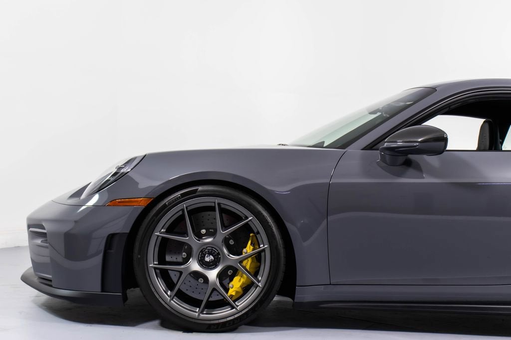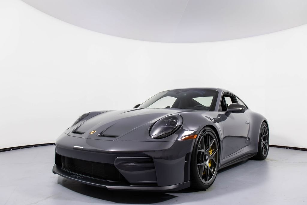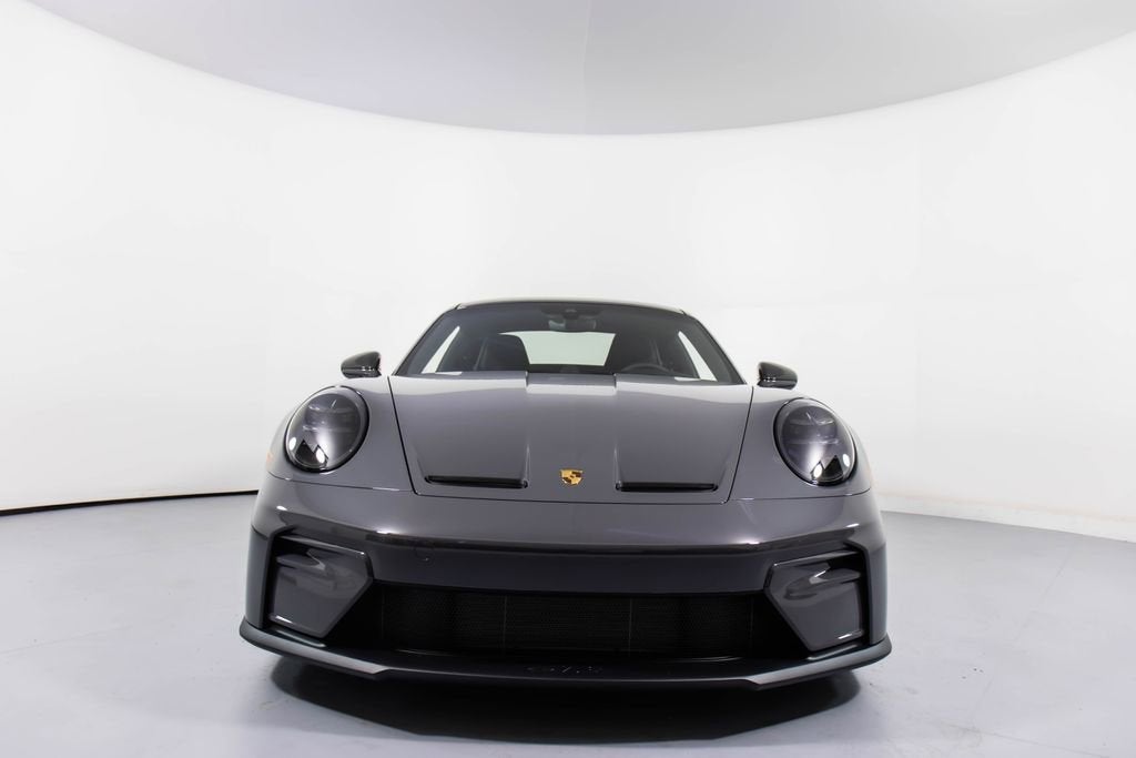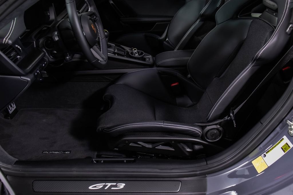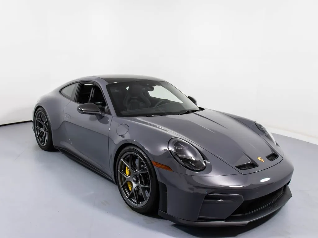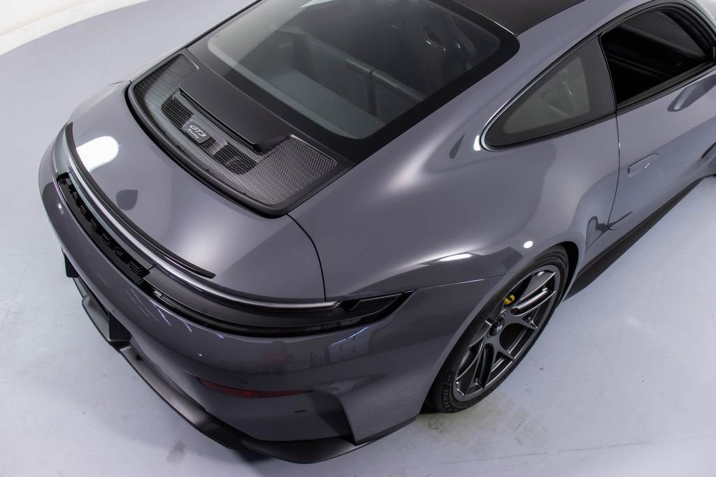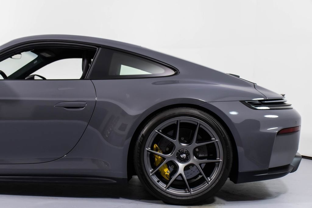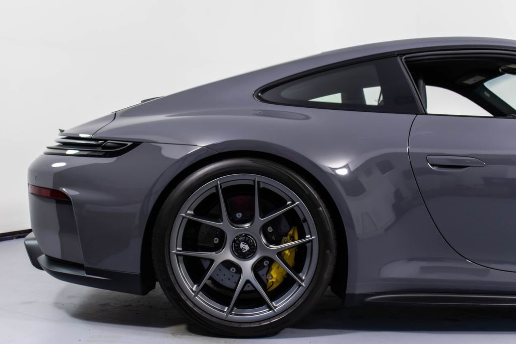 287172 Exterior: Gray Interior: Black Mats: Black 2026 Porsche 911 GT3 Touring Options: Slate Grey Neo Leather Interior in Black w/ Fabric and GT Silver Stitching Lightweight Package in Black Extended Range Fuel Tank PCCB with Calipers in Yellow Wheels Painted in Satin Dark Silver Front Fascia Airblades in Exterior Color Front Axle Lift System Ionizer Exclusive Design Fuel Cap Rear Seats Roof in Exposed Carbon Fiber Sun Visors in Race- Tex Center Console Lid with Porsche Crest Exterior Mirror Upper Trims in Carbon Fiber Roof Lining in Race- Tex Door-Sill Guards in Matte Carbon Fiber, Illuminated ParkAssist (Rear) HD-Matrix Design LED Headlights in Black Chrono Package Exclusive Design Taillights Bose Surround Sound System Forged Magnesium Lightweight Wheels Pedals and Footrest in Aluminum Folding Lightweight Bucket Seats Porsche Dashcam Ambient Lighting Under Door Puddle Light Projectors Finished in an understated yet striking Slate Grey Neo over a Black interior, this 2026 Porsche 911 GT3 Touring perfectly balances motorsport performance with refined touring comfort. The sleek exterior is elevated by satin dark silver forged magnesium lightweight wheels, exposed carbon fiber roof, and carbon fiber mirror trims, while yellow PCCB brake calipers hint at its track-ready capability. Inside, the cabin features a premium leather and fabric combination with GT Silver stitching, lightweight bucket seats, Race-Tex accents, and illuminated matte carbon fiber door sills, creating a purposeful yet luxurious driving environment. Equipped with the Lightweight Package, front axle lift system, extended range fuel tank, and Chrono Package, this GT3 Touring is engineered for both spirited driving and long-distance performance. Advanced features such as HD-Matrix LED headlights, ParkAssist, Porsche dashcam, ambient lighting, and a Bose surround sound system provide modern convenience and comfort. With exclusive design touches throughout and precision engineering at its core, this 911 GT3 Touring delivers a pure and engaging driving experience with everyday usability.