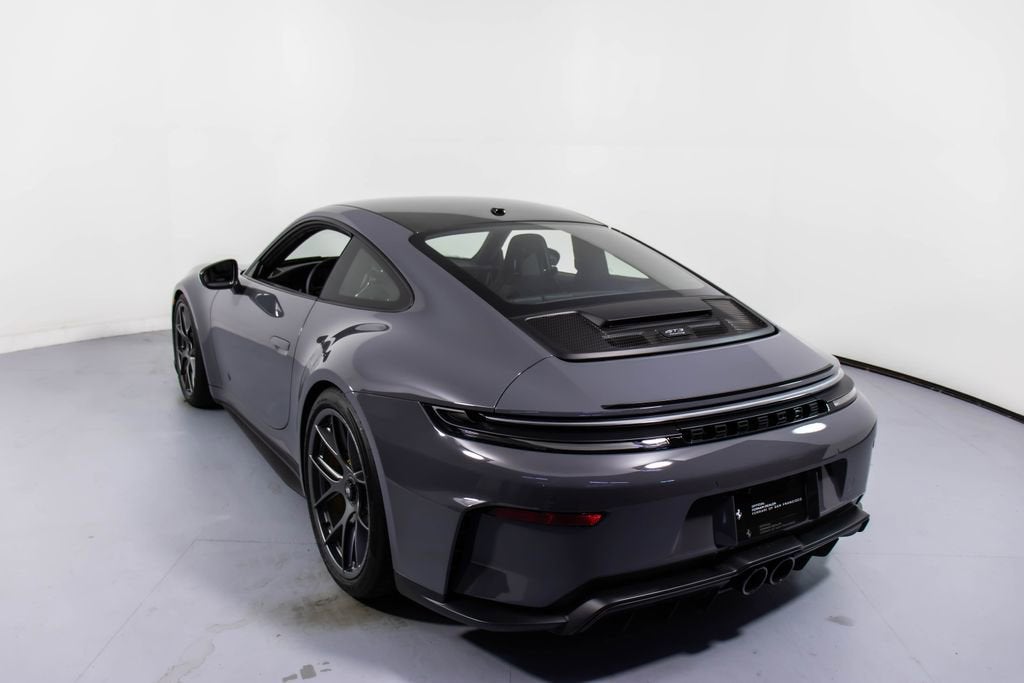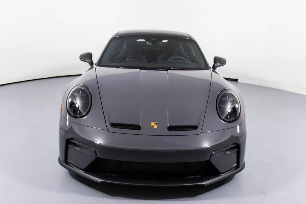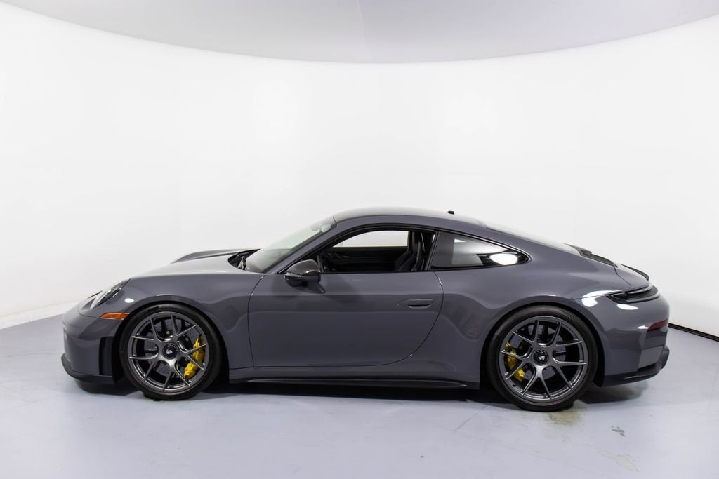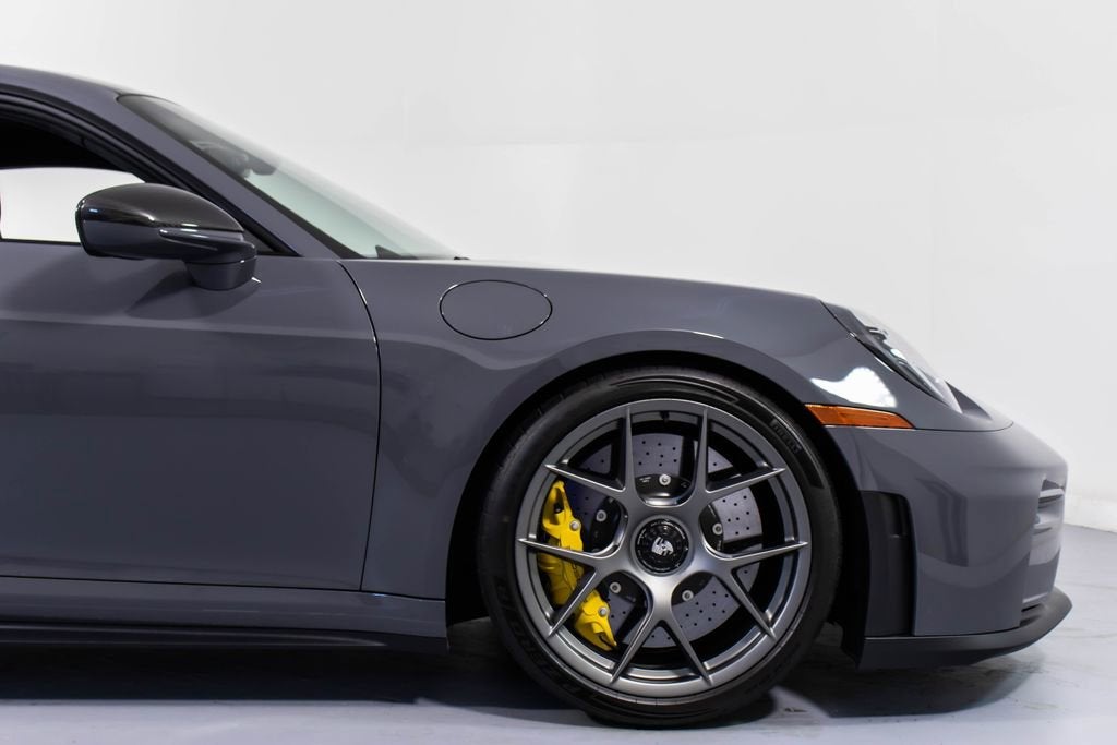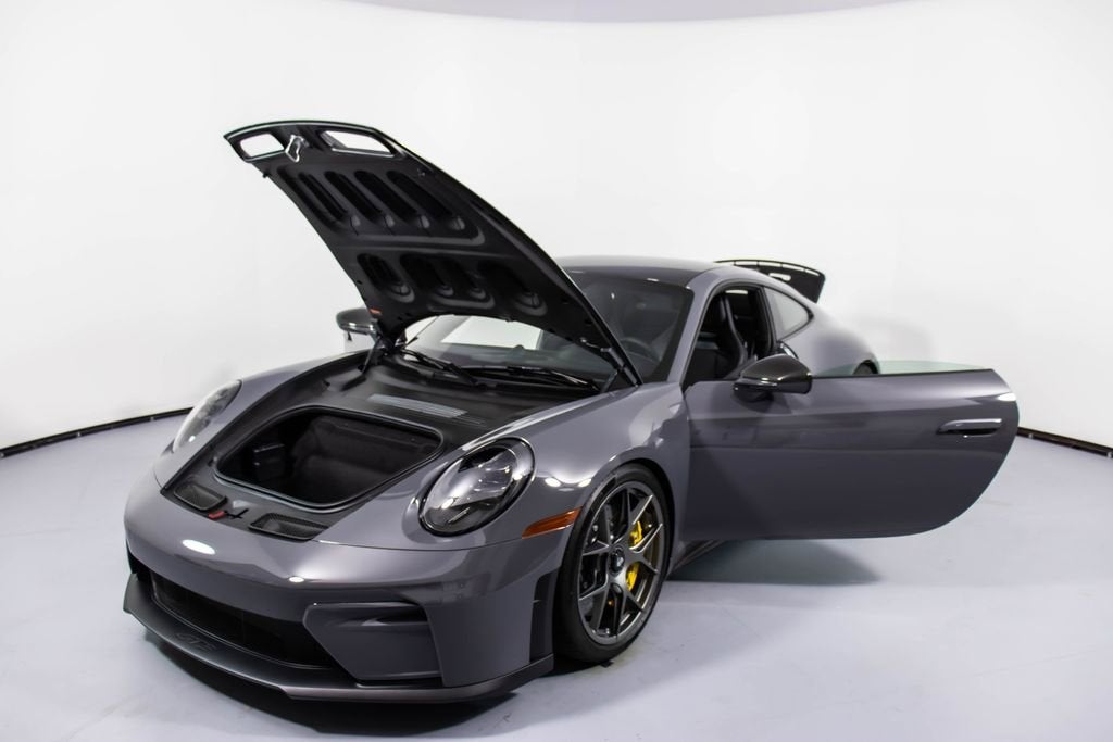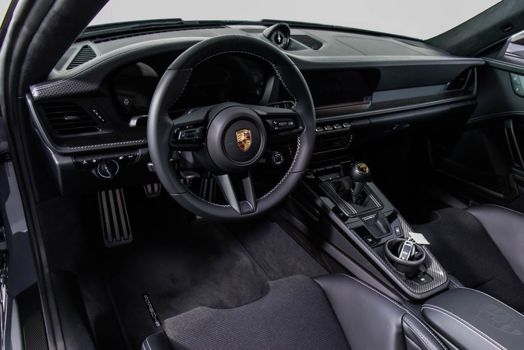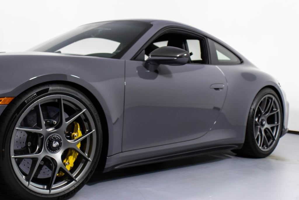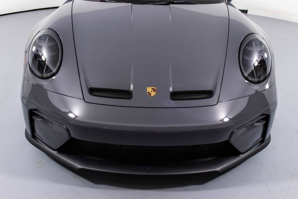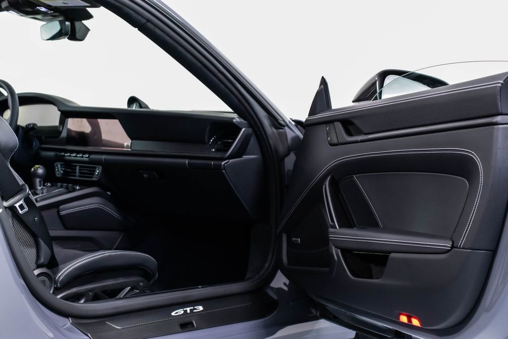 287172 Exterior: Gray Interior: Black Mats: Black 2026 Porsche 911 GT3 Touring Options: Slate Grey Neo Leather Interior in Black w/ Fabric and GT Silver Stitching Lightweight Package in Black Extended Range Fuel Tank PCCB with Calipers in Yellow Wheels Painted in Satin Dark Silver Front Fascia Airblades in Exterior Color Front Axle Lift System Ionizer Exclusive Design Fuel Cap Rear Seats Roof in Exposed Carbon Fiber Sun Visors in Race- Tex Center Console Lid with Porsche Crest Exterior Mirror Upper Trims in Carbon Fiber Roof Lining in Race- Tex Door-Sill Guards in Matte Carbon Fiber, Illuminated ParkAssist (Rear) HD-Matrix Design LED Headlights in Black Chrono Package Exclusive Design Taillights Bose Surround Sound System Forged Magnesium Lightweight Wheels Pedals and Footrest in Aluminum Folding Lightweight Bucket Seats Porsche Dashcam Ambient Lighting Under Door Puddle Light Projectors Finished in an understated yet striking Slate Grey Neo over a Black interior, this 2026 Porsche 911 GT3 Touring perfectly balances motorsport performance with refined touring comfort. The sleek exterior is elevated by satin dark silver forged magnesium lightweight wheels, exposed carbon fiber roof, and carbon fiber mirror trims, while yellow PCCB brake calipers hint at its track-ready capability. Inside, the cabin features a premium leather and fabric combination with GT Silver stitching, lightweight bucket seats, Race-Tex accents, and illuminated matte carbon fiber door sills, creating a purposeful yet luxurious driving environment. Equipped with the Lightweight Package, front axle lift system, extended range fuel tank, and Chrono Package, this GT3 Touring is engineered for both spirited driving and long-distance performance. Advanced features such as HD-Matrix LED headlights, ParkAssist, Porsche dashcam, ambient lighting, and a Bose surround sound system provide modern convenience and comfort. With exclusive design touches throughout and precision engineering at its core, this 911 GT3 Touring delivers a pure and engaging driving experience with everyday usability.