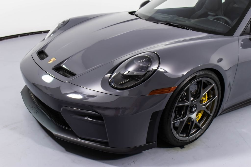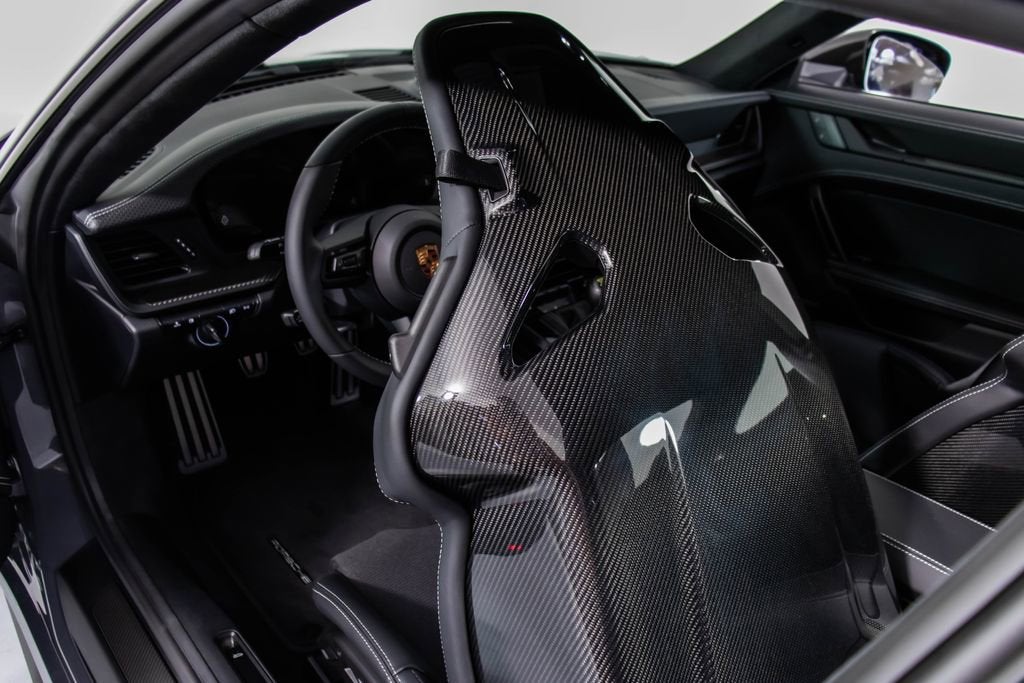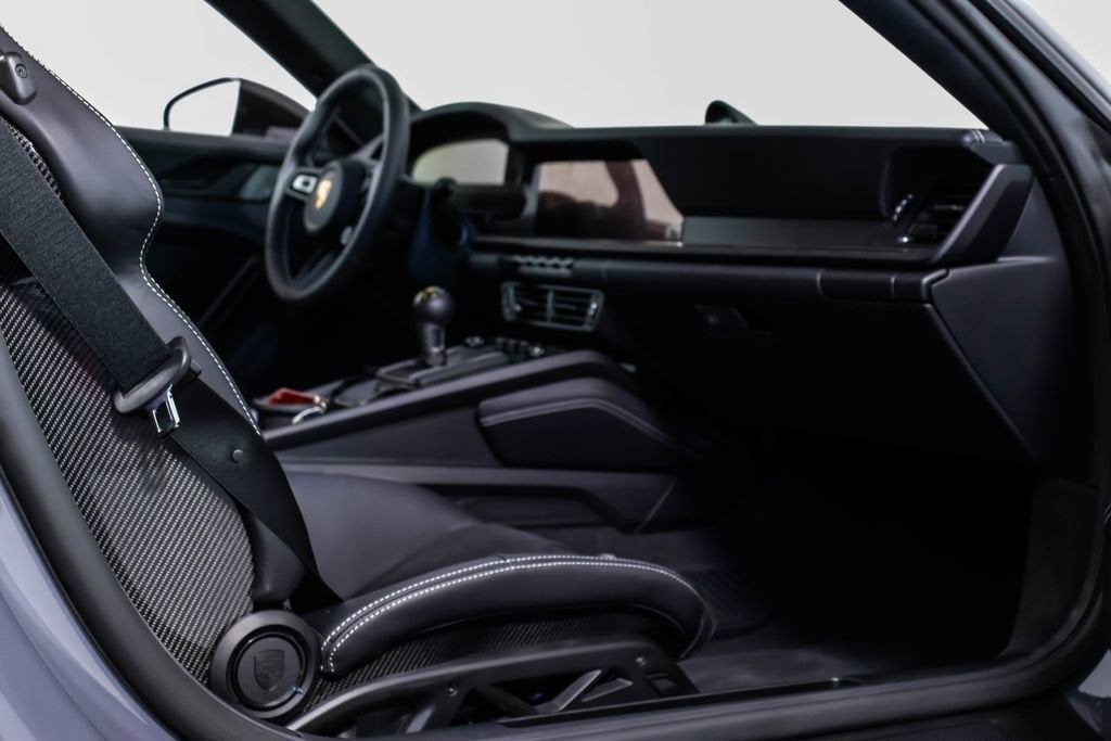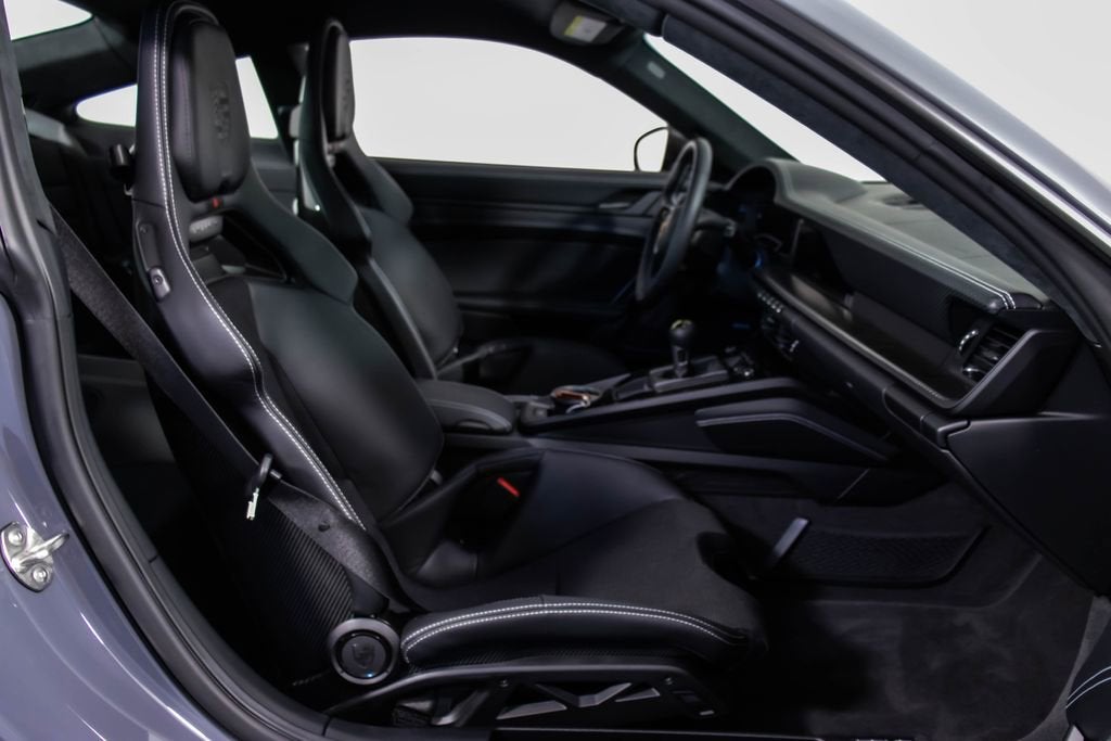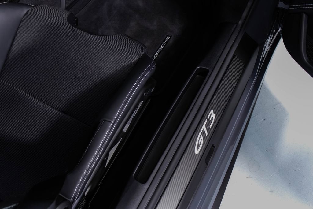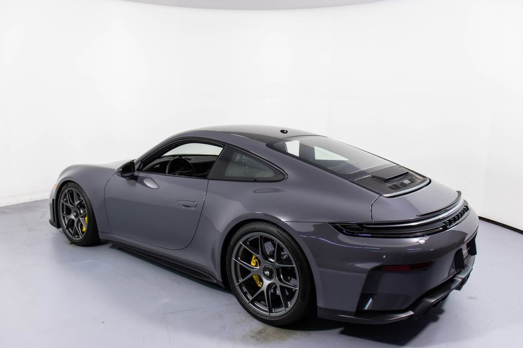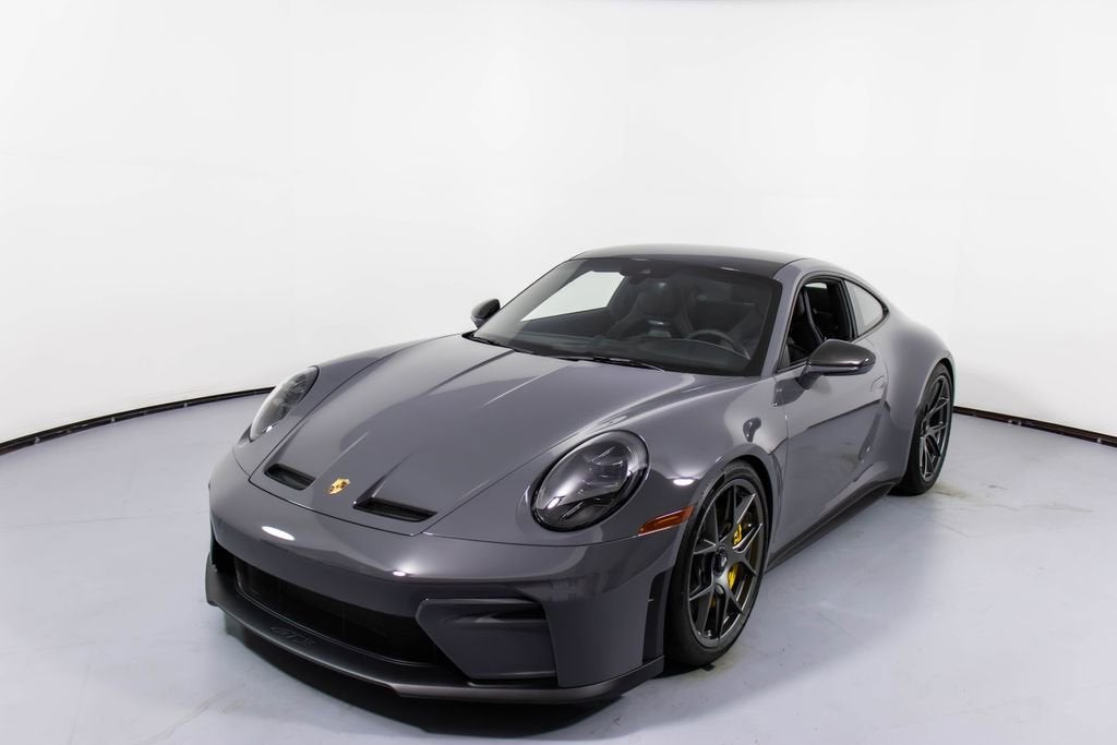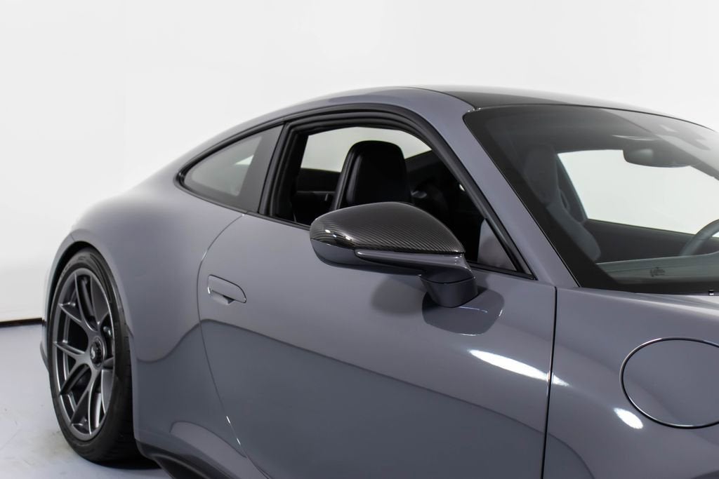 287172 Exterior: Gray Interior: Black Mats: Black 2026 Porsche 911 GT3 Touring Options: Slate Grey Neo Leather Interior in Black w/ Fabric and GT Silver Stitching Lightweight Package in Black Extended Range Fuel Tank PCCB with Calipers in Yellow Wheels Painted in Satin Dark Silver Front Fascia Airblades in Exterior Color Front Axle Lift System Ionizer Exclusive Design Fuel Cap Rear Seats Roof in Exposed Carbon Fiber Sun Visors in Race- Tex Center Console Lid with Porsche Crest Exterior Mirror Upper Trims in Carbon Fiber Roof Lining in Race- Tex Door-Sill Guards in Matte Carbon Fiber, Illuminated ParkAssist (Rear) HD-Matrix Design LED Headlights in Black Chrono Package Exclusive Design Taillights Bose Surround Sound System Forged Magnesium Lightweight Wheels Pedals and Footrest in Aluminum Folding Lightweight Bucket Seats Porsche Dashcam Ambient Lighting Under Door Puddle Light Projectors Finished in an understated yet striking Slate Grey Neo over a Black interior, this 2026 Porsche 911 GT3 Touring perfectly balances motorsport performance with refined touring comfort. The sleek exterior is elevated by satin dark silver forged magnesium lightweight wheels, exposed carbon fiber roof, and carbon fiber mirror trims, while yellow PCCB brake calipers hint at its track-ready capability. Inside, the cabin features a premium leather and fabric combination with GT Silver stitching, lightweight bucket seats, Race-Tex accents, and illuminated matte carbon fiber door sills, creating a purposeful yet luxurious driving environment. Equipped with the Lightweight Package, front axle lift system, extended range fuel tank, and Chrono Package, this GT3 Touring is engineered for both spirited driving and long-distance performance. Advanced features such as HD-Matrix LED headlights, ParkAssist, Porsche dashcam, ambient lighting, and a Bose surround sound system provide modern convenience and comfort. With exclusive design touches throughout and precision engineering at its core, this 911 GT3 Touring delivers a pure and engaging driving experience with everyday usability.
