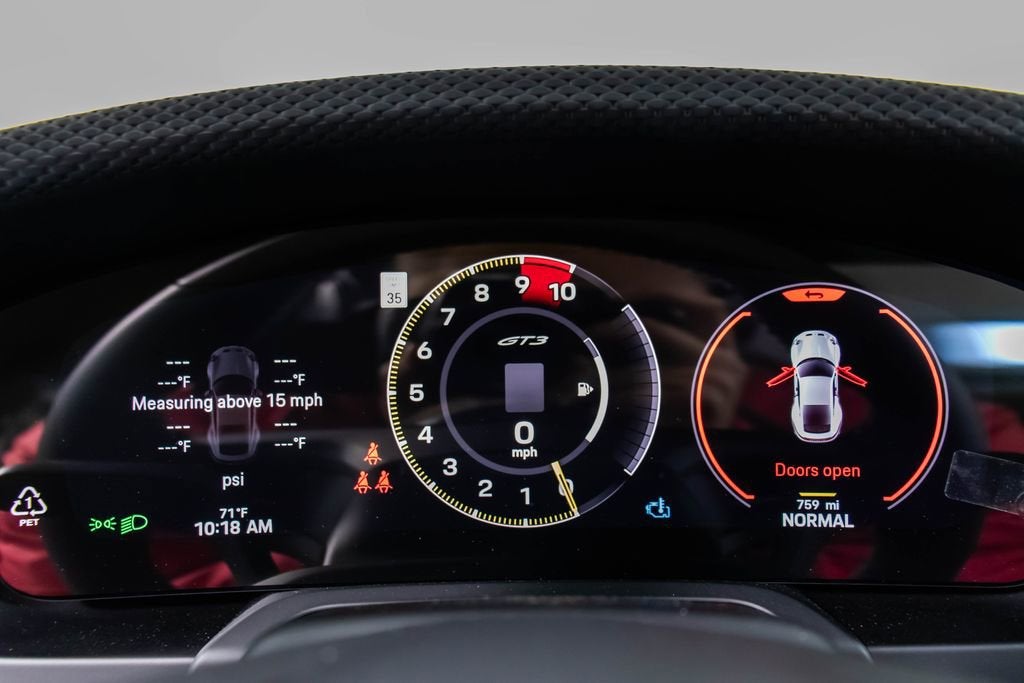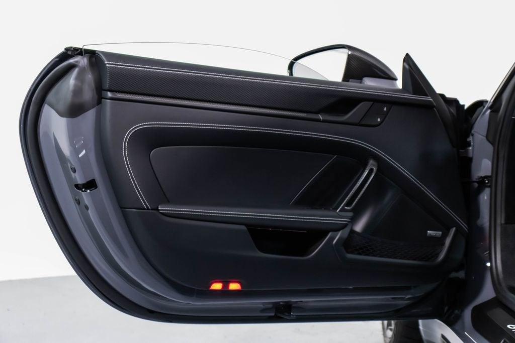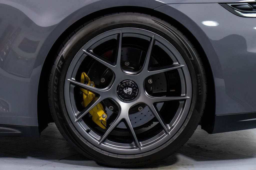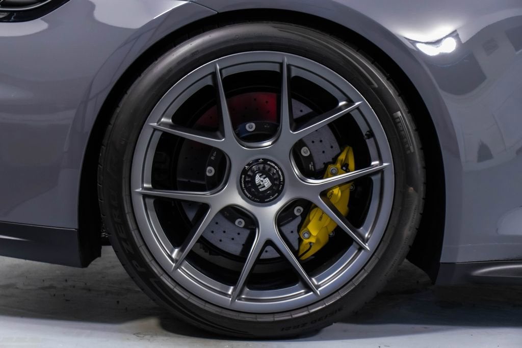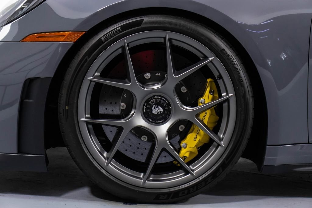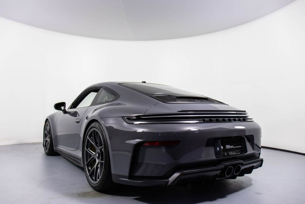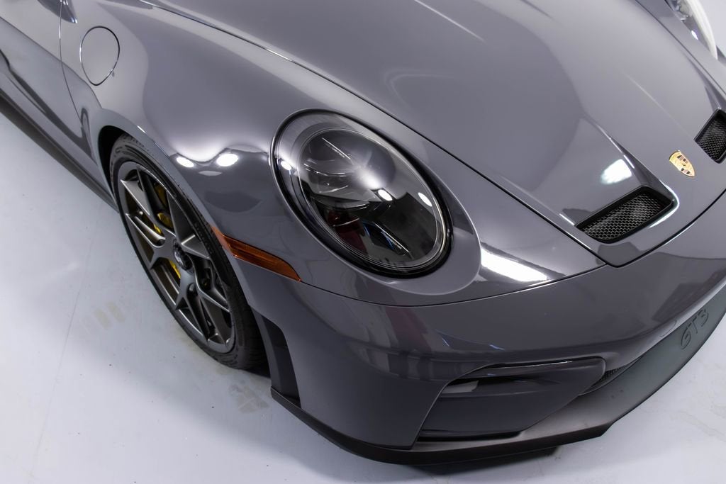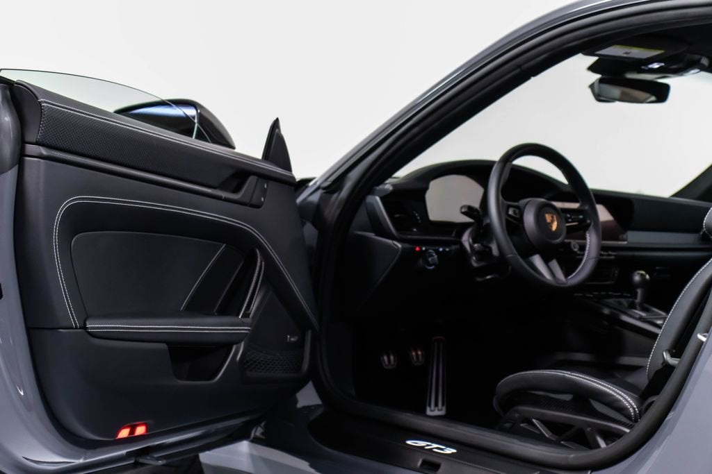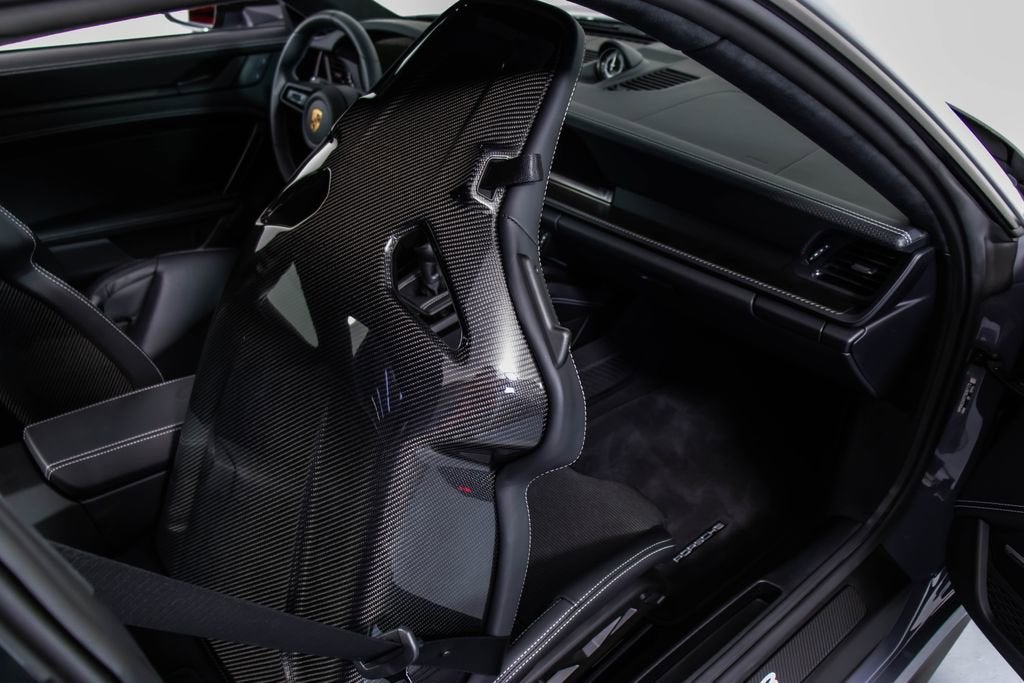 287172 Exterior: Gray Interior: Black Mats: Black 2026 Porsche 911 GT3 Touring Options: Slate Grey Neo Leather Interior in Black w/ Fabric and GT Silver Stitching Lightweight Package in Black Extended Range Fuel Tank PCCB with Calipers in Yellow Wheels Painted in Satin Dark Silver Front Fascia Airblades in Exterior Color Front Axle Lift System Ionizer Exclusive Design Fuel Cap Rear Seats Roof in Exposed Carbon Fiber Sun Visors in Race- Tex Center Console Lid with Porsche Crest Exterior Mirror Upper Trims in Carbon Fiber Roof Lining in Race- Tex Door-Sill Guards in Matte Carbon Fiber, Illuminated ParkAssist (Rear) HD-Matrix Design LED Headlights in Black Chrono Package Exclusive Design Taillights Bose Surround Sound System Forged Magnesium Lightweight Wheels Pedals and Footrest in Aluminum Folding Lightweight Bucket Seats Porsche Dashcam Ambient Lighting Under Door Puddle Light Projectors Finished in an understated yet striking Slate Grey Neo over a Black interior, this 2026 Porsche 911 GT3 Touring perfectly balances motorsport performance with refined touring comfort. The sleek exterior is elevated by satin dark silver forged magnesium lightweight wheels, exposed carbon fiber roof, and carbon fiber mirror trims, while yellow PCCB brake calipers hint at its track-ready capability. Inside, the cabin features a premium leather and fabric combination with GT Silver stitching, lightweight bucket seats, Race-Tex accents, and illuminated matte carbon fiber door sills, creating a purposeful yet luxurious driving environment. Equipped with the Lightweight Package, front axle lift system, extended range fuel tank, and Chrono Package, this GT3 Touring is engineered for both spirited driving and long-distance performance. Advanced features such as HD-Matrix LED headlights, ParkAssist, Porsche dashcam, ambient lighting, and a Bose surround sound system provide modern convenience and comfort. With exclusive design touches throughout and precision engineering at its core, this 911 GT3 Touring delivers a pure and engaging driving experience with everyday usability.