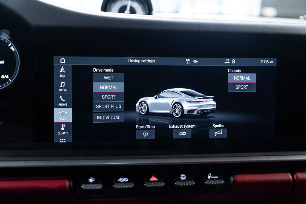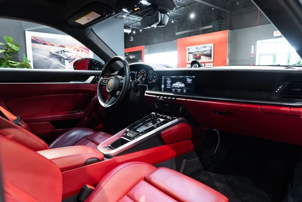 Ferrari of Lake Forest is Proud to Present this 2021 Porsche 911 Turbo S Finished in Stunning Jet Black Metallic over Leather Interior in Black and Bordeaux. This Porsche 911 Turbo S is Optionally Equipped with: Electric Slide and Tilt Sunroof Exterior Mirror Base in Exterior Color Window Trim in High Gloss Black 911 Turbo S Logo on Doors in Silver Fuel Cap with Aluminum Look Finish Sport Exhaust System with Tailpipes in Black Power Steering Plus Front Axle Lift System Ionizer Ventilated Front Seats Heated Steering Wheel Storage Package Seat Belts in Bordeaux Red Sport Chrono Stopwatch Dial in White Interior Trim Inlays in Leather Sun Visors in Leather Lane Change Assist Surround View Porsche InnoDrive included with Adaptive Cruise Control and Active Lane Keep The 911 Turbo S represents a refined balance of engineering precision and high-performance capability. Its twin-turbocharged flat-six delivers immediate, authoritative acceleration, while the advanced all-wheel-drive system and meticulously tuned chassis provide exceptional stability and control. Composed yet unmistakably powerful, it offers a driving experience defined by confidence, speed, and technical excellence. For more information on this Porsche 911 Turbo S call one of our sales specialists today at 847.295.6560