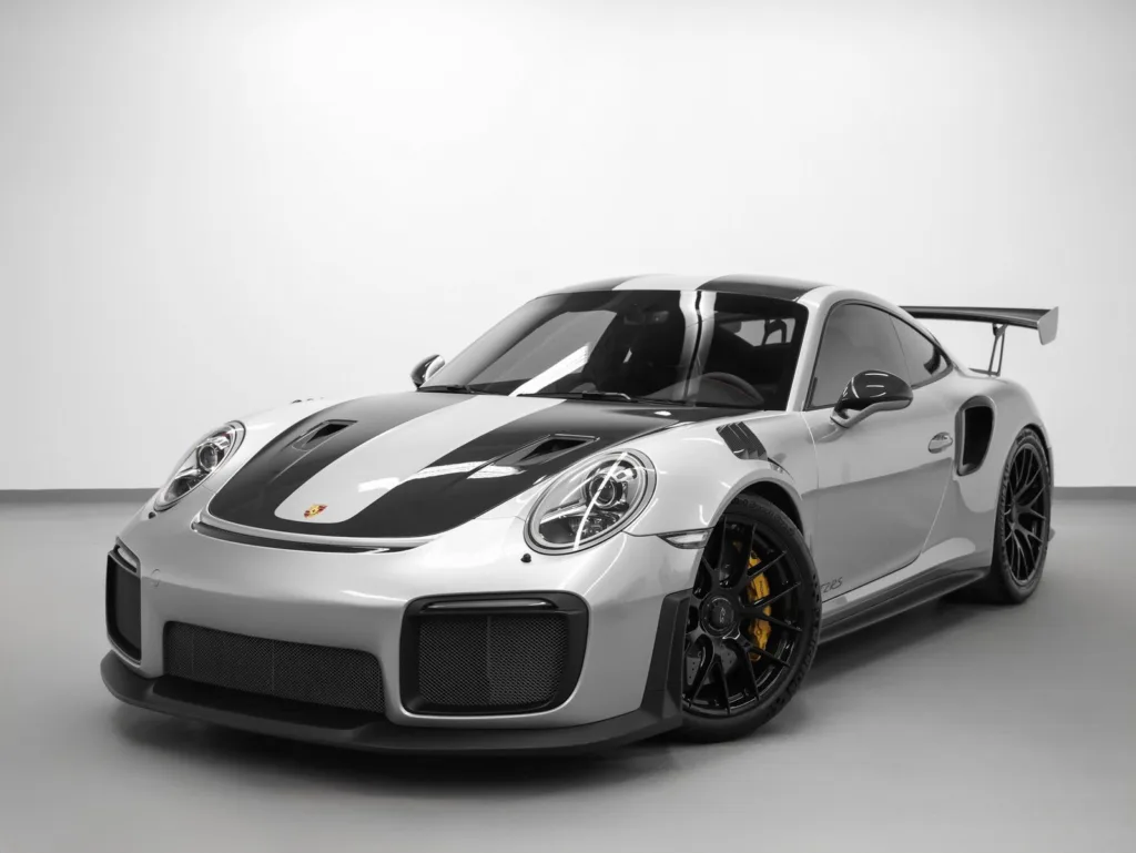 Offered for sale is an exceptional Certified Pre-Owned 2018 Porsche 911 GT2 RS, finished with the highly coveted Weissach Package, representing the pinnacle of Porsches road-going performance engineering. Powered by a twin-turbocharged 3.8L flat-six producing an astonishing 700 horsepower, the GT2 RS delivers uncompromising track capability while remaining fully road legal. This example is meticulously specified, combining lightweight performance enhancements with premium comfort and design features. The Weissach Package reduces overall weight through extensive use of carbon fiber and magnesium components, enhancing both handling precision and driving engagement. The extended-range 23.7-gallon fuel tank allows for longer stints on road or track, while the Front Axle Lift System provides added convenience over driveways and uneven surfaces. The interior showcases a purposeful yet refined environment, highlighted by red contrast stitching, a 12 oclock red steering wheel marker, and white instrument dials and Sport Chrono stopwatch, all reinforcing the motorsport-inspired character of this GT2 RS. Carbon fiber details continue throughout, including illuminated carbon door sill guards and carbon window triangle trim, underscoring the cars lightweight focus. Additional features include the BOSE Surround Sound System, Light Design Package, voice control, and automatically dimming mirrors with integrated rain sensor, ensuring modern comfort complements its extreme performance. The Chrono Package with preparation for Lap Trigger further enhances track functionality for serious driving enthusiasts. As a Porsche Certified Pre-Owned vehicle, this GT2 RS has passed a comprehensive inspection and includes Porsche-backed warranty coverage, offering confidence alongside world-class performance. This is a rare opportunity to acquire one of the most sought-after modern 911 variants. Contact Porsche St. Louis today for additional details or to schedule a private viewing. Included Options Leather and Alcantara Interior in Black with Red Stitching GT Silver Metallic Exterior Color Weissach Package Front Axle Lift System Chrono Package with Preparation for Lap Trigger Extended Range Fuel Tank (23.