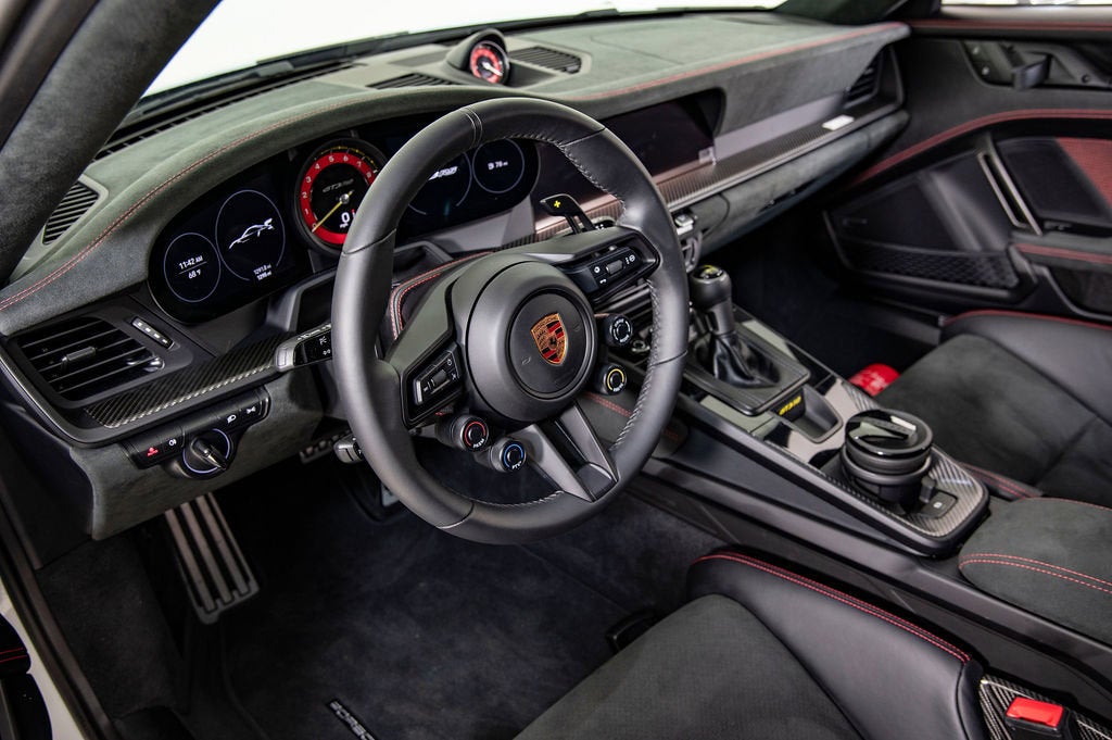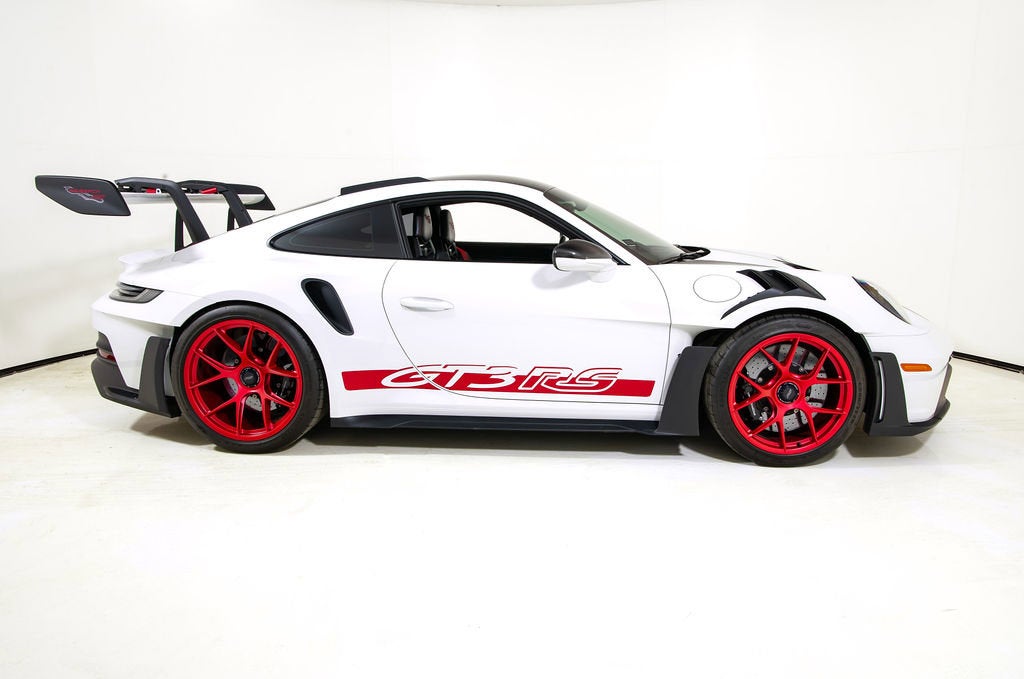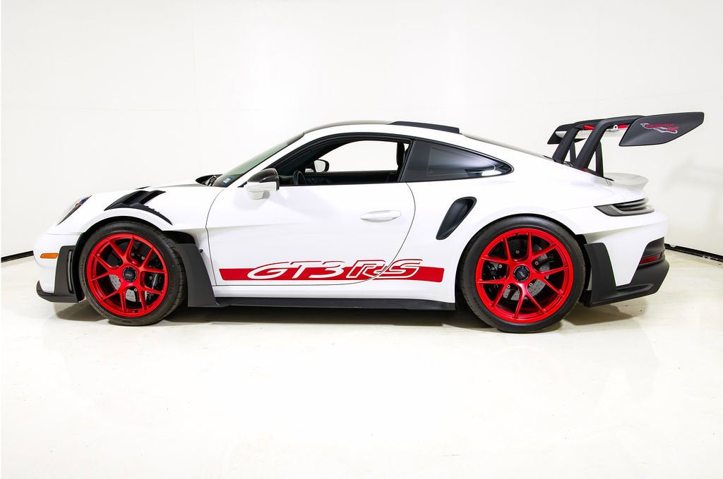 Ferrari of Houston is proud to present this one-owner, 2025 Porsche +911 GT3 RS with only 1,261 miles. The 2025 Porsche 911 GT3 RS is the most extreme, track-focused version of the current 911 generation a road-legal race car engineered for maximum performance and aerodynamics. It pairs a high-revving 4.0-liter naturally aspirated flat-six with Porsches advanced active aerodynamics (PAA) and lightweight construction to deliver 518 hp, blistering handling, and rapid acceleration (060 mph in ~3 seconds). Radical aerodynamic elements including a large rear wing with drag-reduction system (DRS), extensive CFRP bodywork, and track-tuned chassis produce enormous downforce and grip for cornering at speed, while weight-saving features like CFRP panels and optional Weissach reductions keep mass low. The car embodies Porsches motorsport DNA, optimized for lap times and performance on both road and track. A full list of options can be seen below.